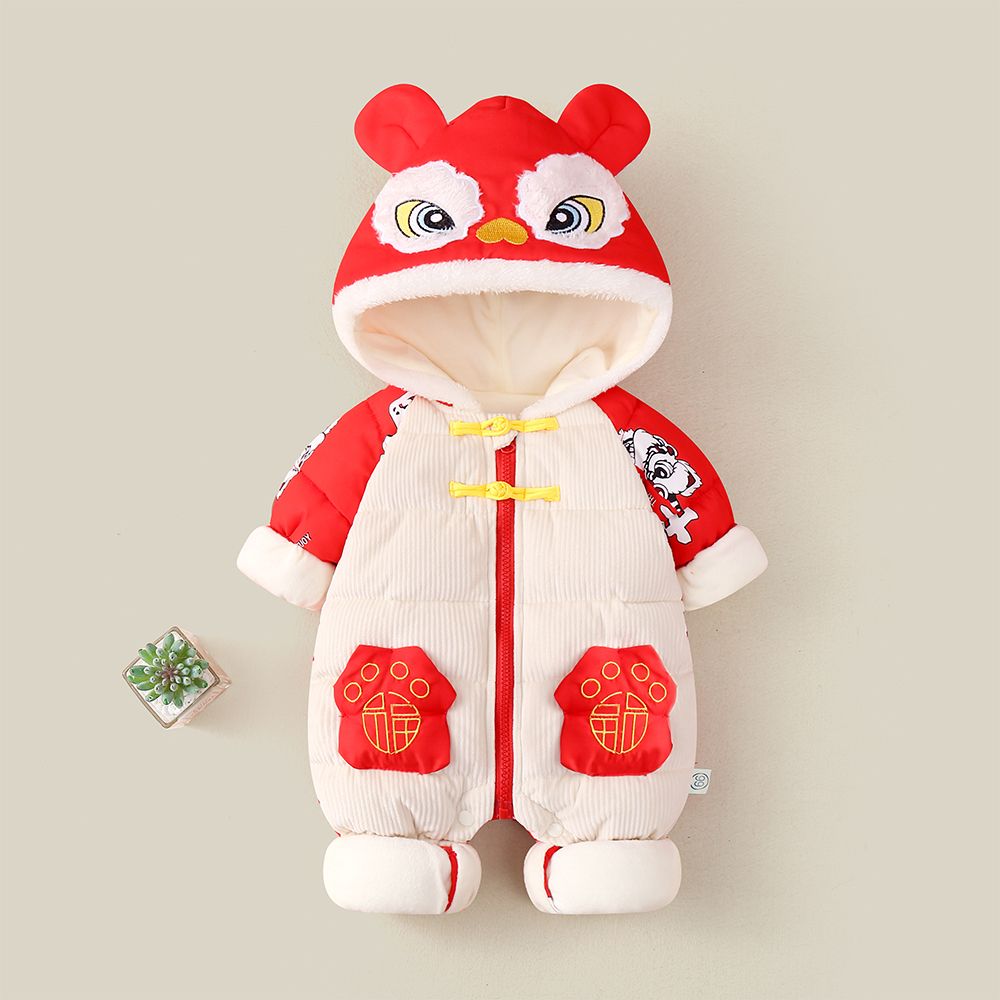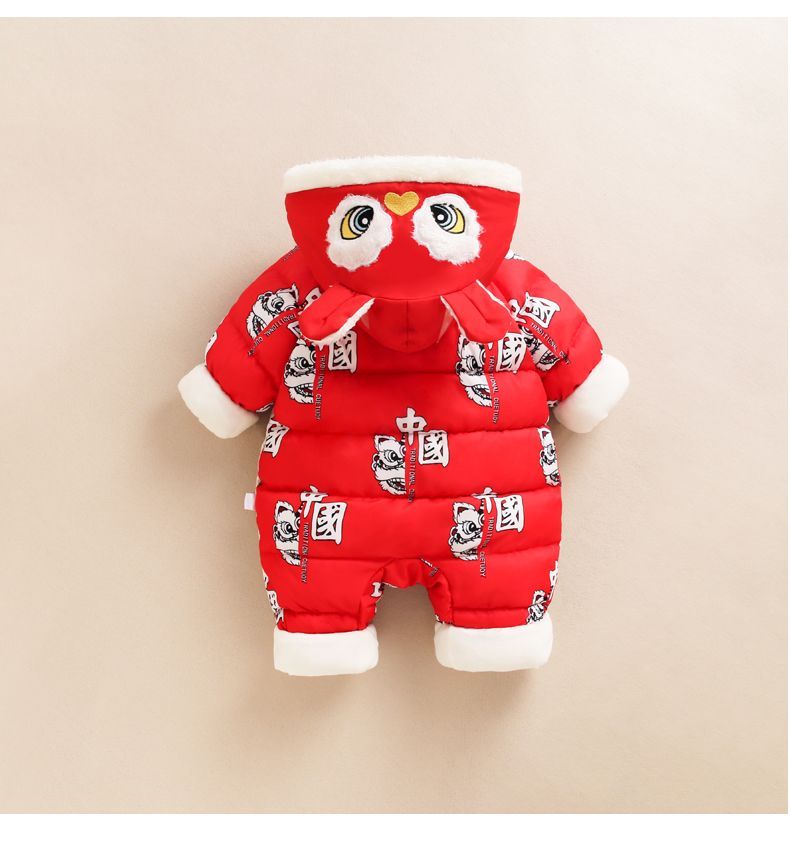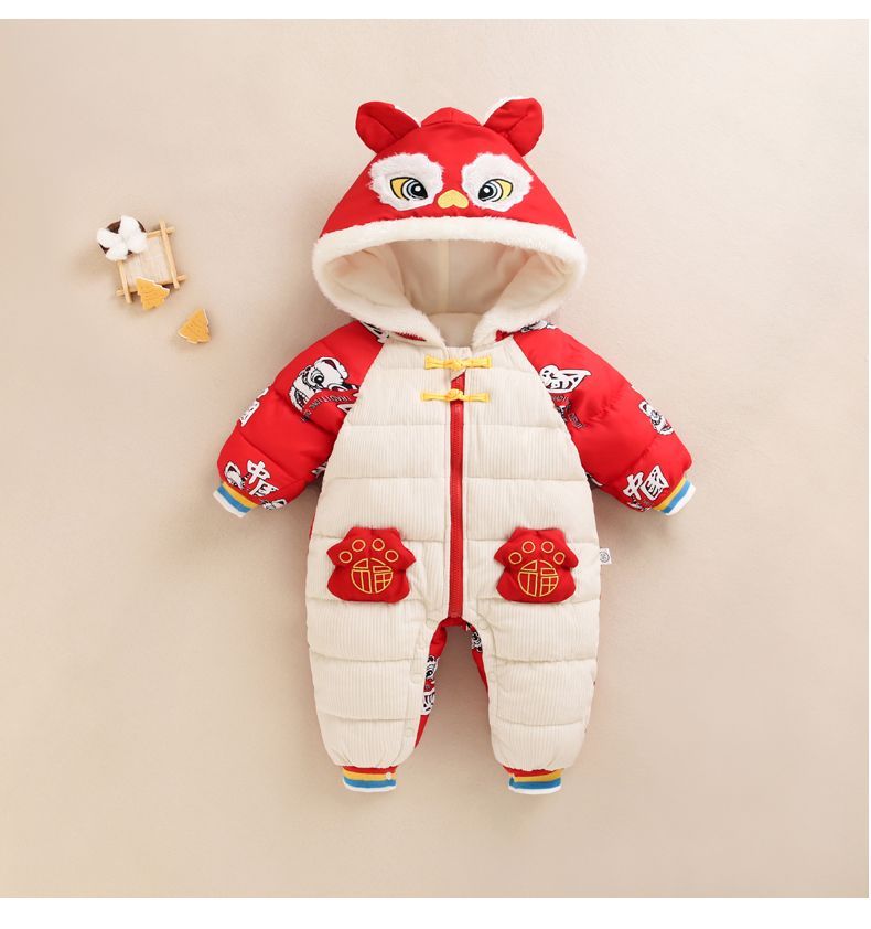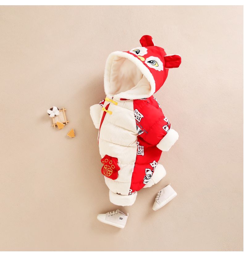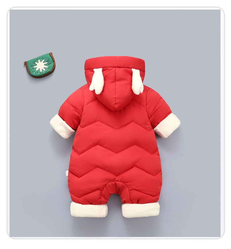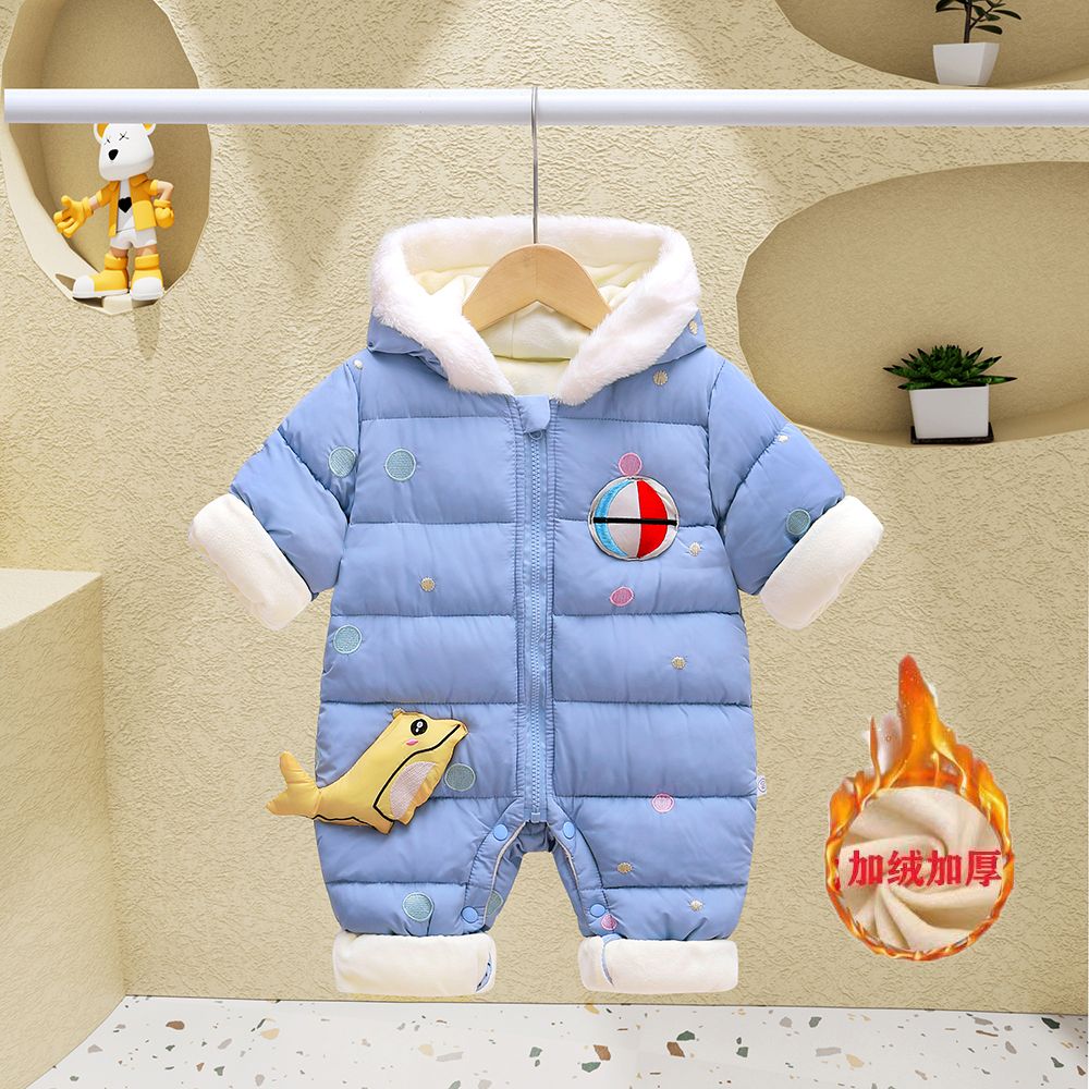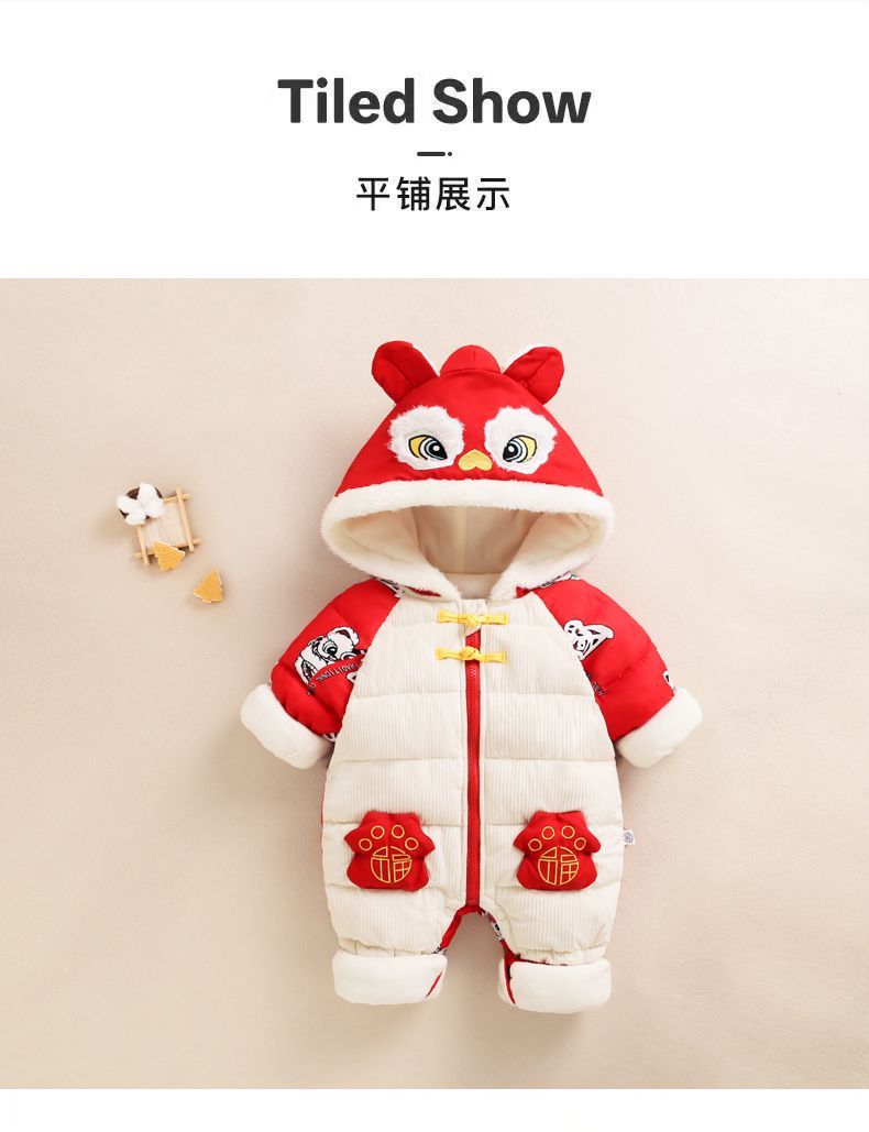 2024新款婴儿连体衣外出宝宝保暖套装婴儿冬季拜年服哈衣加绒爬服