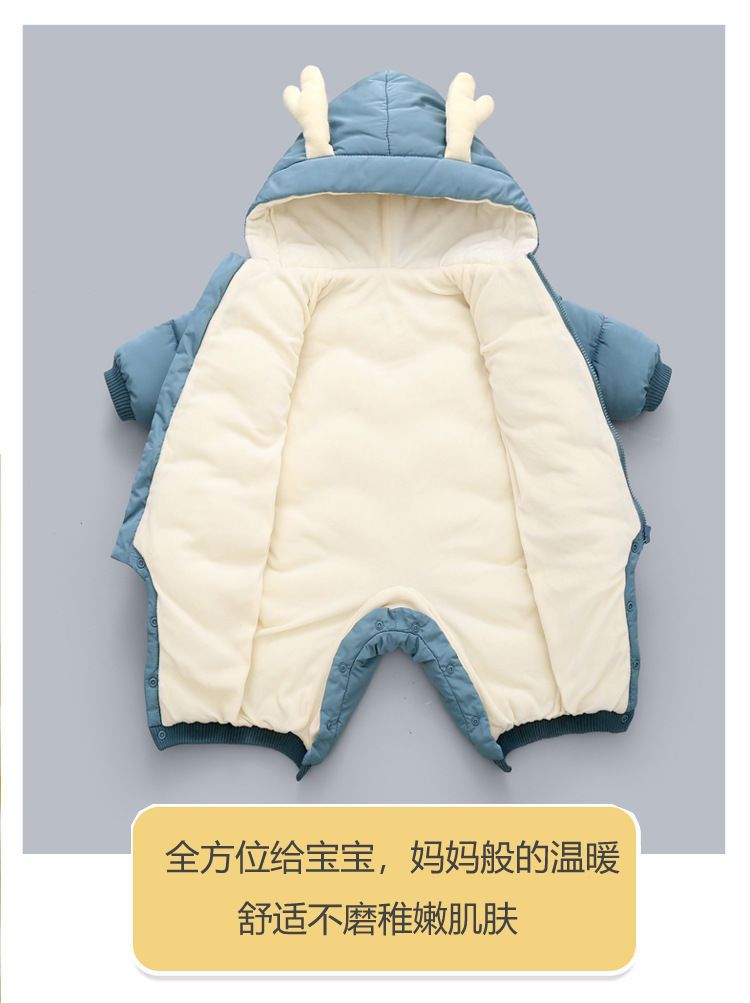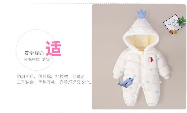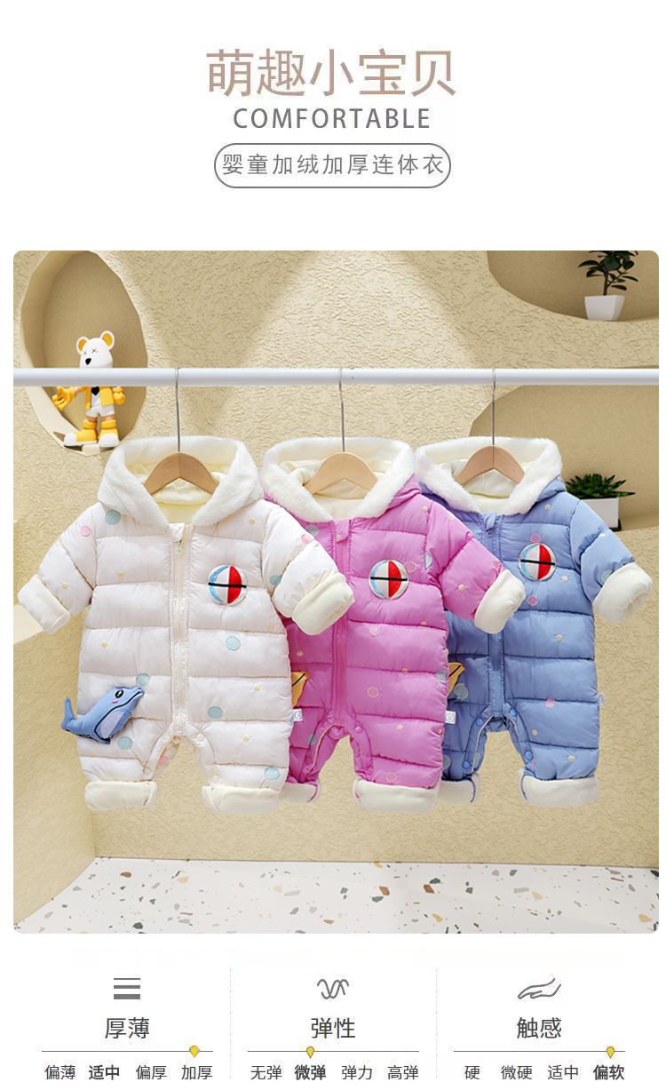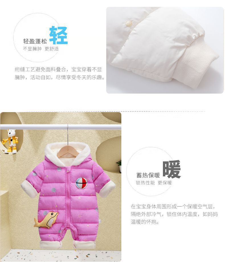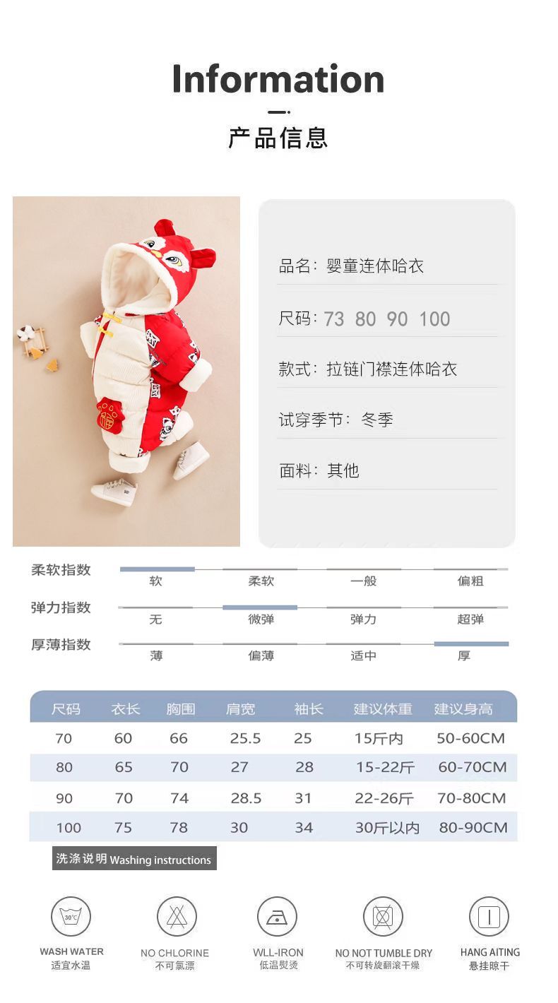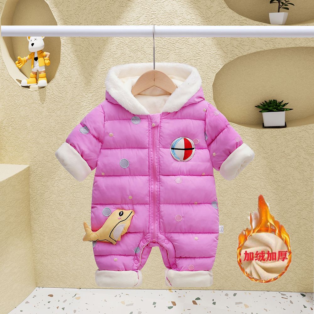 2024新款婴儿连体衣外出宝宝保暖套装婴儿冬季拜年服哈衣加绒爬服