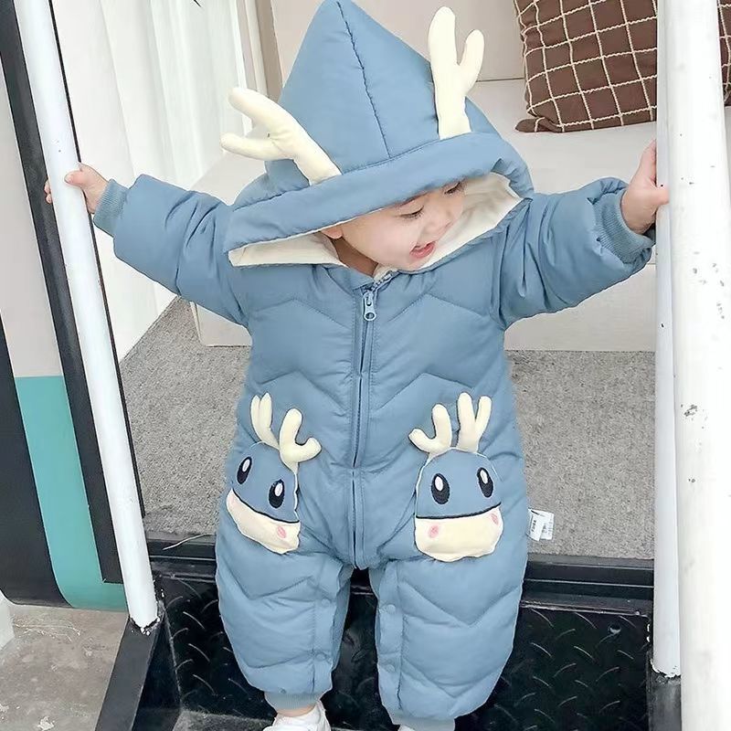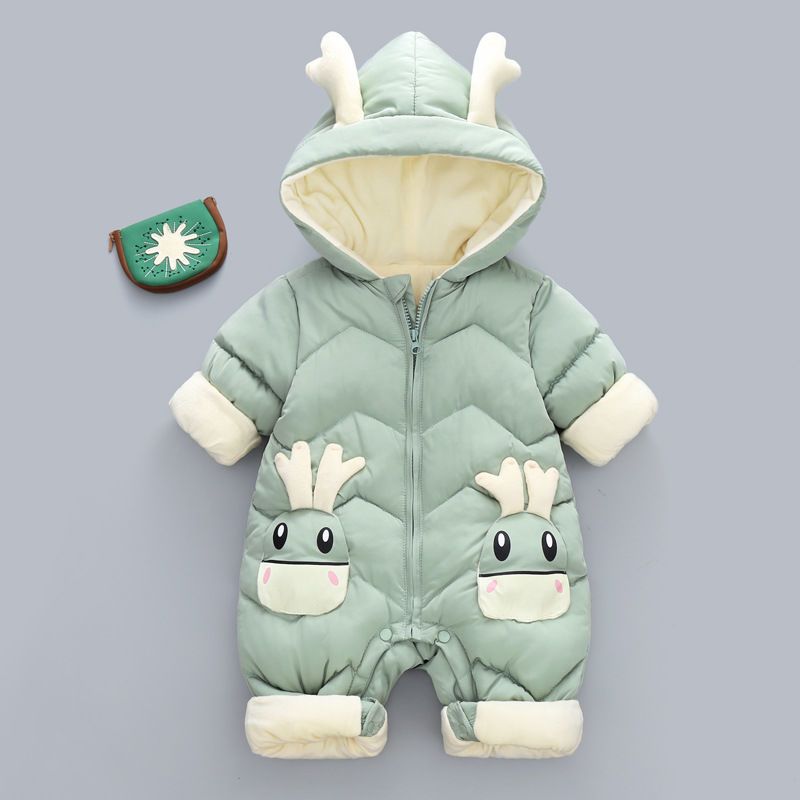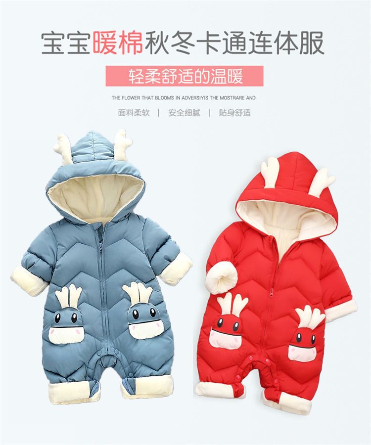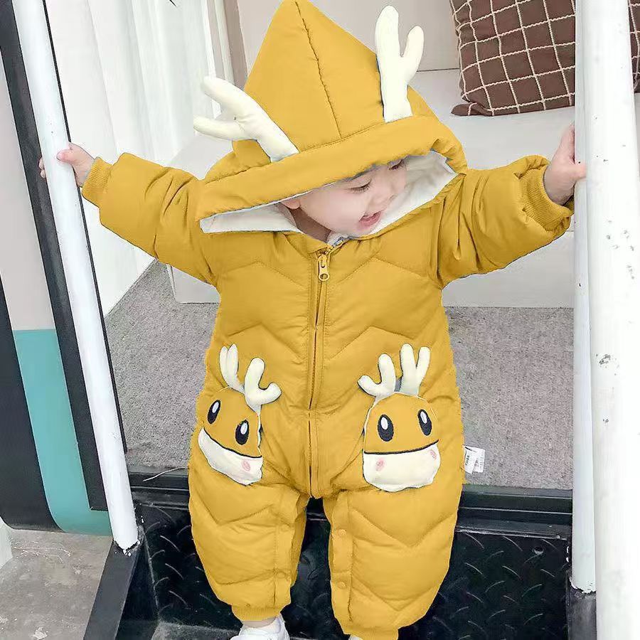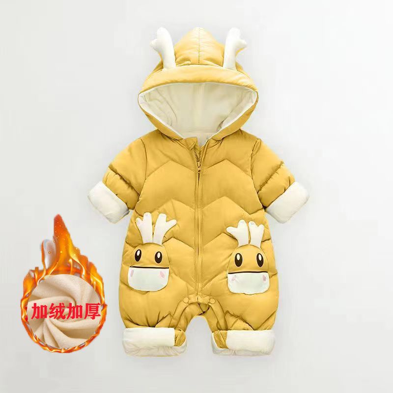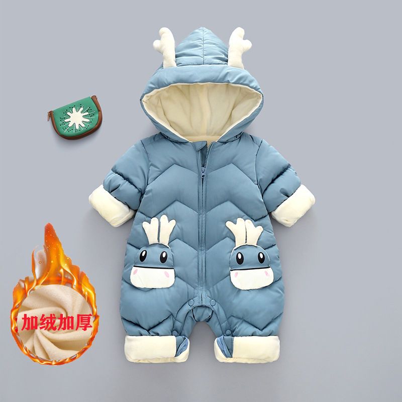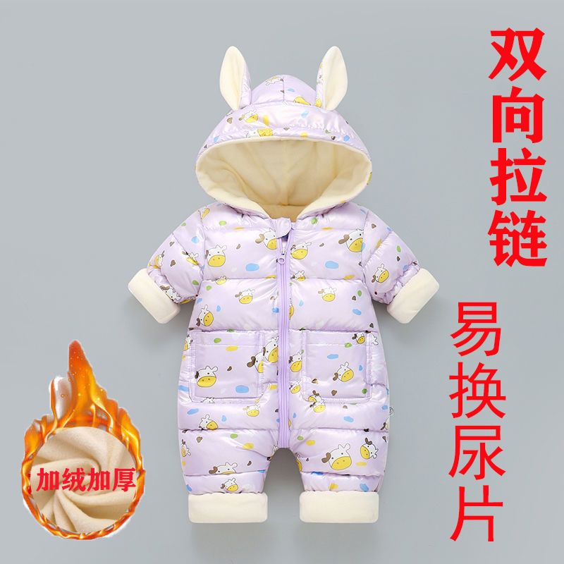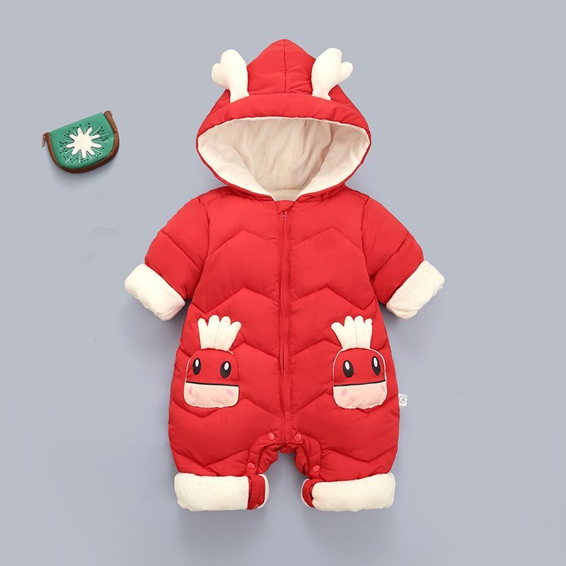 2024新款婴儿连体衣外出宝宝保暖套装婴儿冬季拜年服哈衣加绒爬服