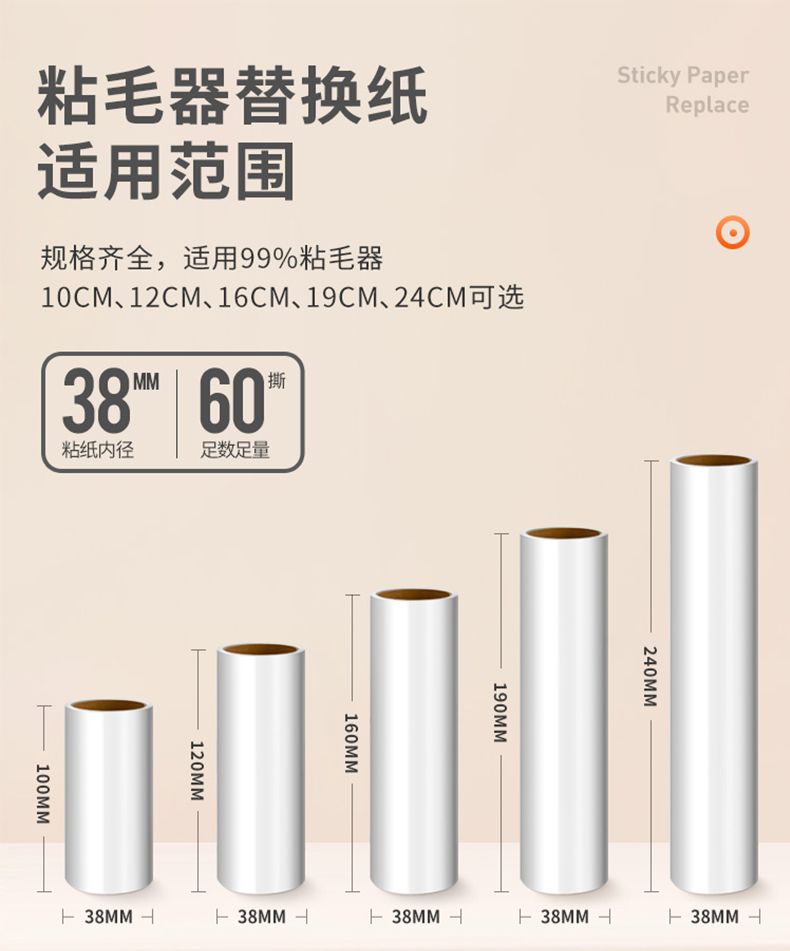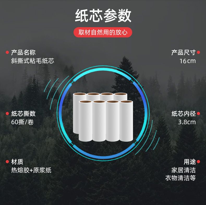 粘毛卷纸滚筒粘毛器替换粘尘纸芯除尘滚撕纸衣服粘毛神器滚刷