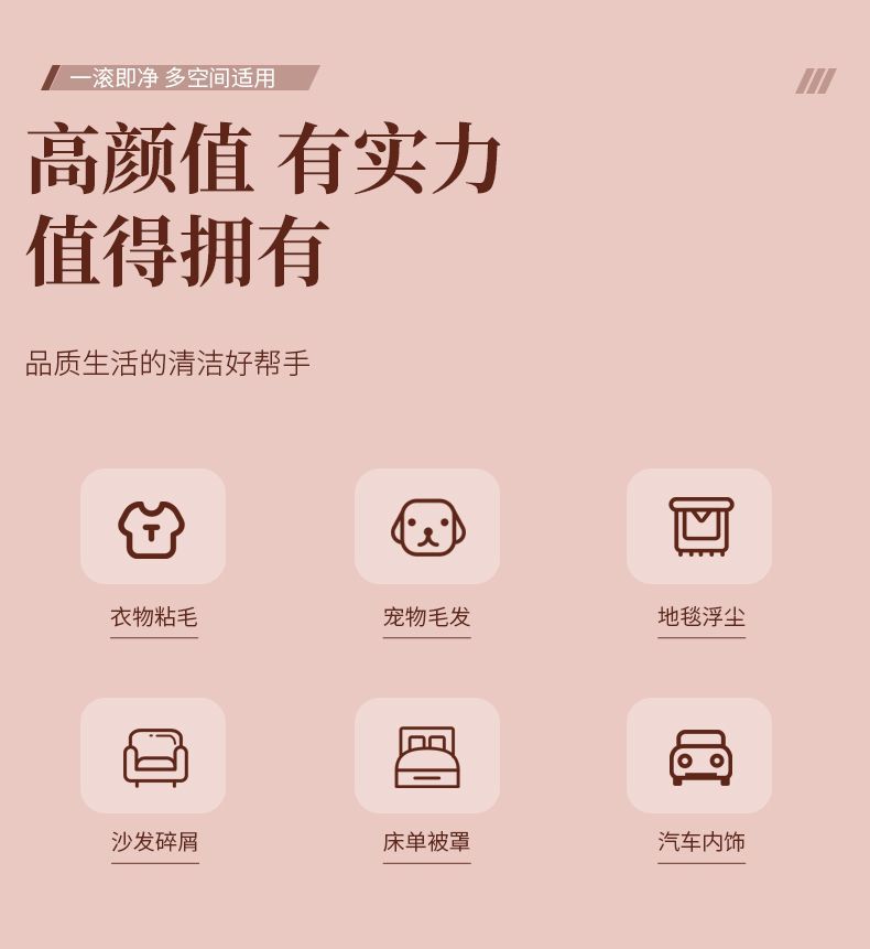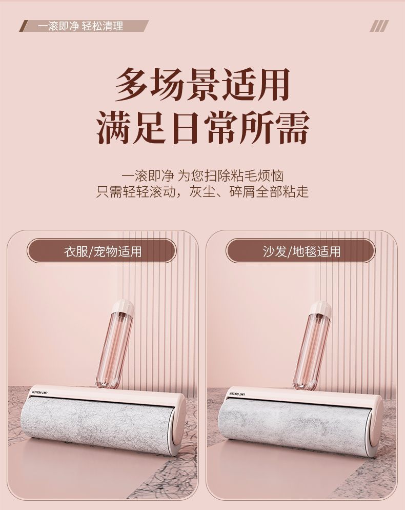 粘毛器滚筒可撕式滚刷沾毛除毛猫毛粘头发神器粘纸滚撕纸替换卷纸