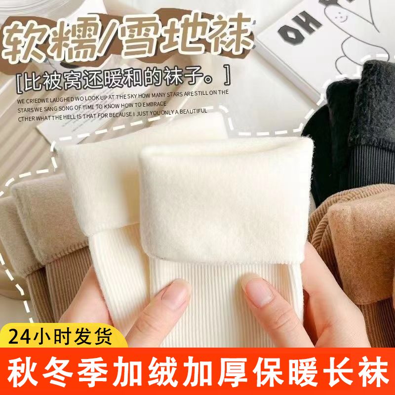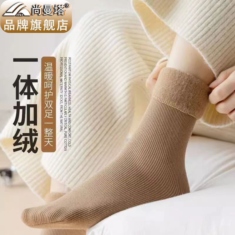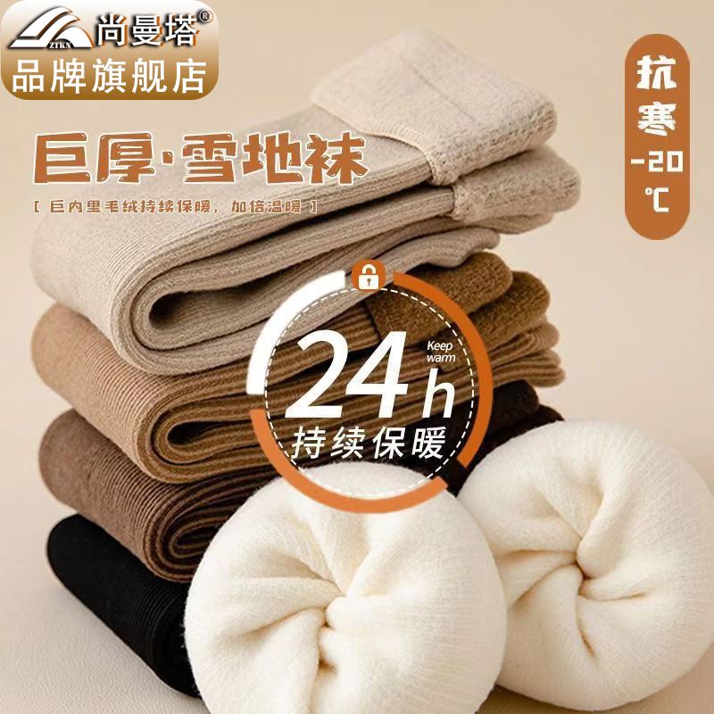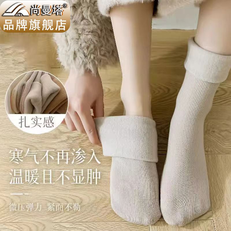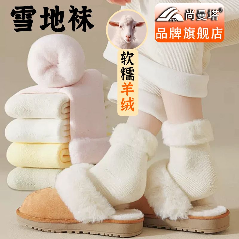 雪地袜加厚羊绒袜子男女款秋冬季保暖袜睡眠长袜抗寒月子袜地板袜