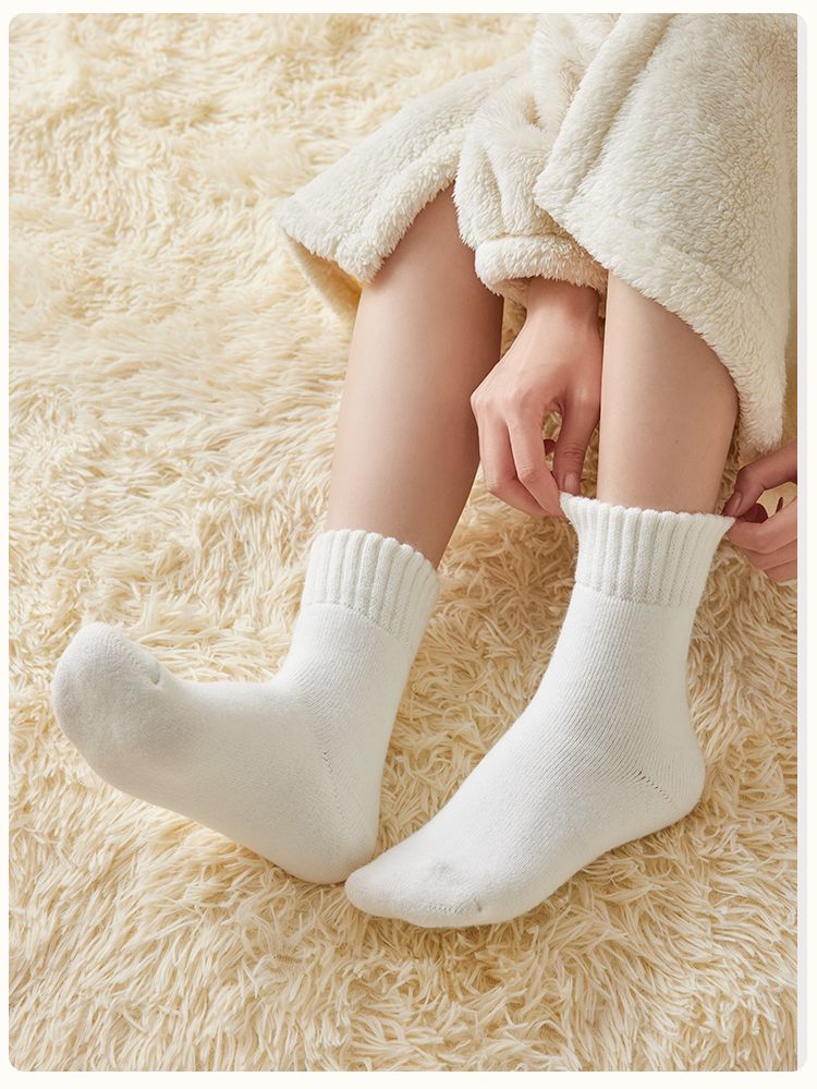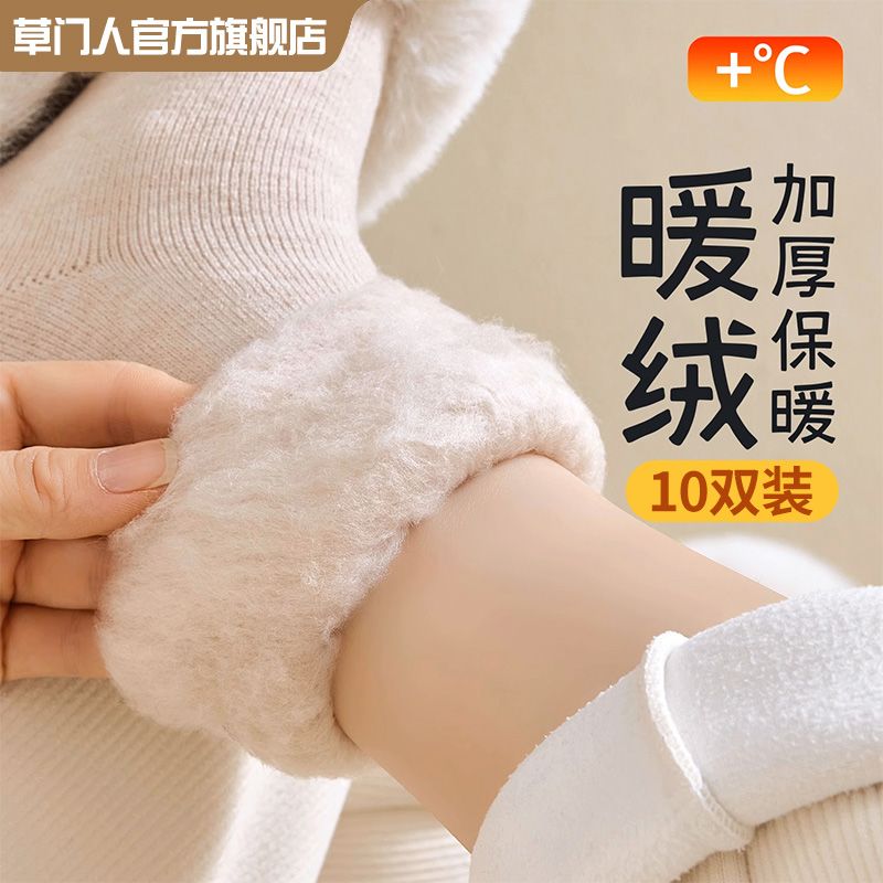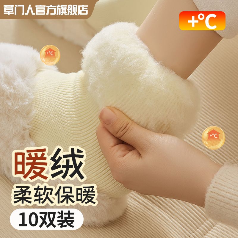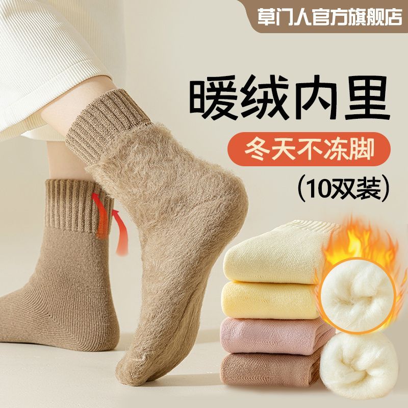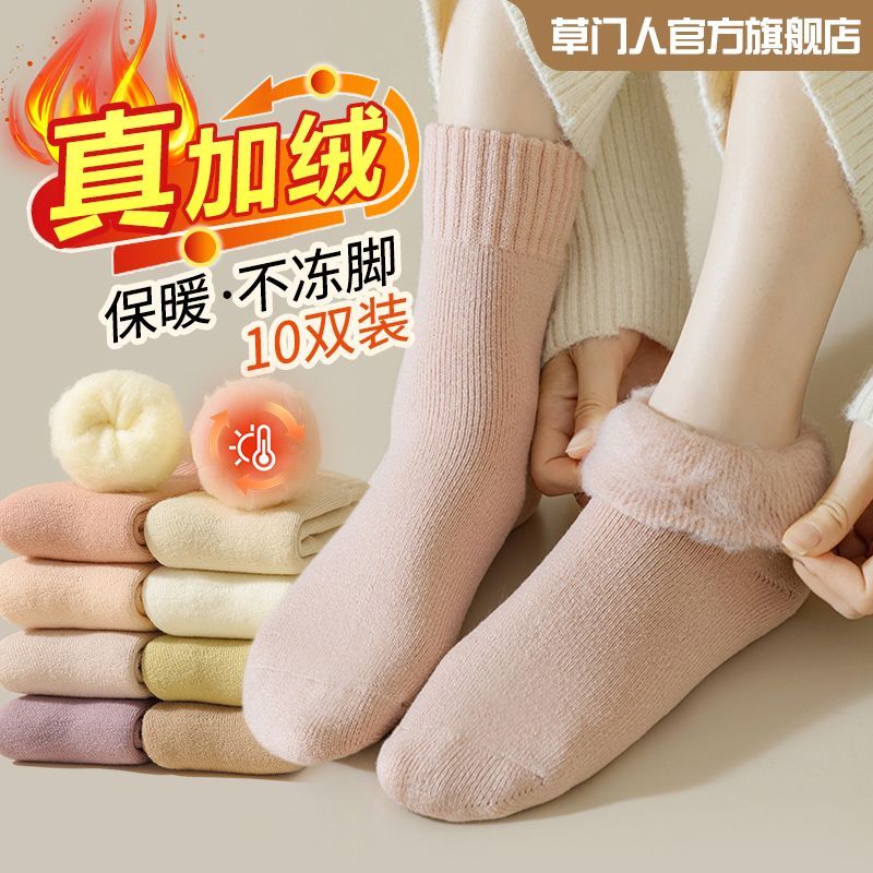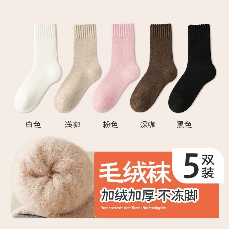 加绒袜子女秋冬款中筒袜加绒加厚月子袜毛绒睡眠地板超厚冬季长袜