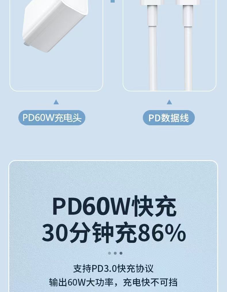 官方PD60W快充头苹果手机充电器数据线适用iPhone16/14/13/12套装