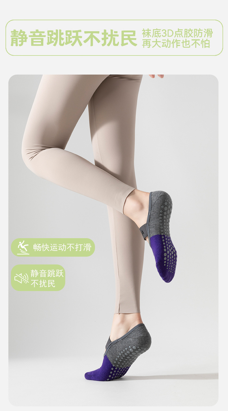 亚马逊跨境专业瑜伽袜拼色棉绑带硅胶防滑普拉提健身舞蹈地板袜
