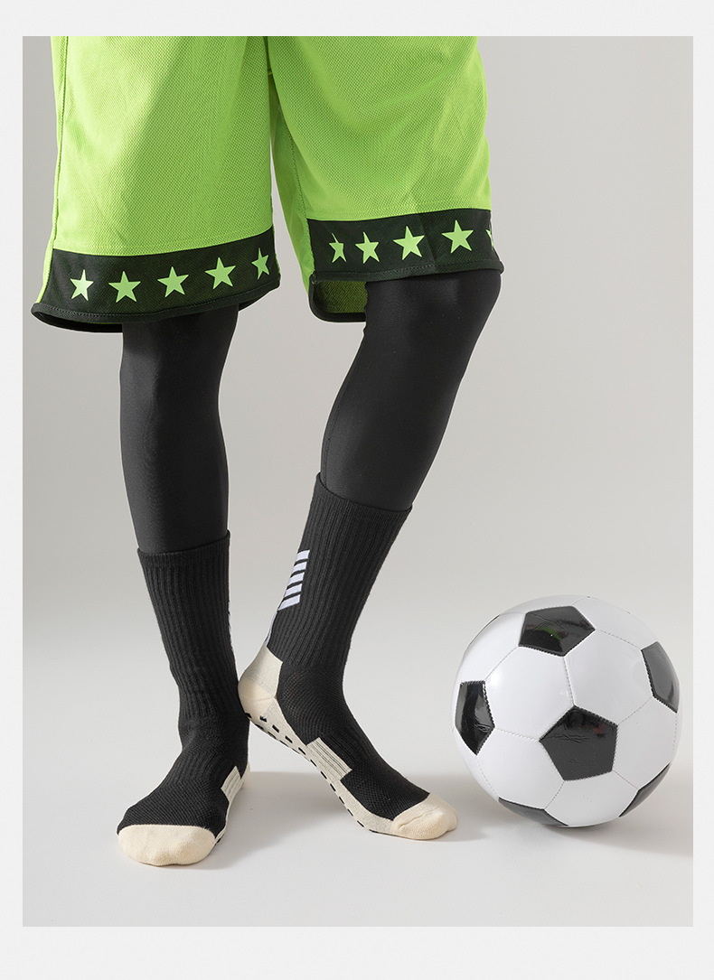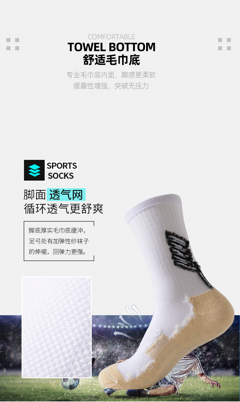 跨境长筒足球袜加厚毛巾袜子男篮球袜条纹防滑耐磨运动袜子点胶