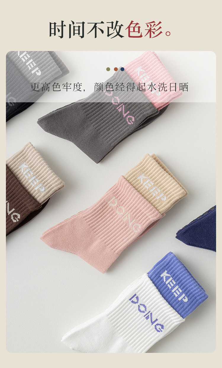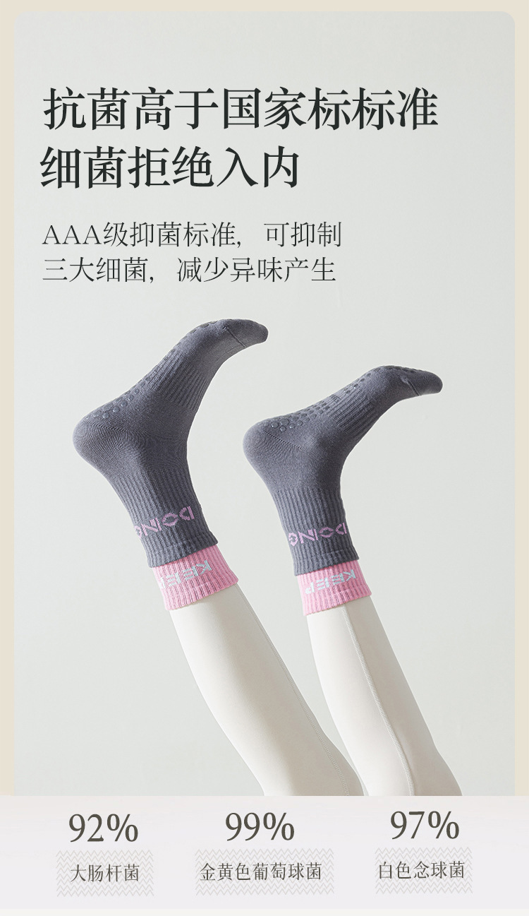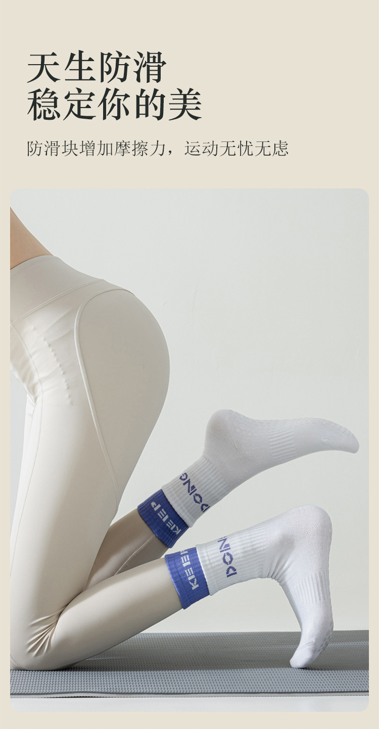 跨境中筒瑜伽防滑袜跳操运动袜纯色棉女跨境室内地板袜蹦床舞蹈