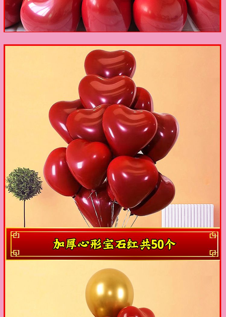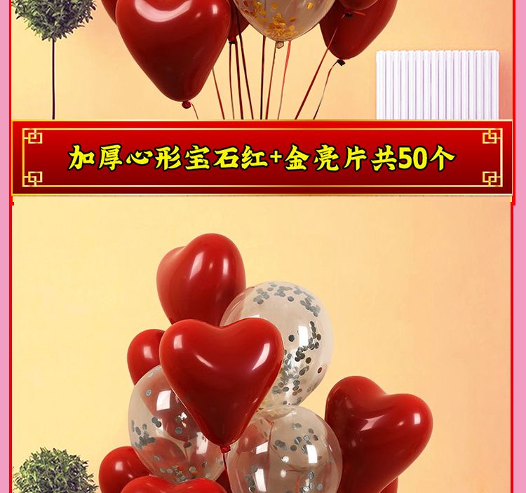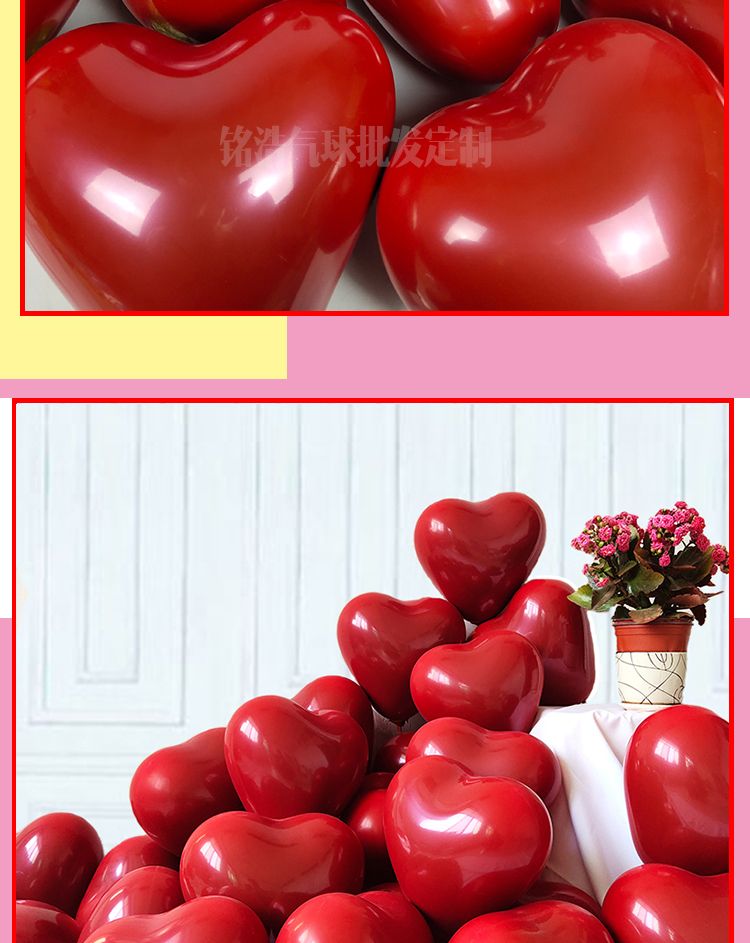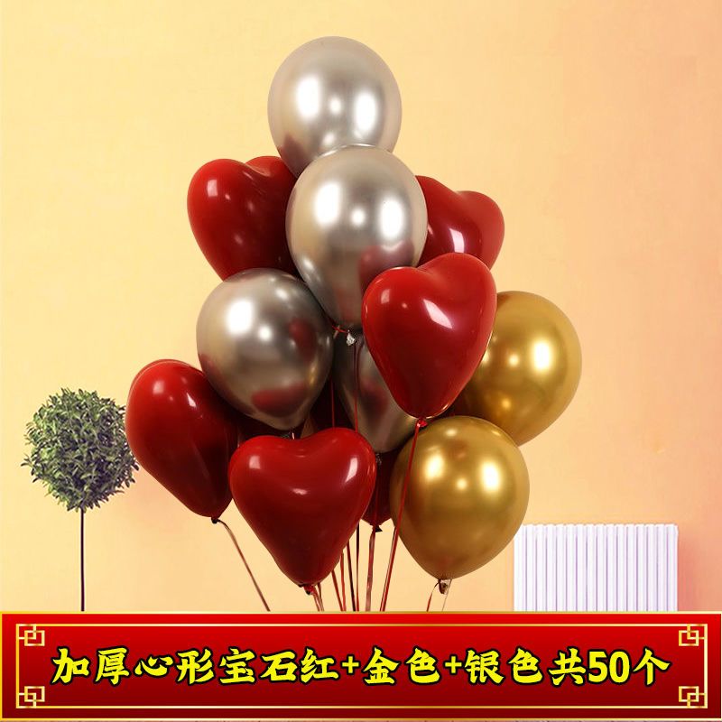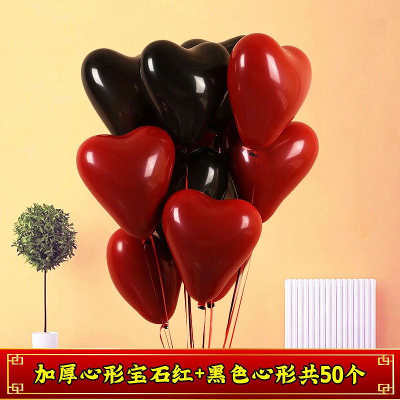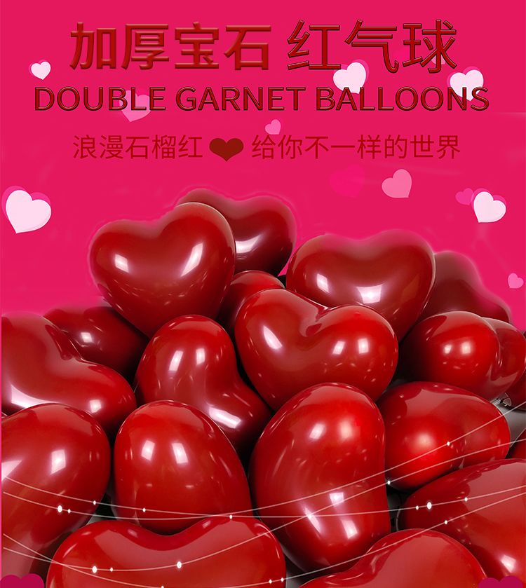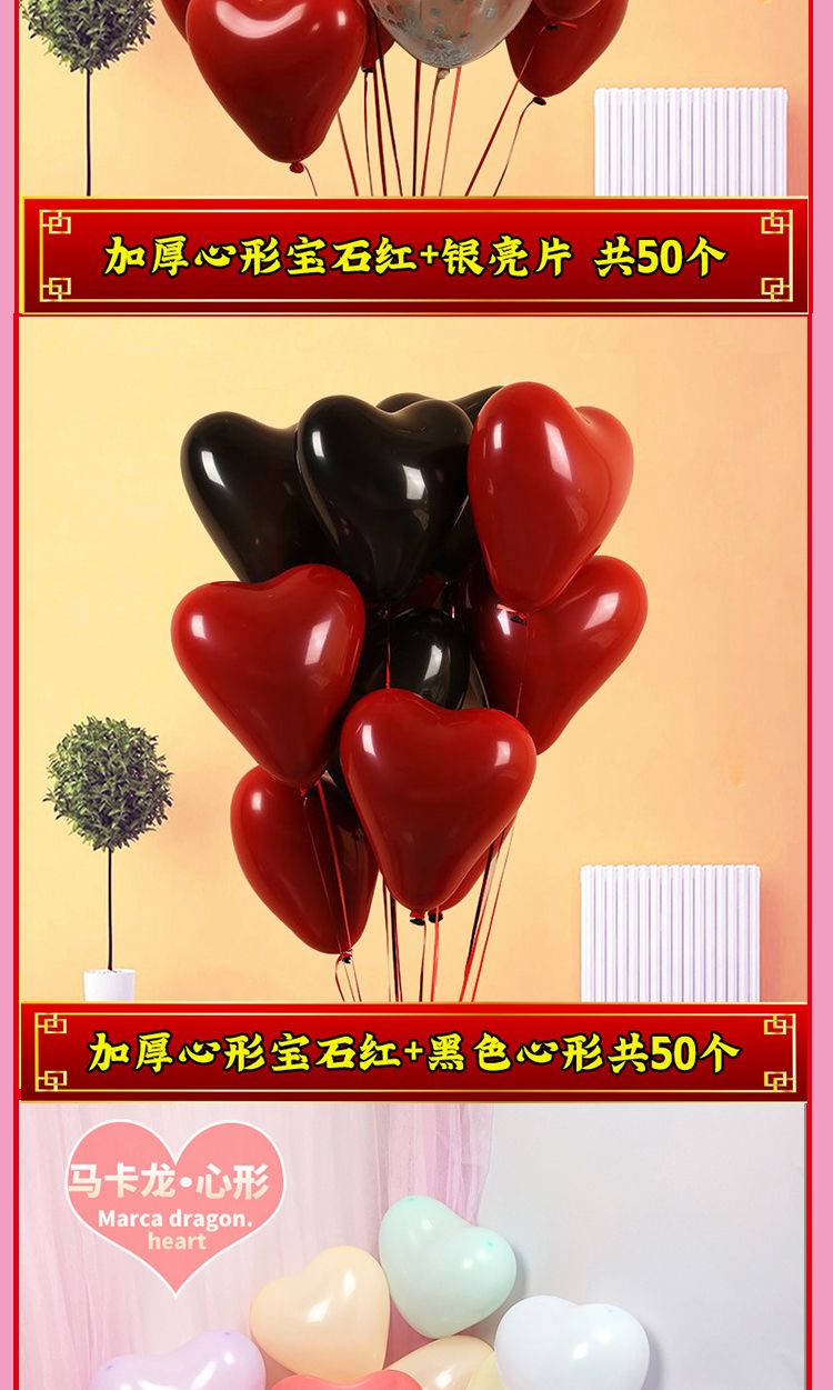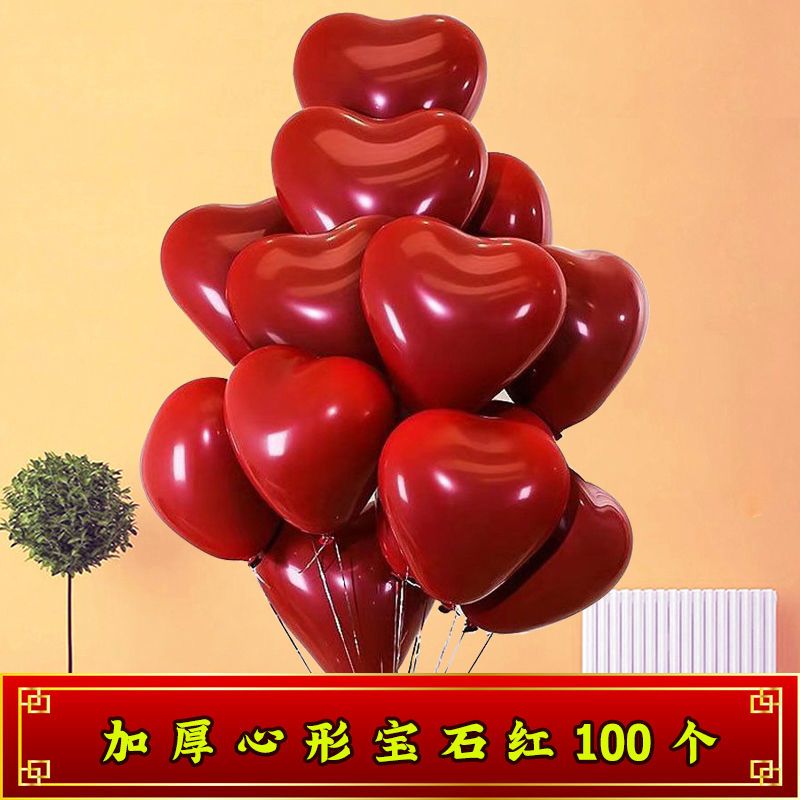 加厚婚礼石榴红心形气球马卡龙爱心汽球婚庆结婚婚房告白装饰布置