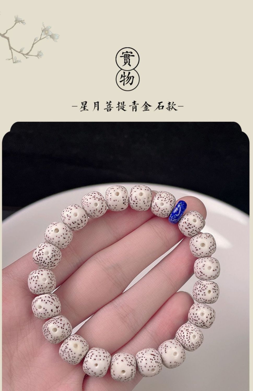 海南星月菩提子手串单圈绕指柔高密顺白正月留白佛珠文玩手链男女