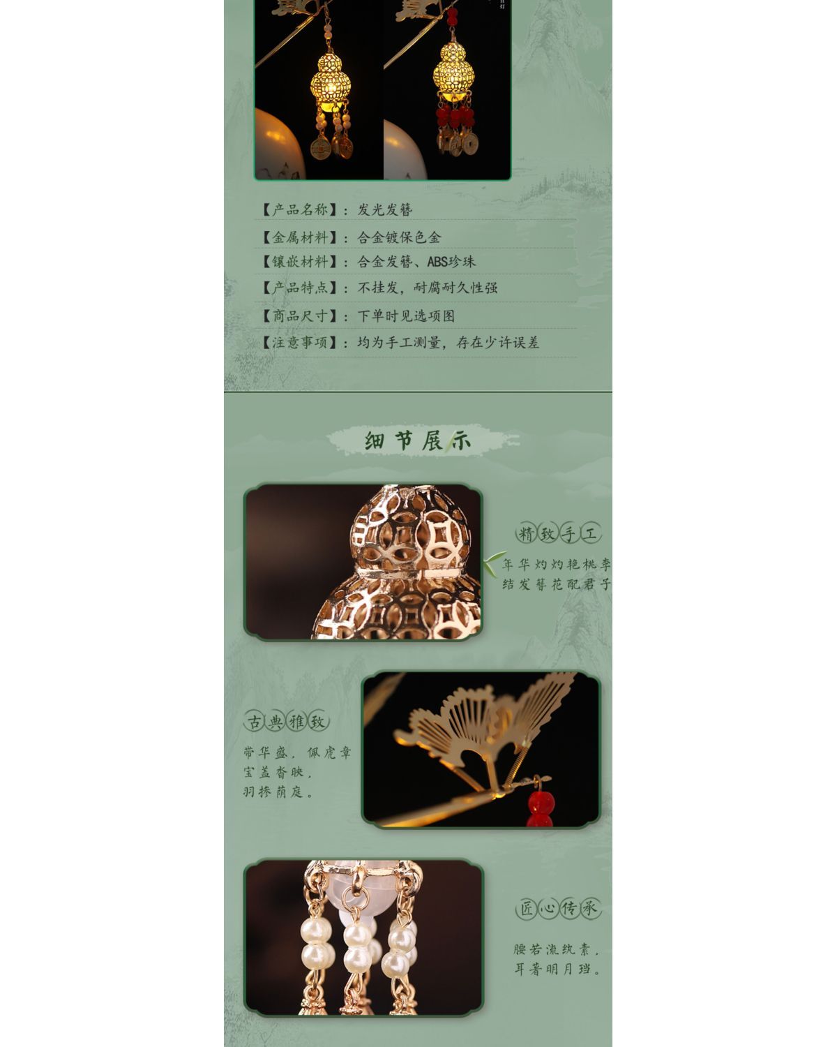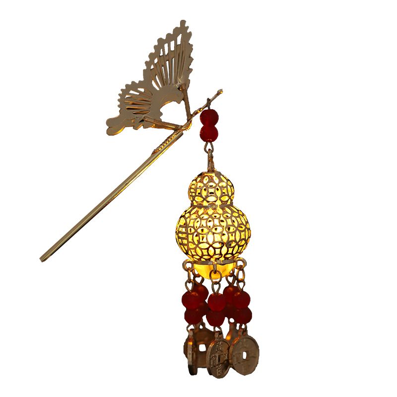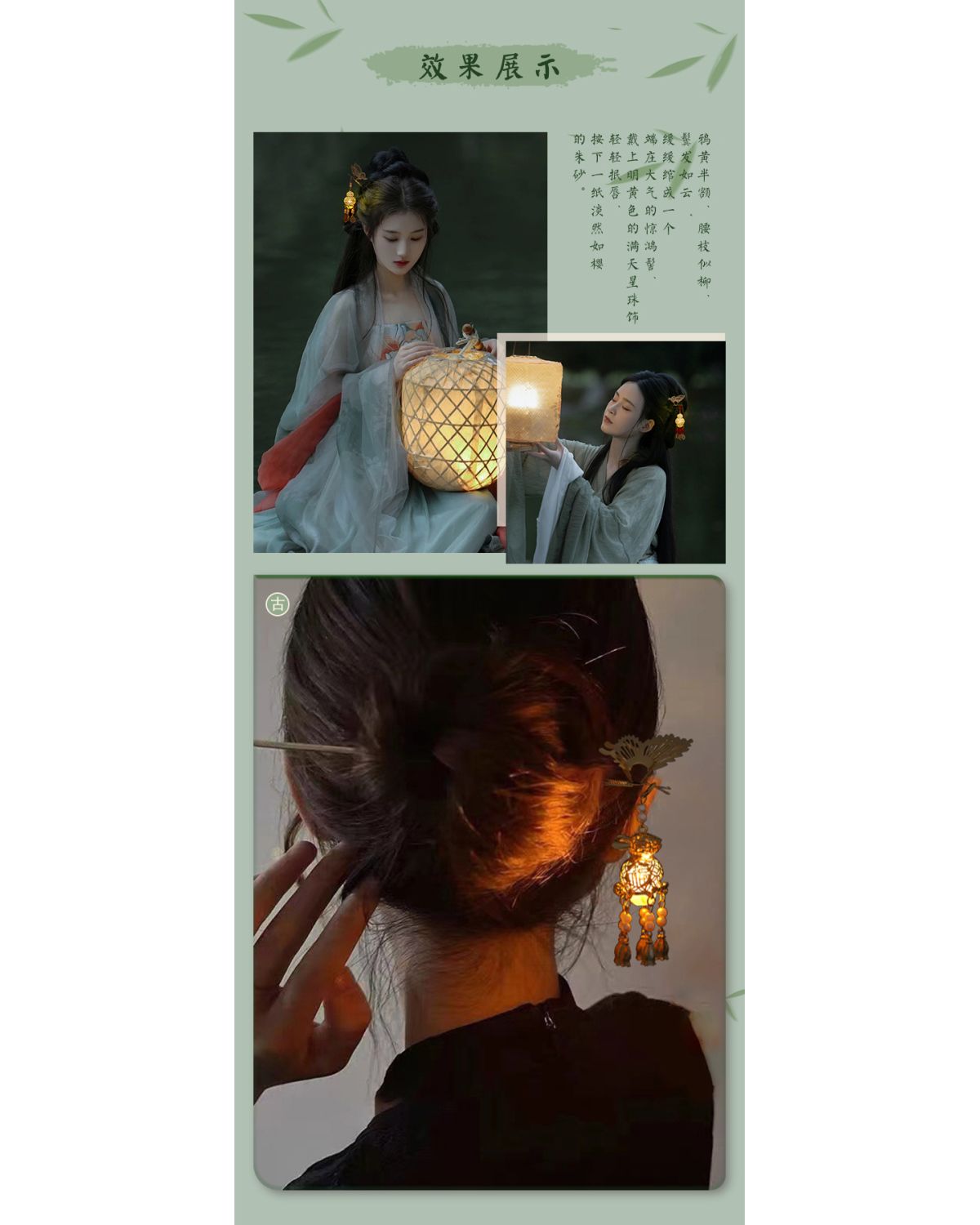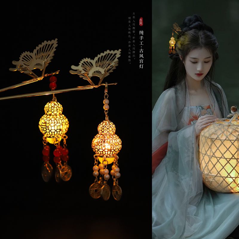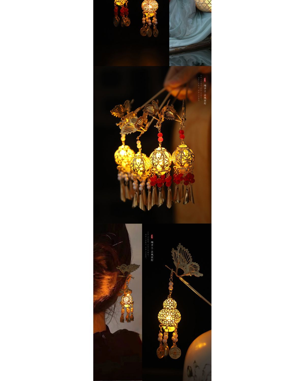 爆品风发光流苏西湖凉亭宫灯发簪步摇古风汉服挽发簪子复古头饰