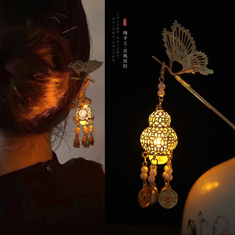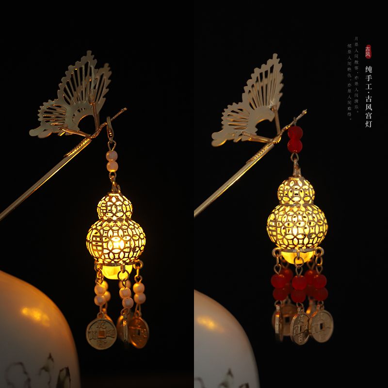 爆品风发光流苏西湖凉亭宫灯发簪步摇古风汉服挽发簪子复古头饰