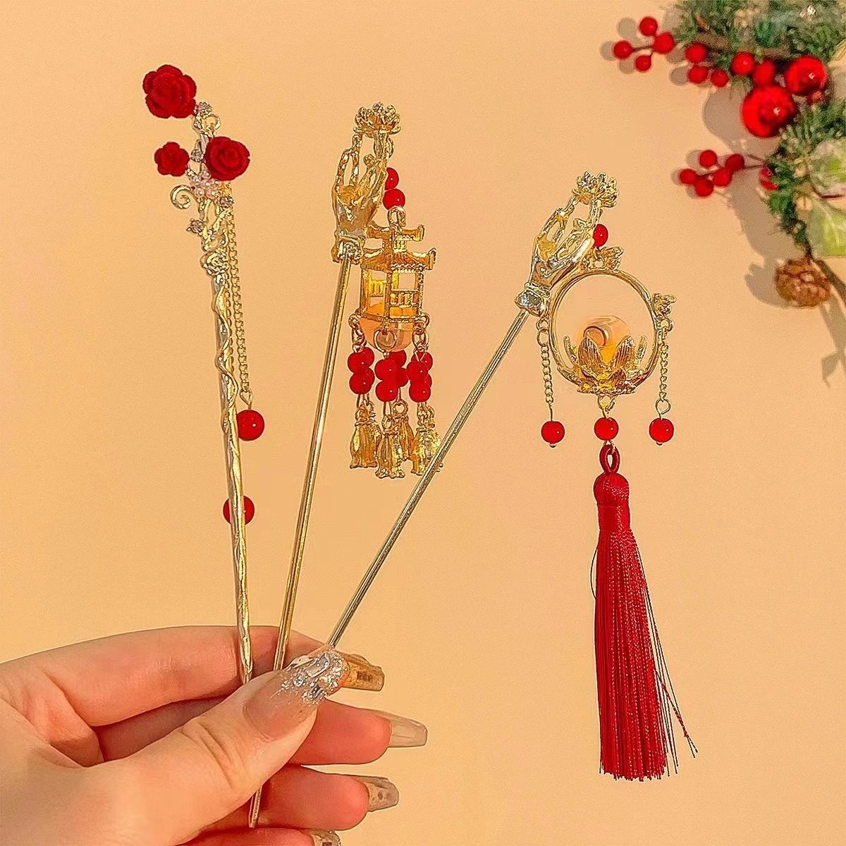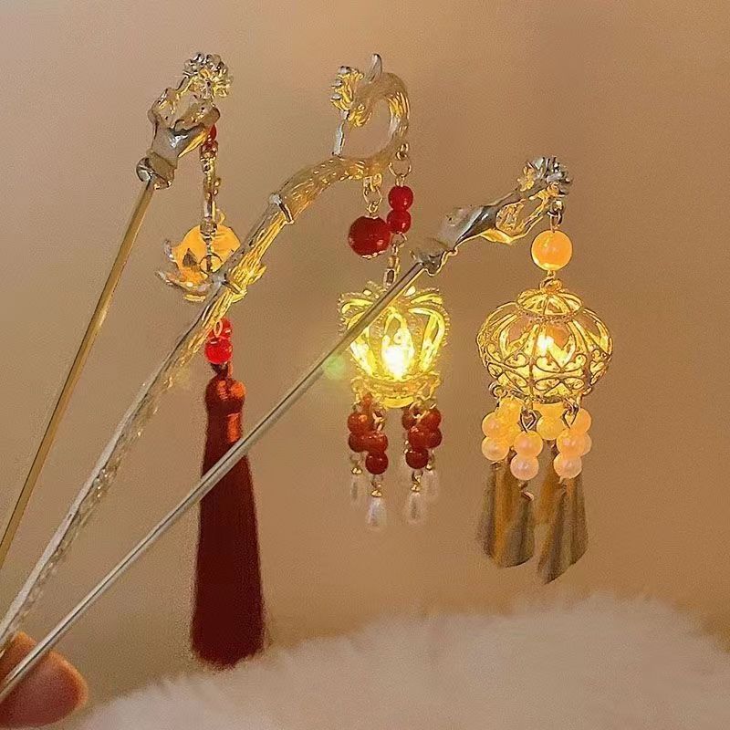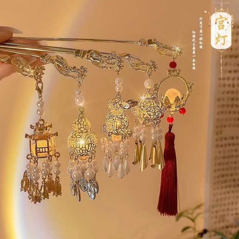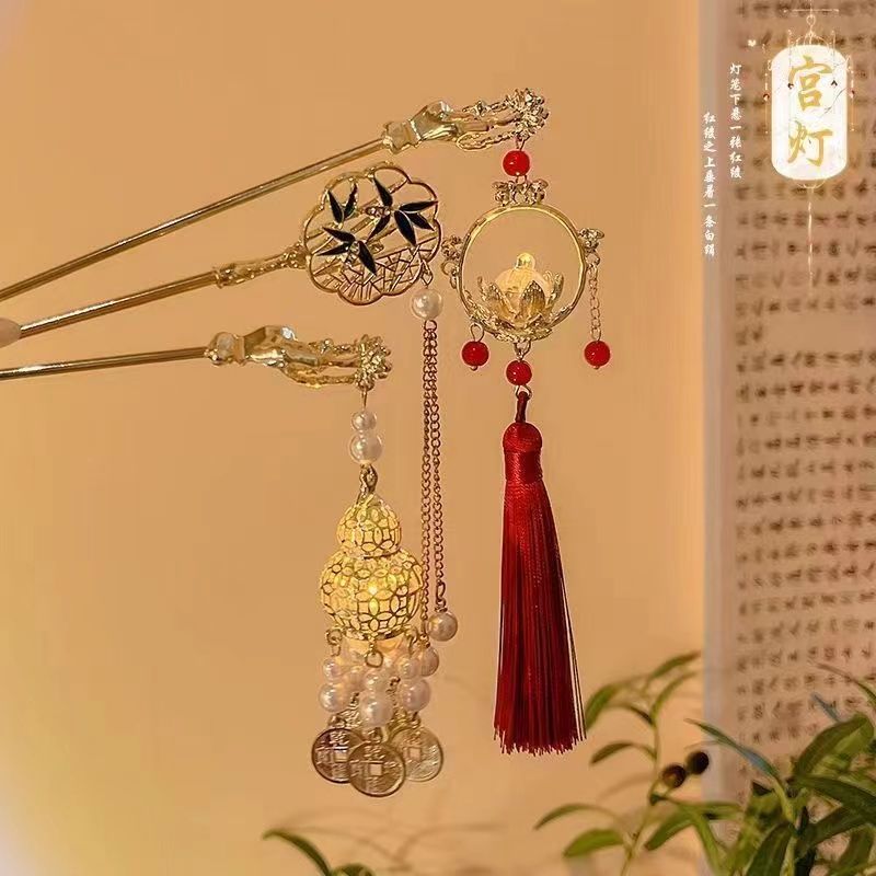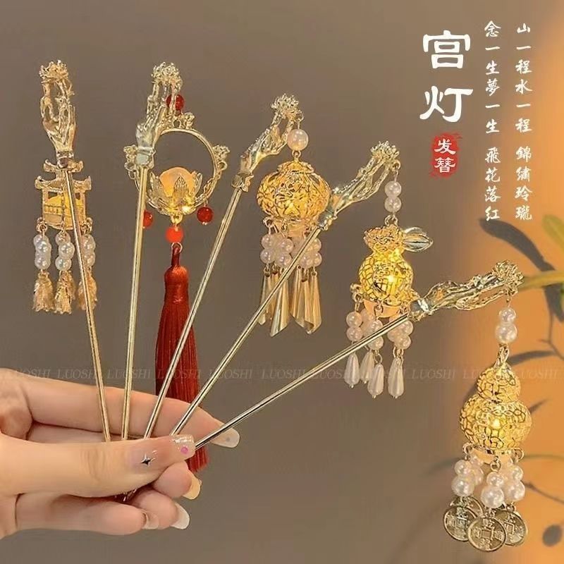宫灯发簪汉服发饰灯笼流苏簪子复古风宫廷仙气发光簪子头饰古典