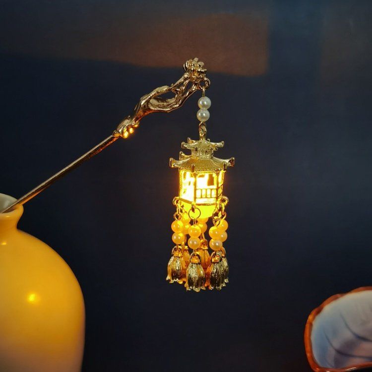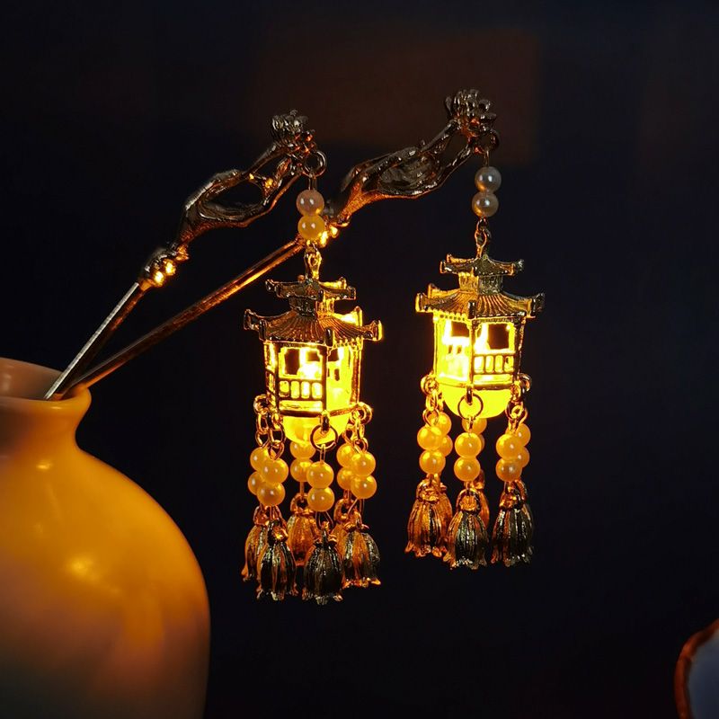 古风汉服发饰灯笼流苏发簪古风宫廷发光簪子头饰品唐风配饰