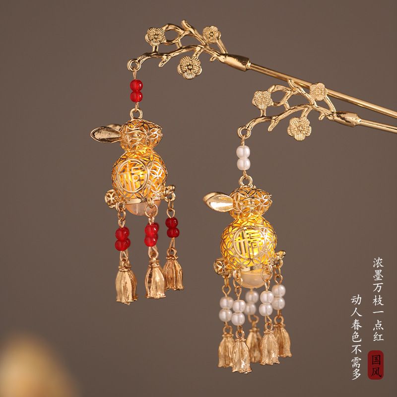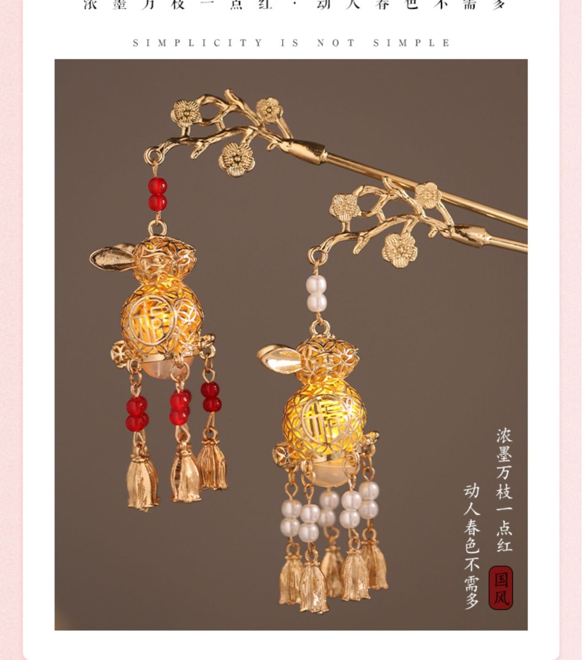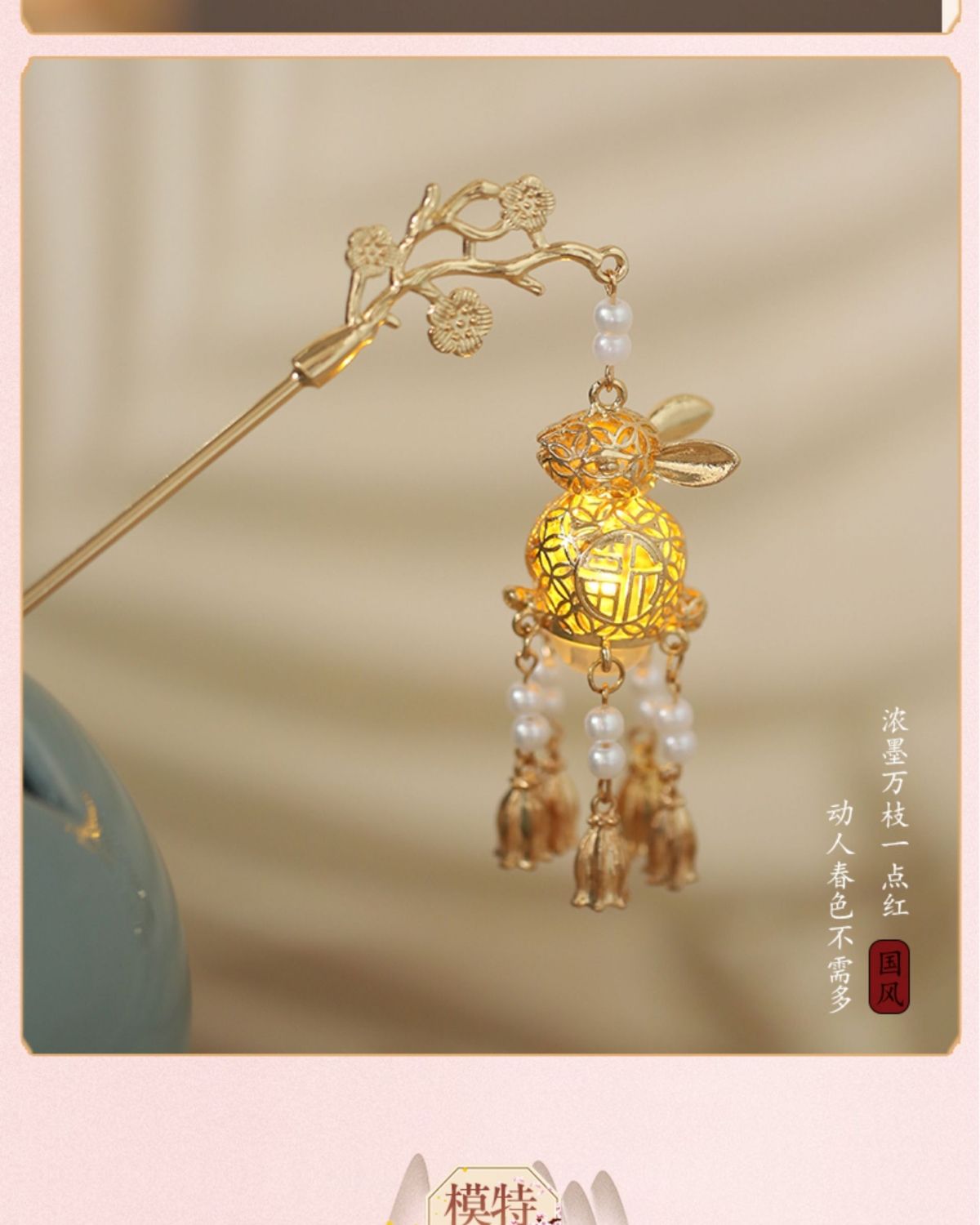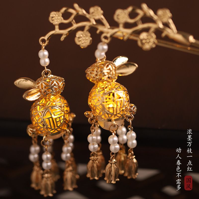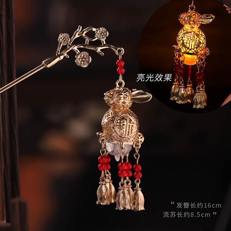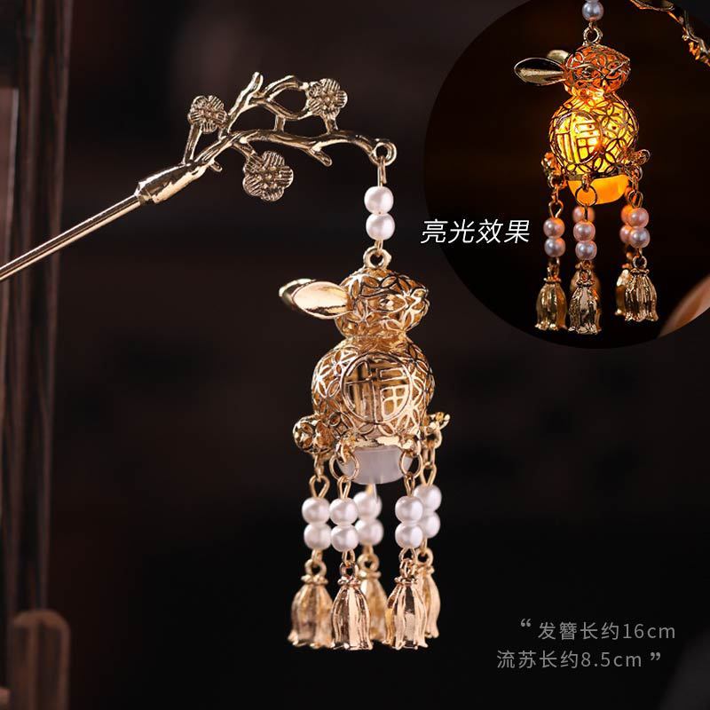 古风流苏凉亭发光发簪女生汉服西湖宫灯簪子后脑勺盘发流苏兔子