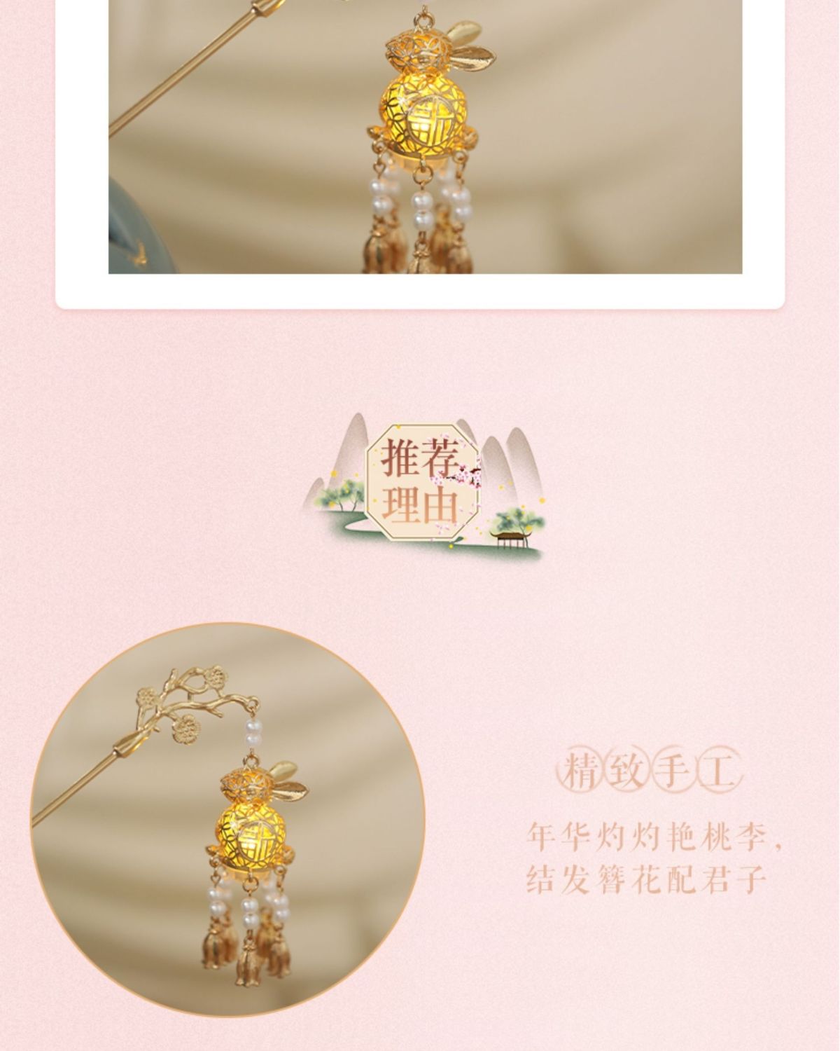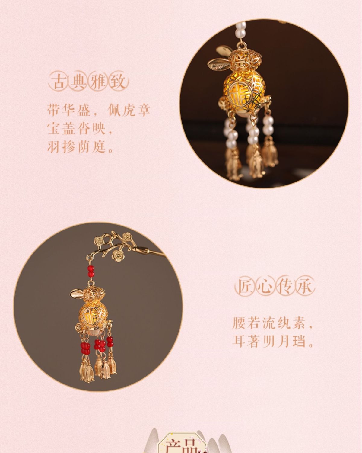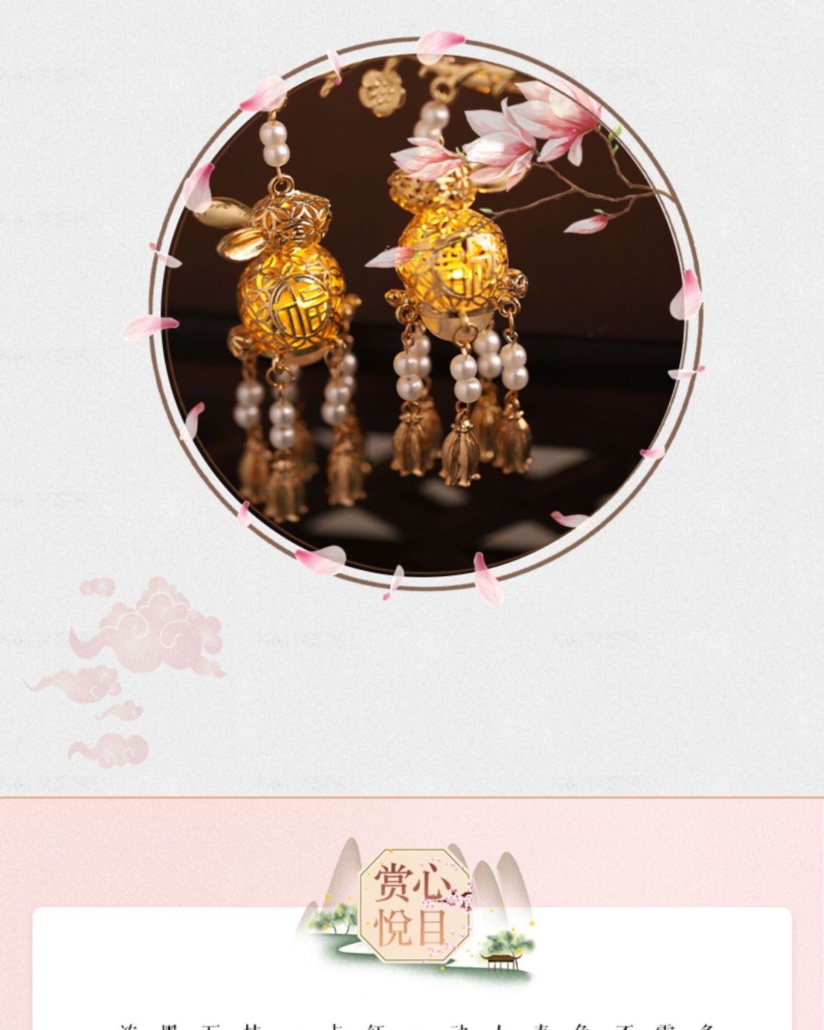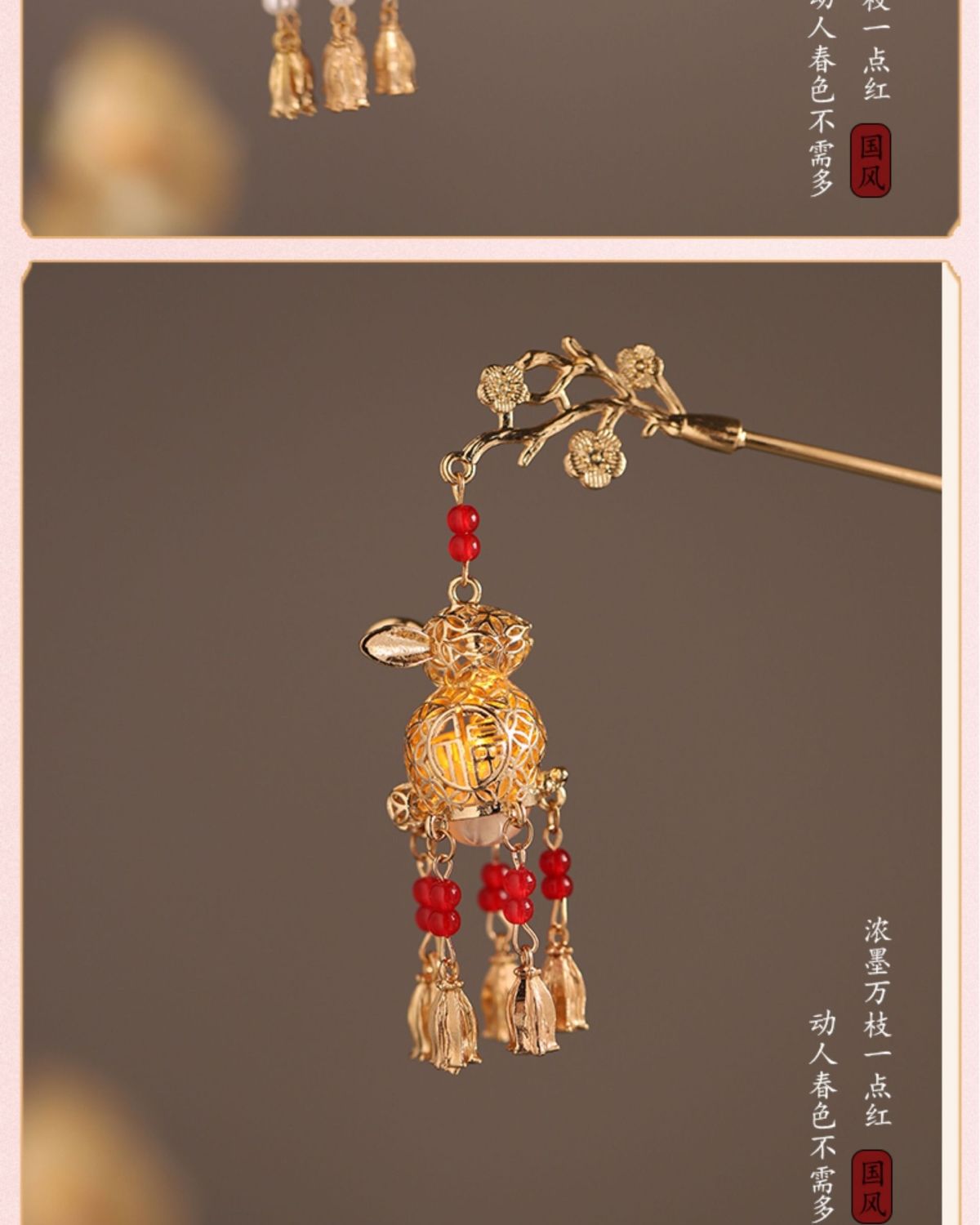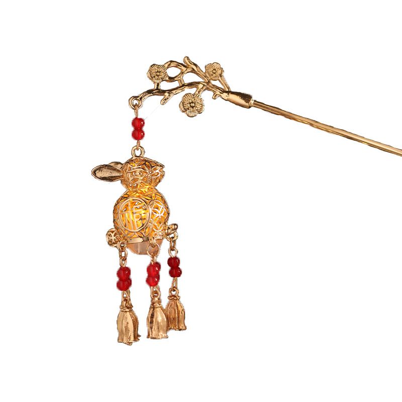 古风流苏凉亭发光发簪女生汉服西湖宫灯簪子后脑勺盘发流苏兔子