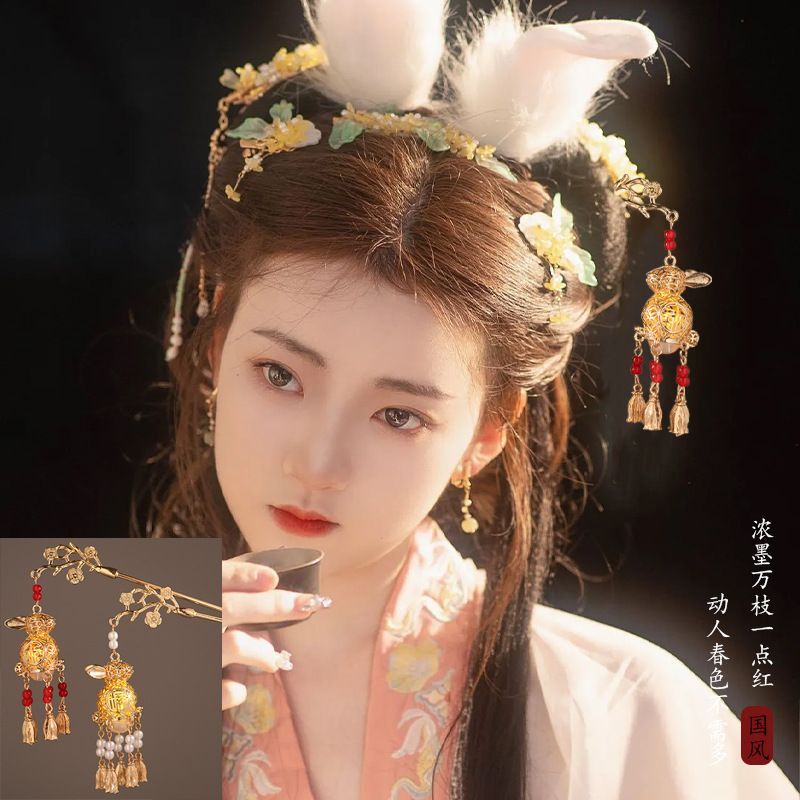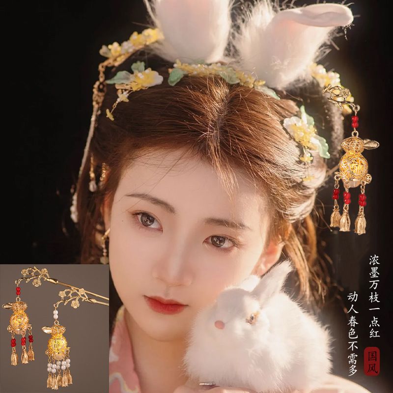 | moon rabbit hairpin single (c153 red)(月兔发簪单个(C153红)) | USD $1.54 | 999999 piece available |