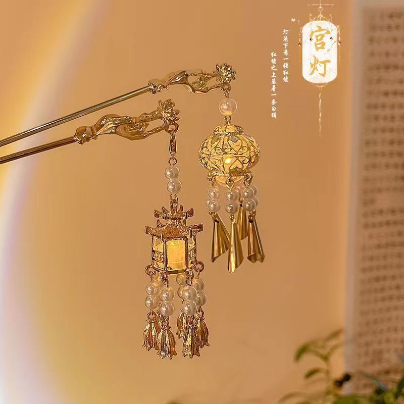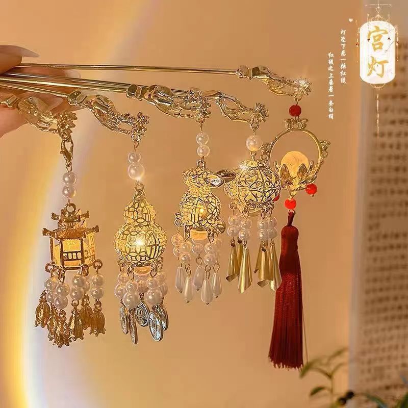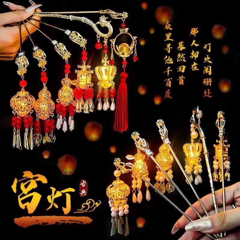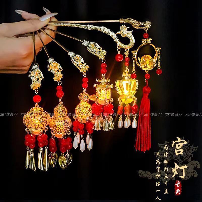 发光发簪古风流苏发簪超仙国风簪子古典灯笼盘发钗发饰灯带灯簪子