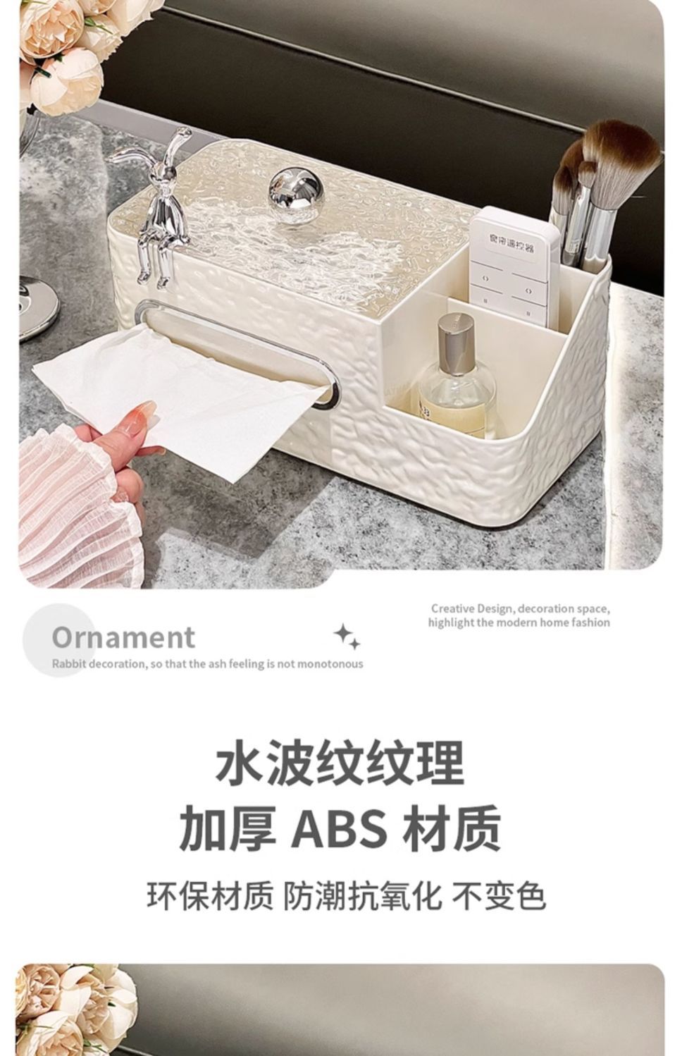 | light luxury cream style tissue box with rabbit(轻奢奶油风纸巾盒带兔子) | USD $3.8 | 999999 piece available |