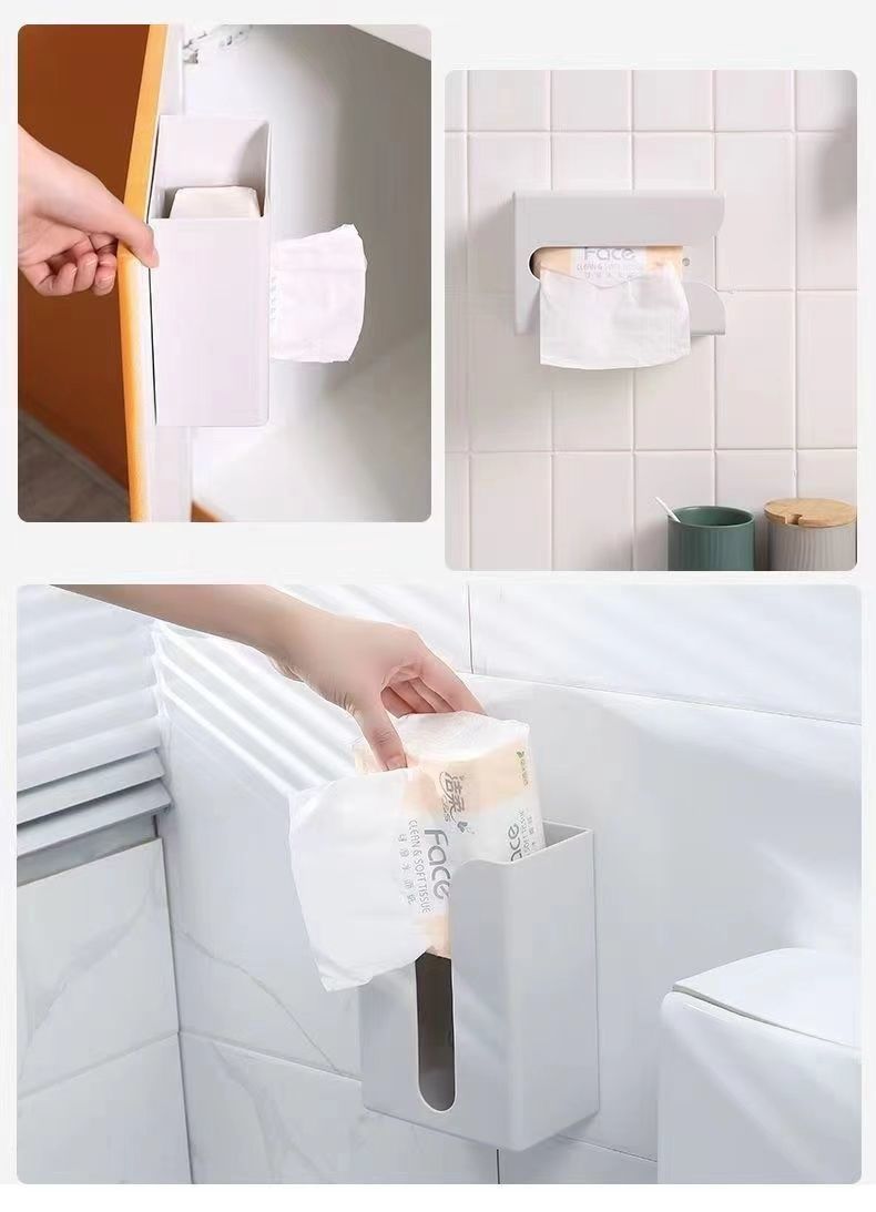 免打孔式纸巾盒收纳盒多功能车内厨房洗手间客厅卧室挂壁式抽纸盒