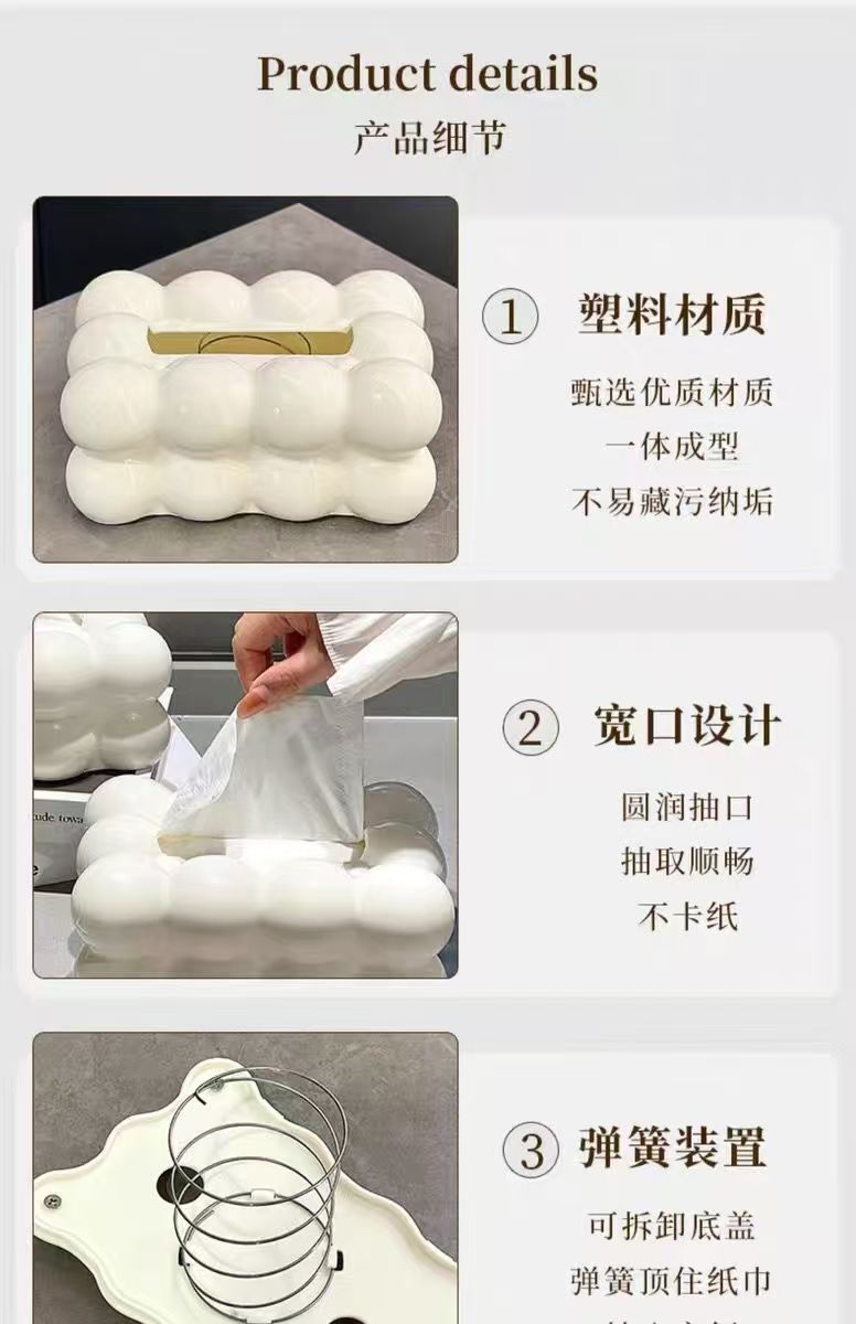 | [discount double enjoyment] cream white tissue box with bottom bead two(【优惠双享款】奶油白纸巾盒带底珠两个) | USD $4.61 | 999999 piece available |