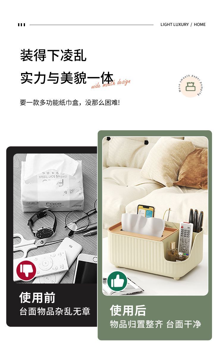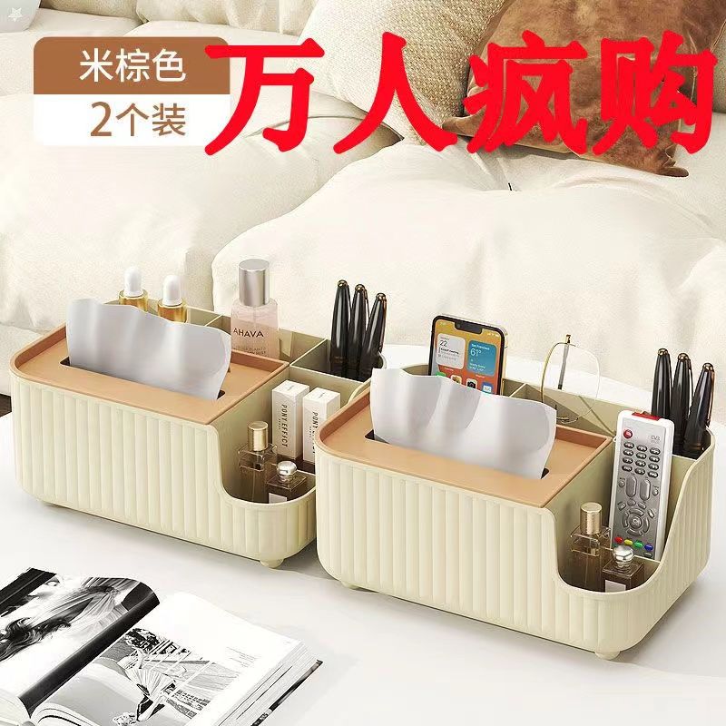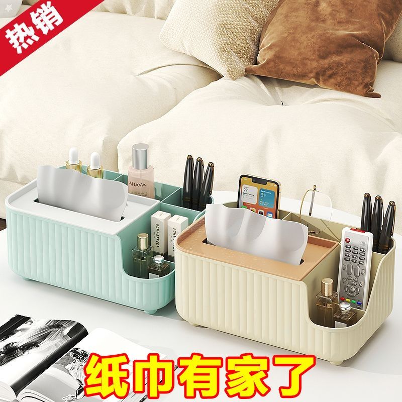 纸巾盒桌面收纳盒收纳茶几遥控器家用客厅轻奢纸盒多功能创意简约