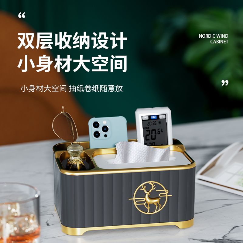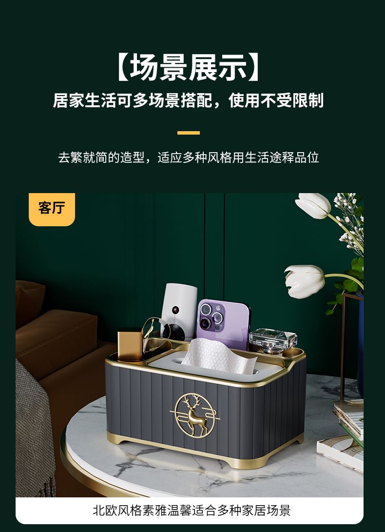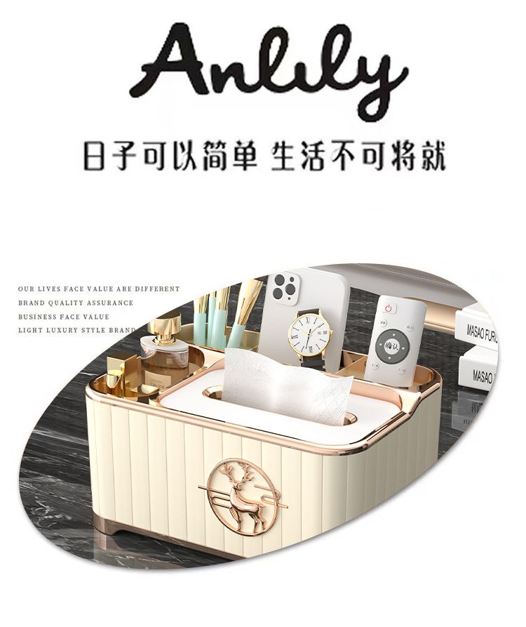 高档豪华多功能纸巾盒抽纸盒家创意茶几遥控器收纳盒桌面轻奢餐巾