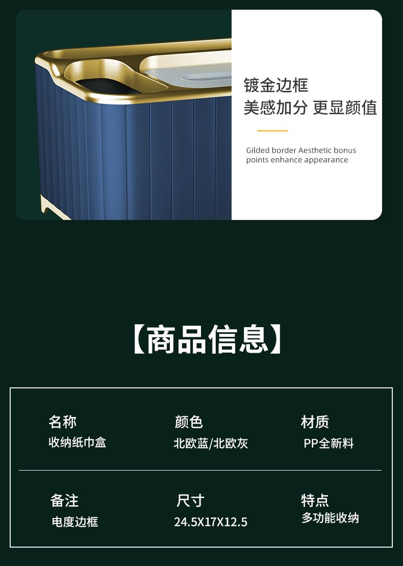 | nordic blue multifunctional tissue storage box(北欧蓝多功能纸巾收纳盒) | USD $3.6 | 999999 piece available |