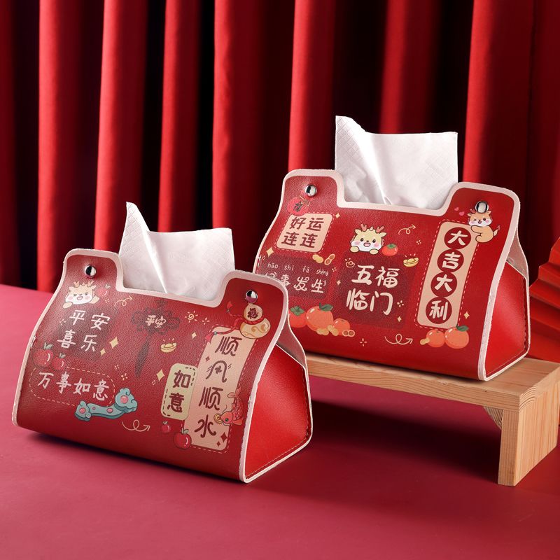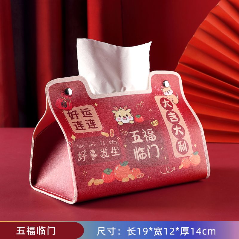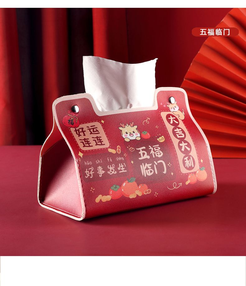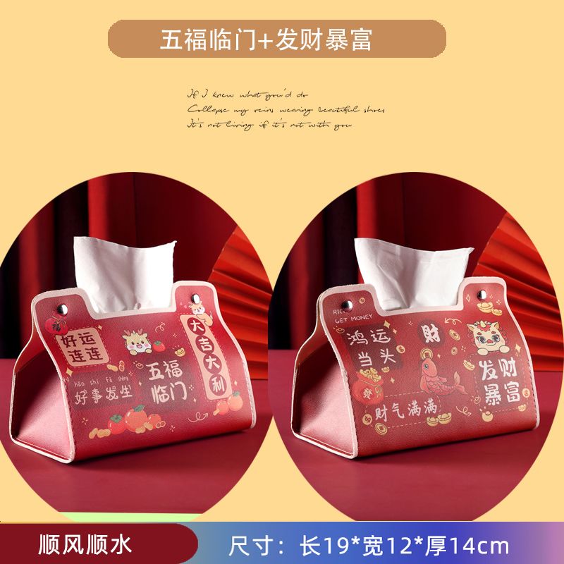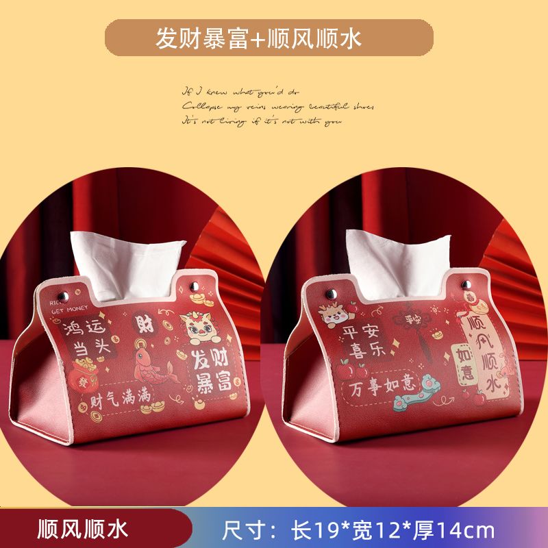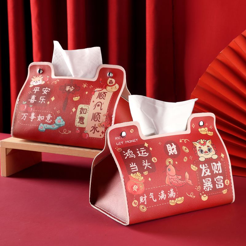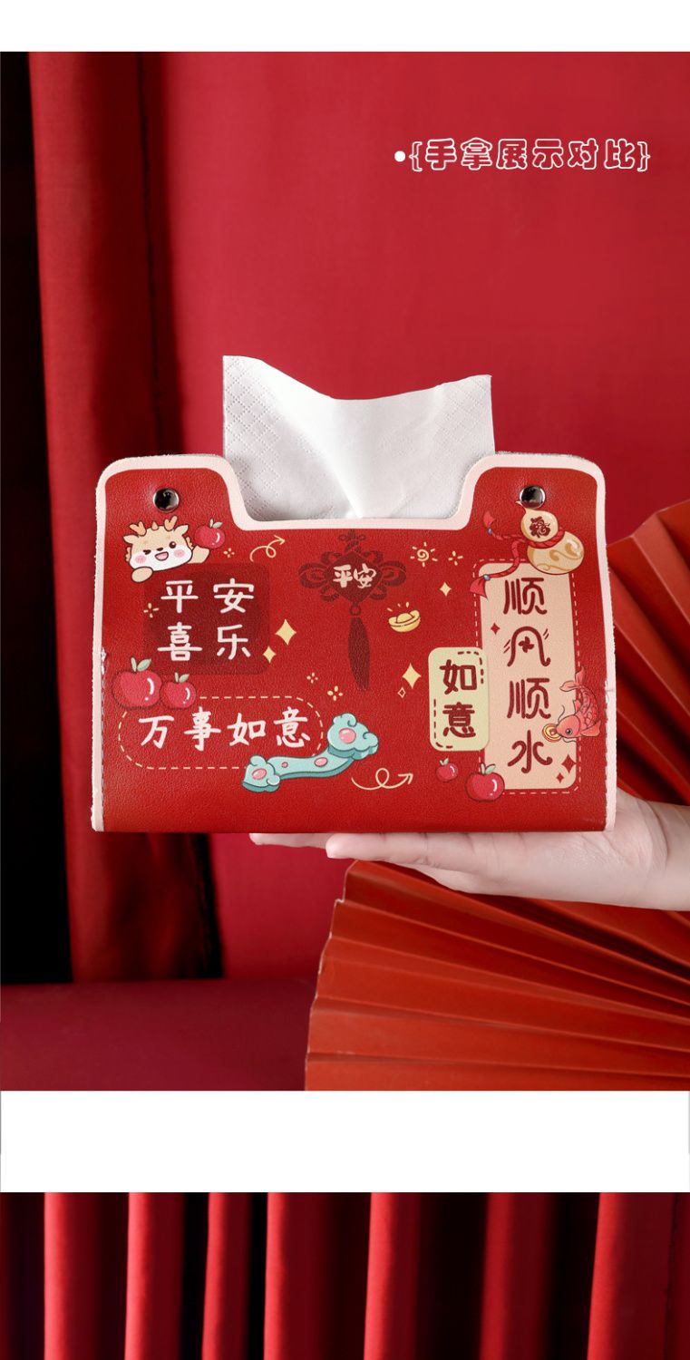 新款龙年纸巾盒国风中式喜庆纸抽盒高级车载家用卧室多功能收纳盒