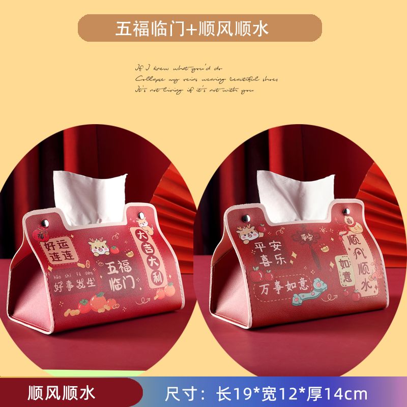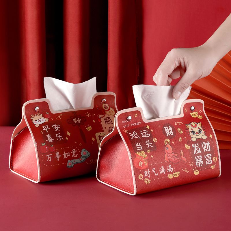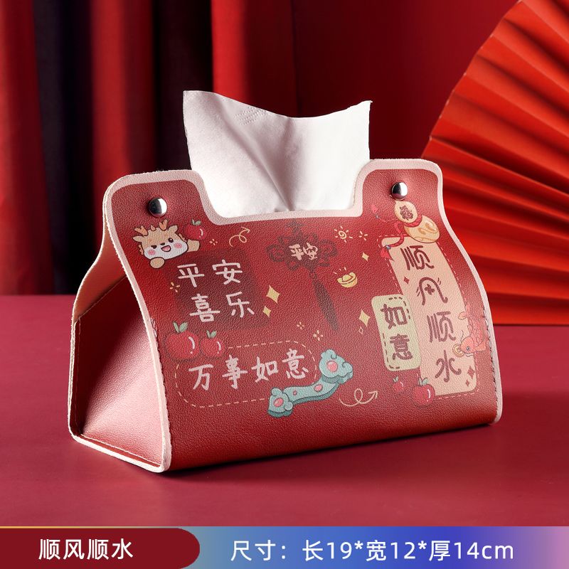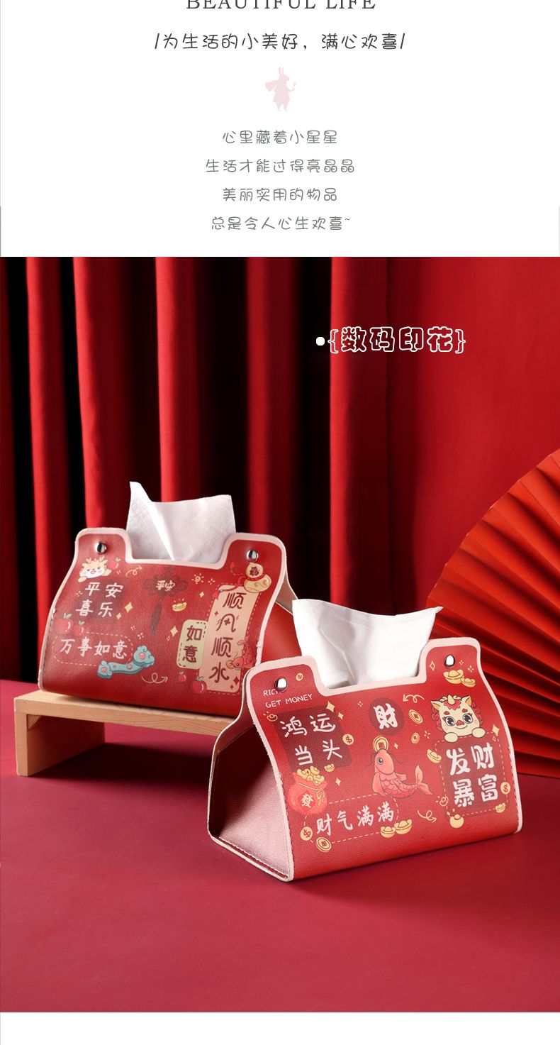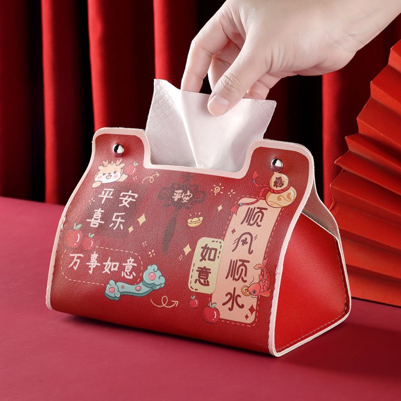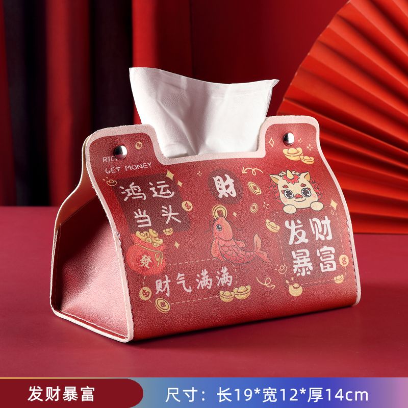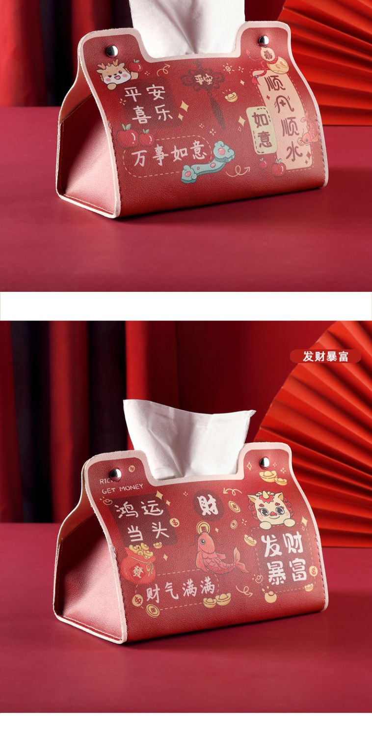 新款龙年纸巾盒国风中式喜庆纸抽盒高级车载家用卧室多功能收纳盒