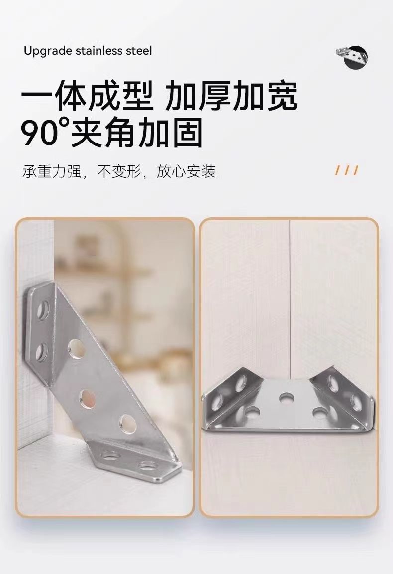 三角不锈钢支架加厚角码多功能固定器橱柜加固90配件直角吊柜