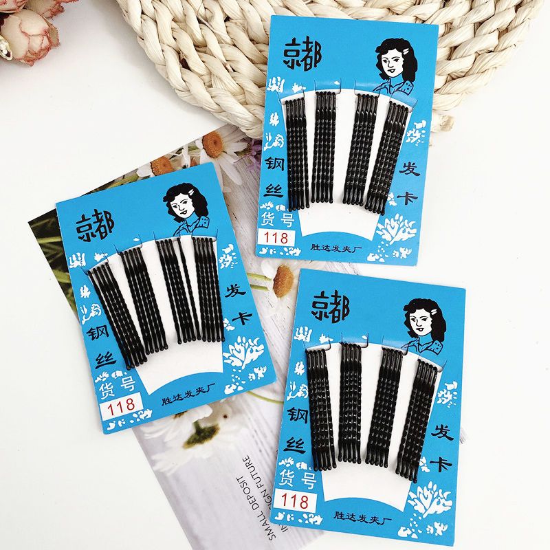 黑色一字夹波浪发夹女碎发神器钢卡刘海盘头发夹子钢丝边夹小卡子