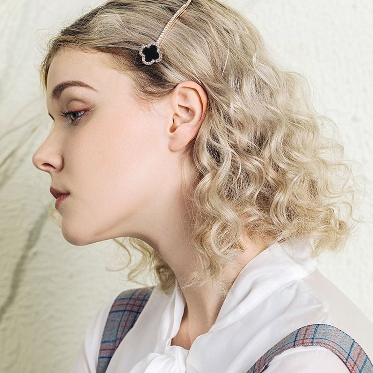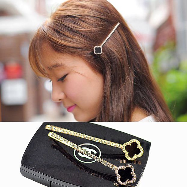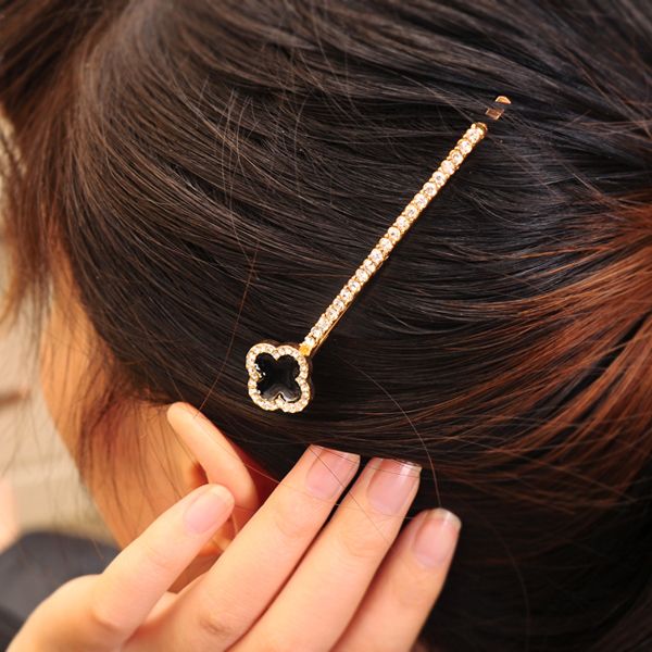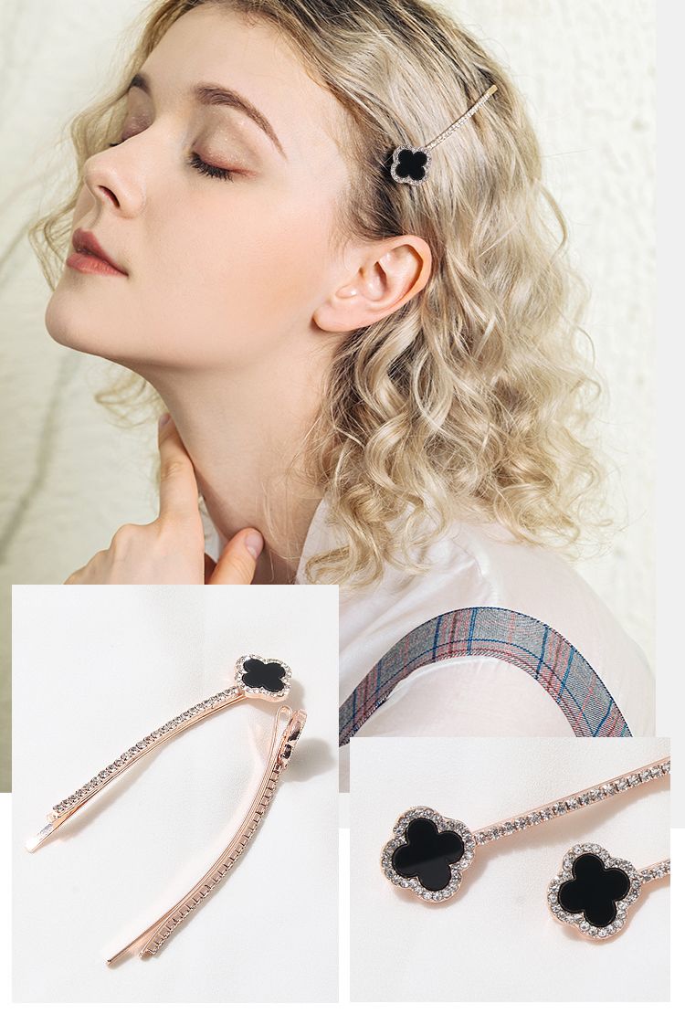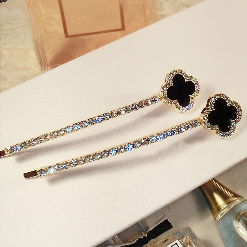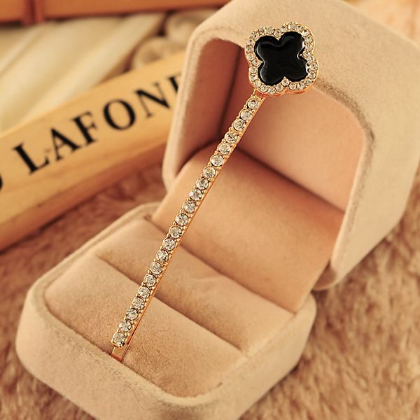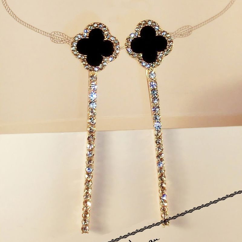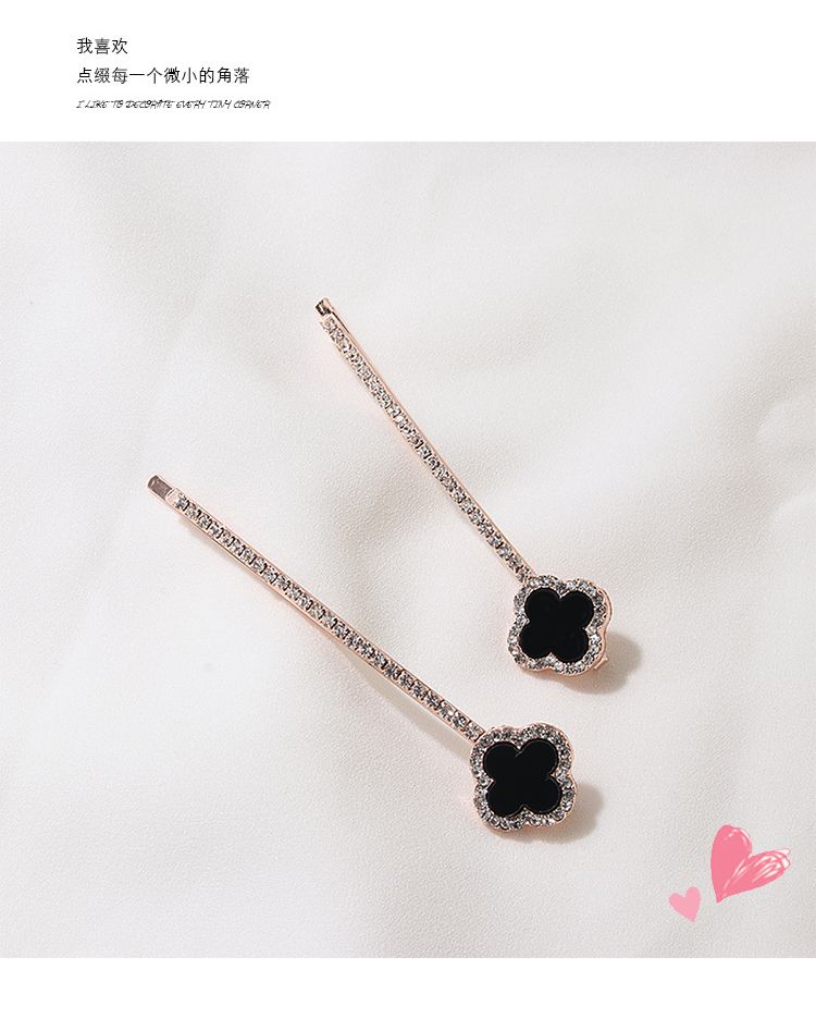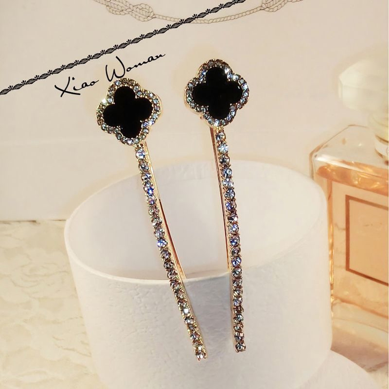 刘海发夹边夹长款一字夹头饰韩国水钻黑色花顶夹成人百搭刘海对夹