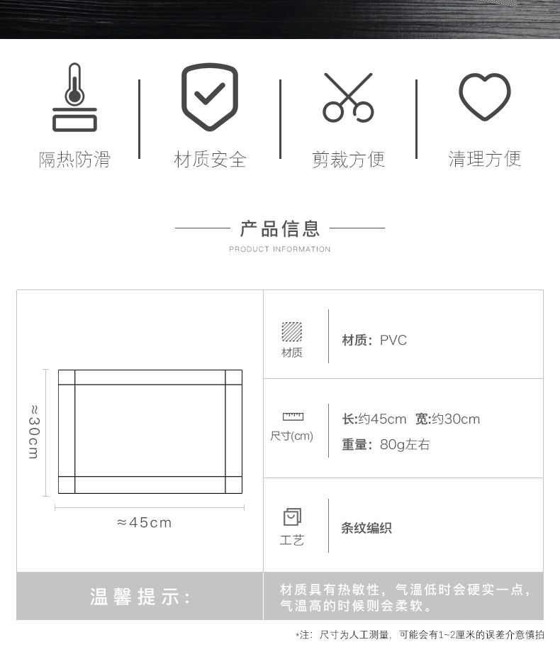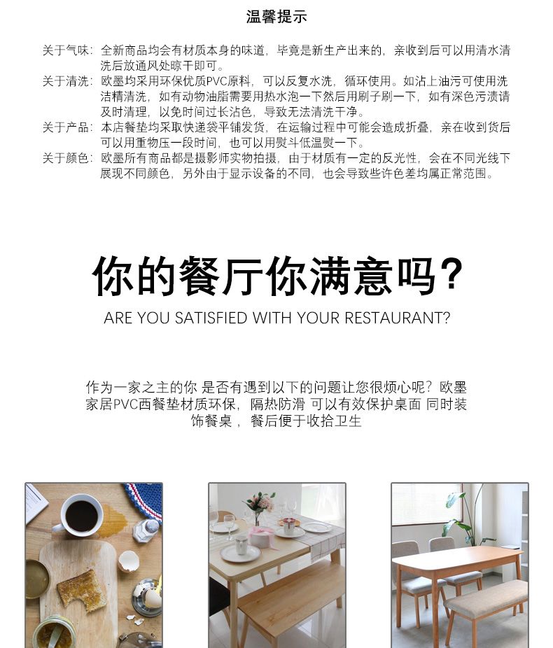 轻奢酒店 高级PVC塑料防滑隔热垫餐桌垫免洗防油盘碗碟西