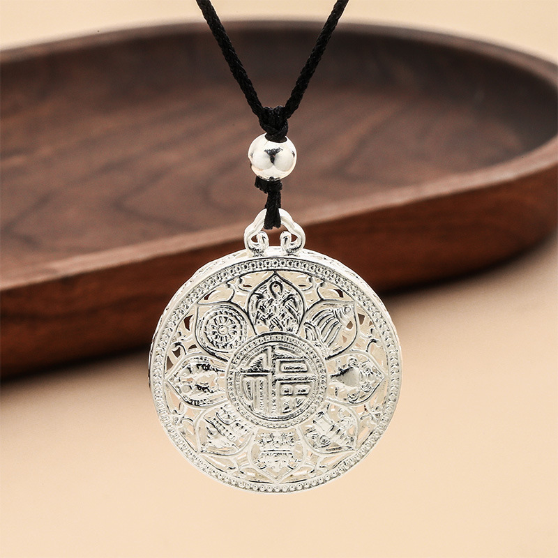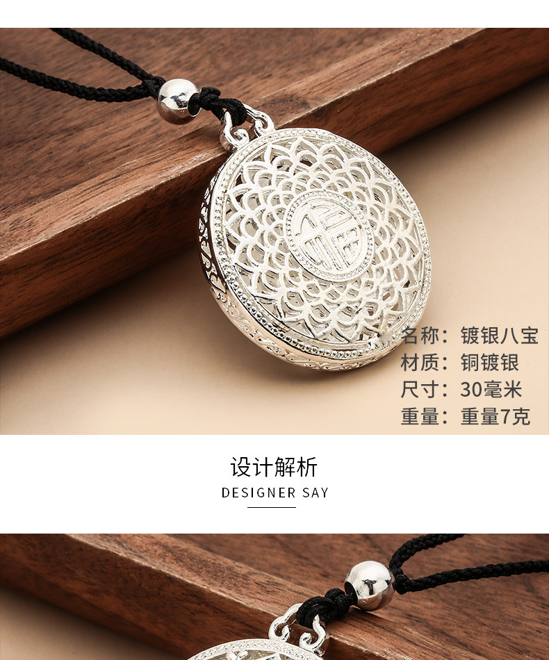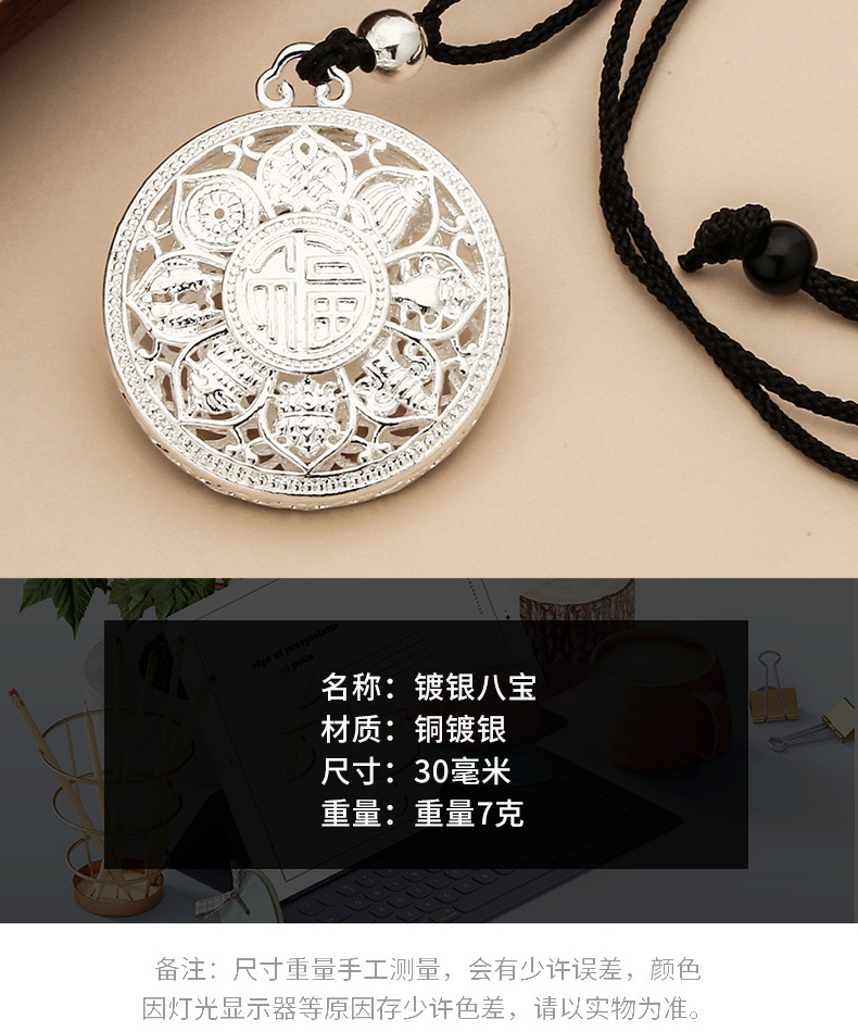 女士毛衣链吊坠绳子批发时尚女款平安扣八宝罗盘镀银八宝