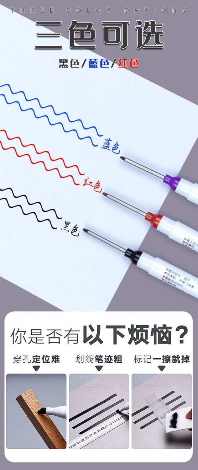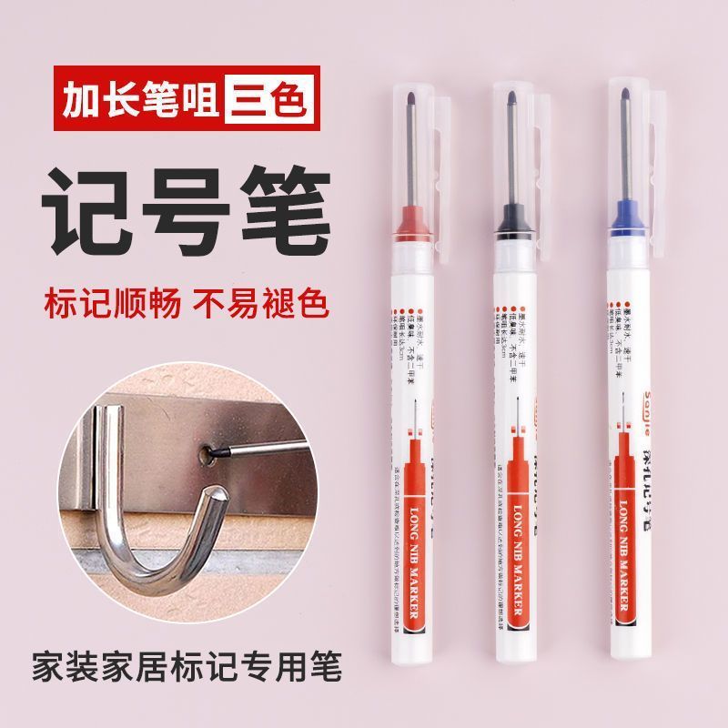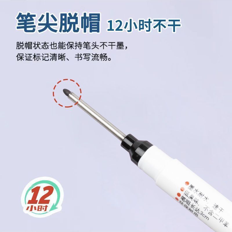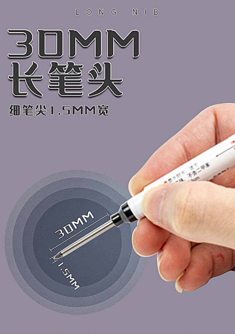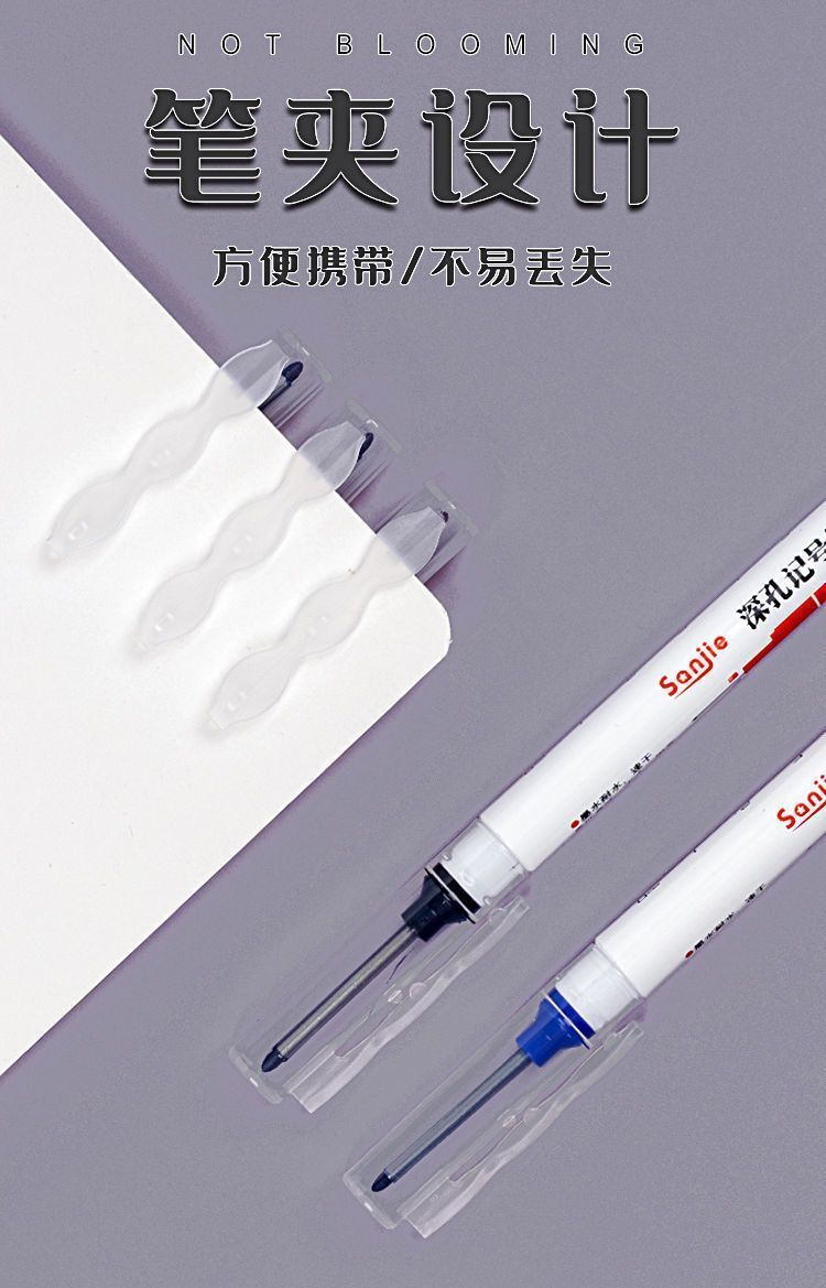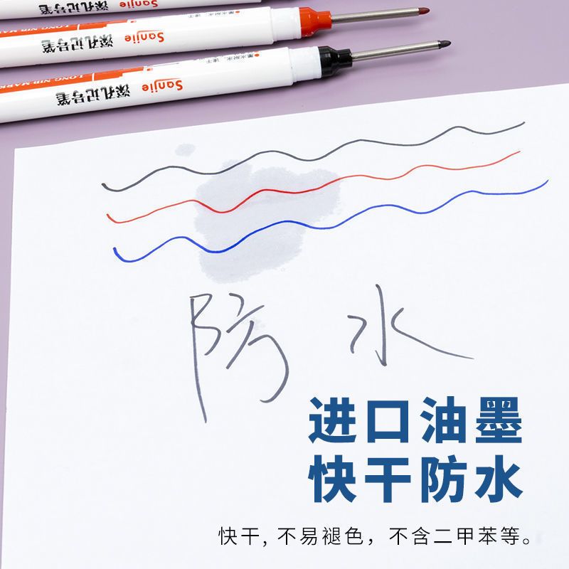 长嘴深孔长头记号笔黑色防水不掉墨细头标记笔木工专用油性笔20mm