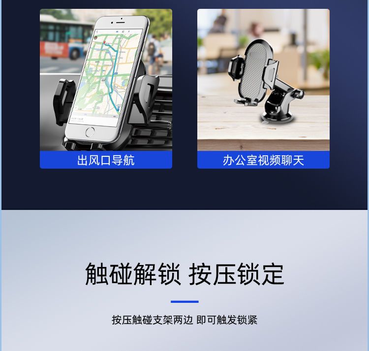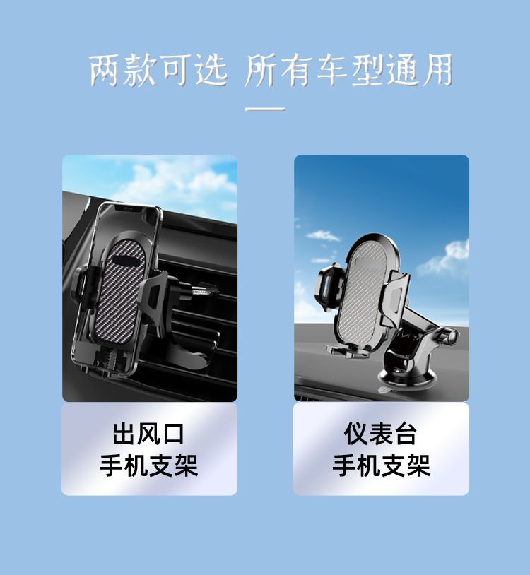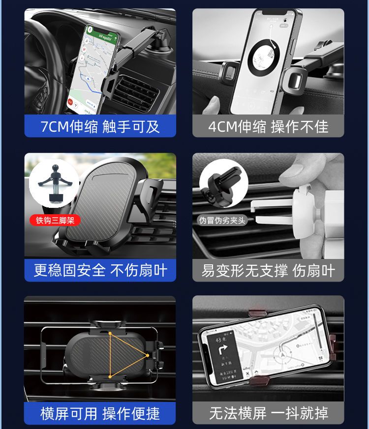 车载手机架支架汽车吸盘式通用导航出风口仪表台全自动可充电卡扣