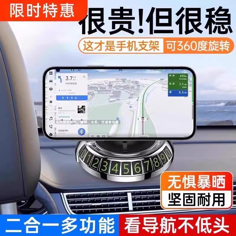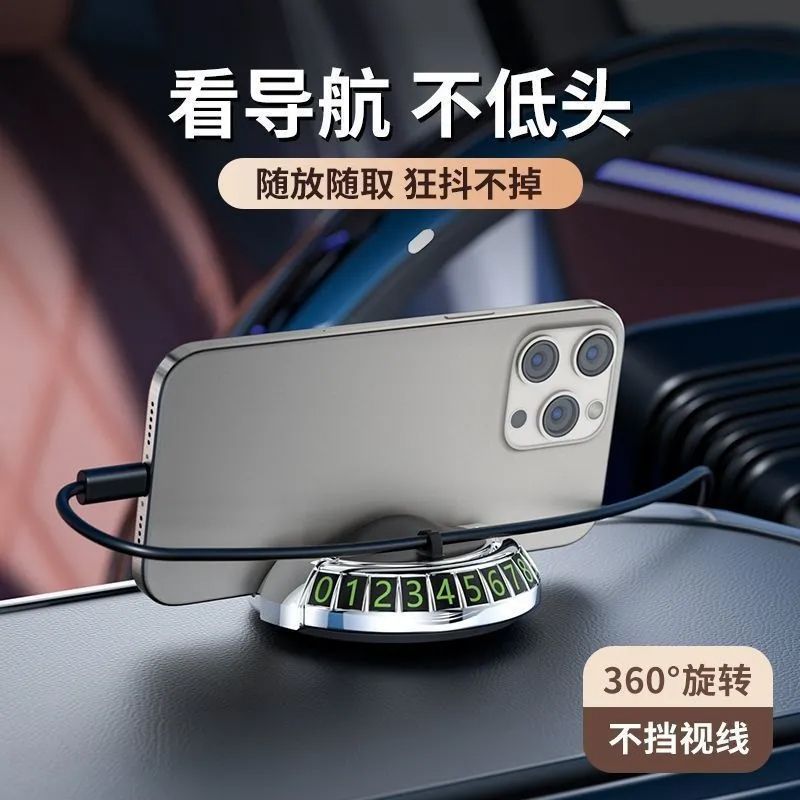 车载手机支架二合一可旋转仪表台中控台车用多功能停车号码牌支架