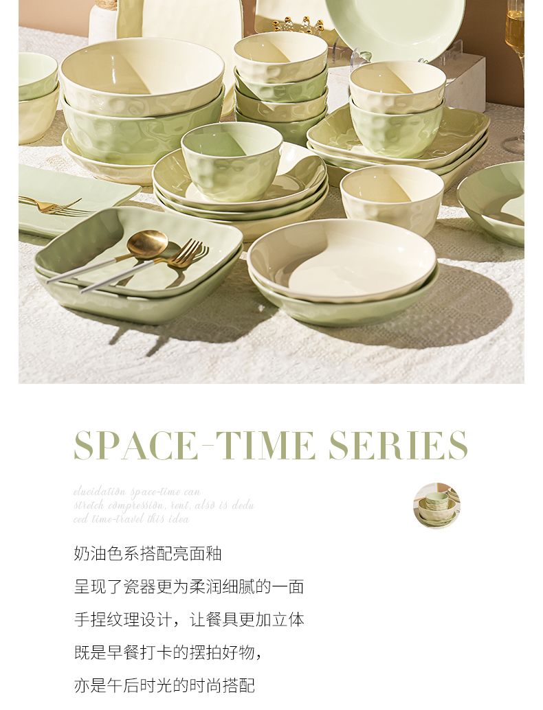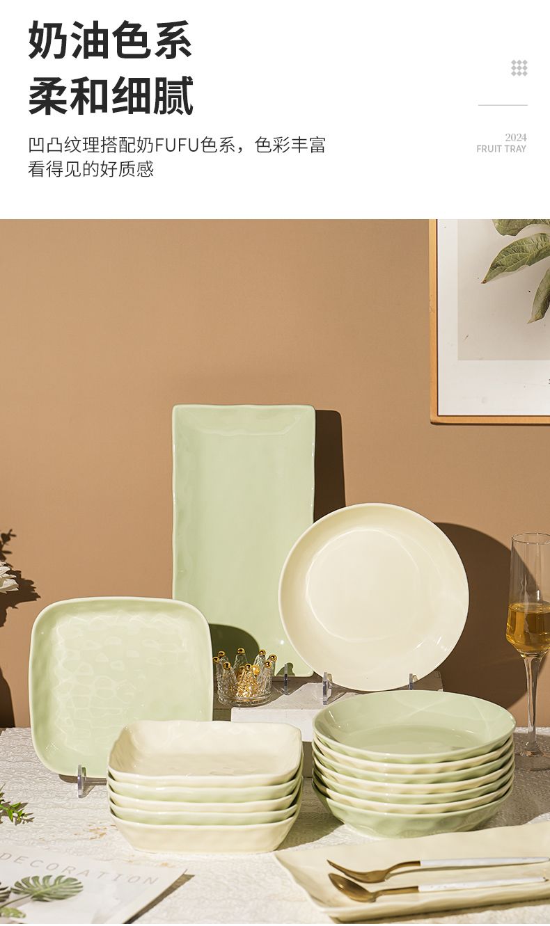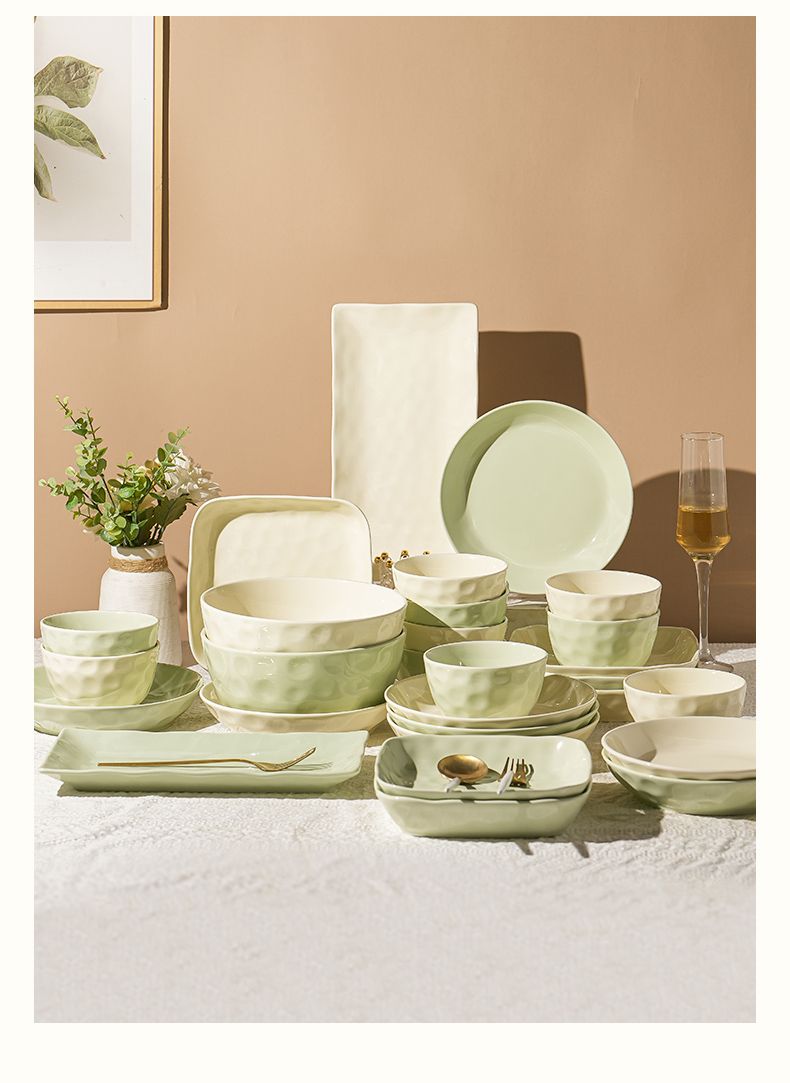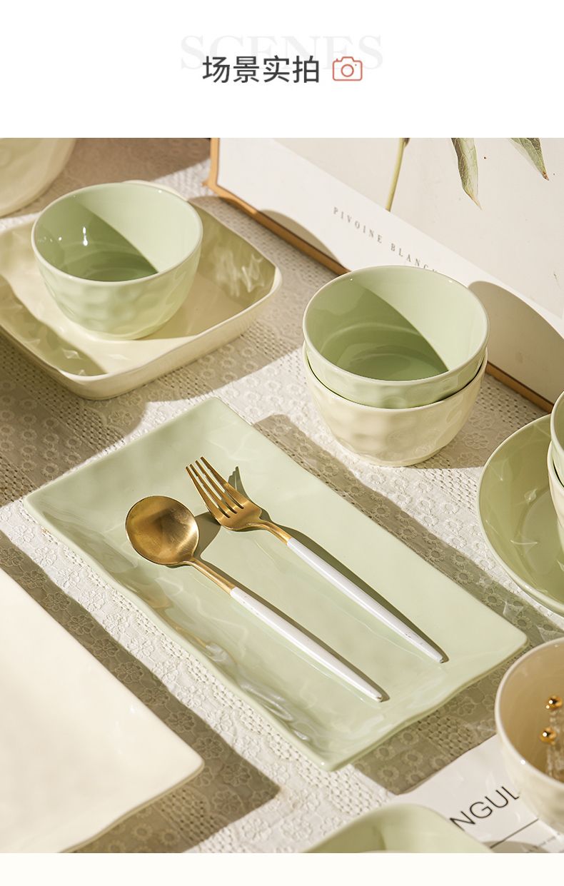 奶油风餐具碗碟套装家用清新碗具套装碗盘碗筷碗家用2024新款轻奢