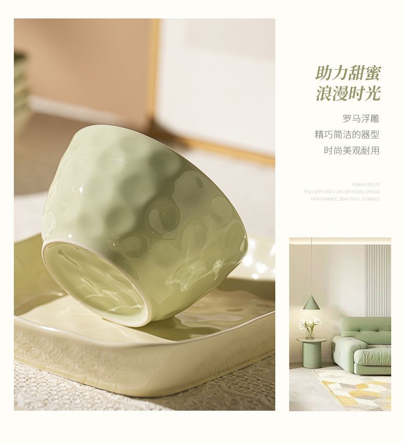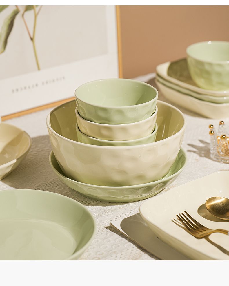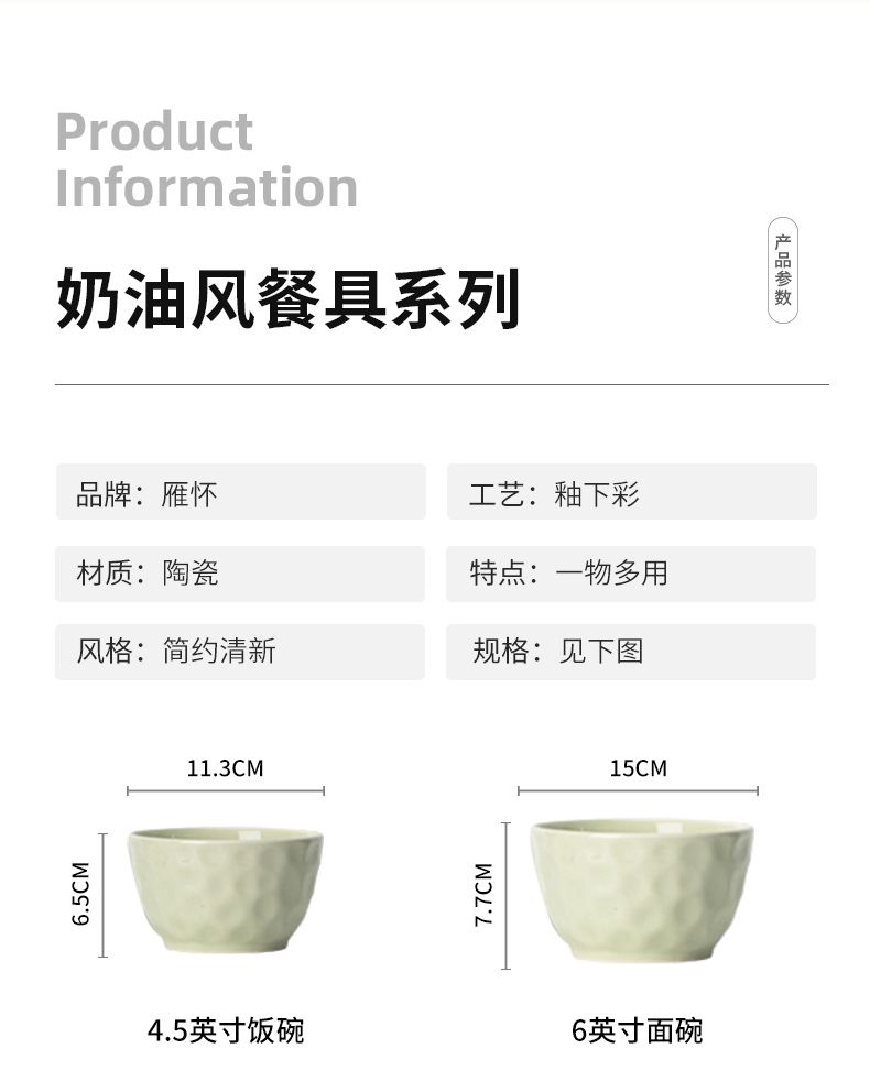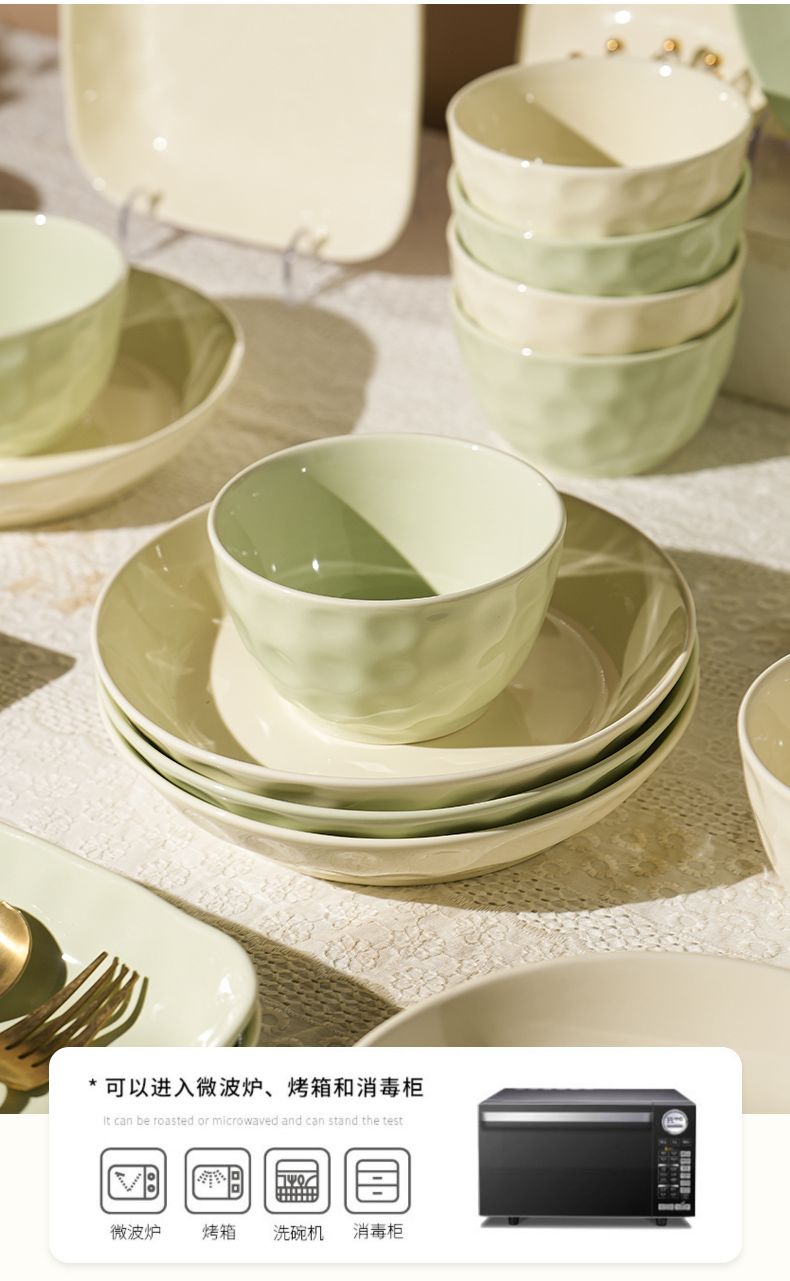 奶油风餐具碗碟套装家用清新碗具套装碗盘碗筷碗家用2024新款轻奢