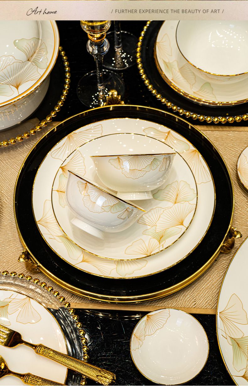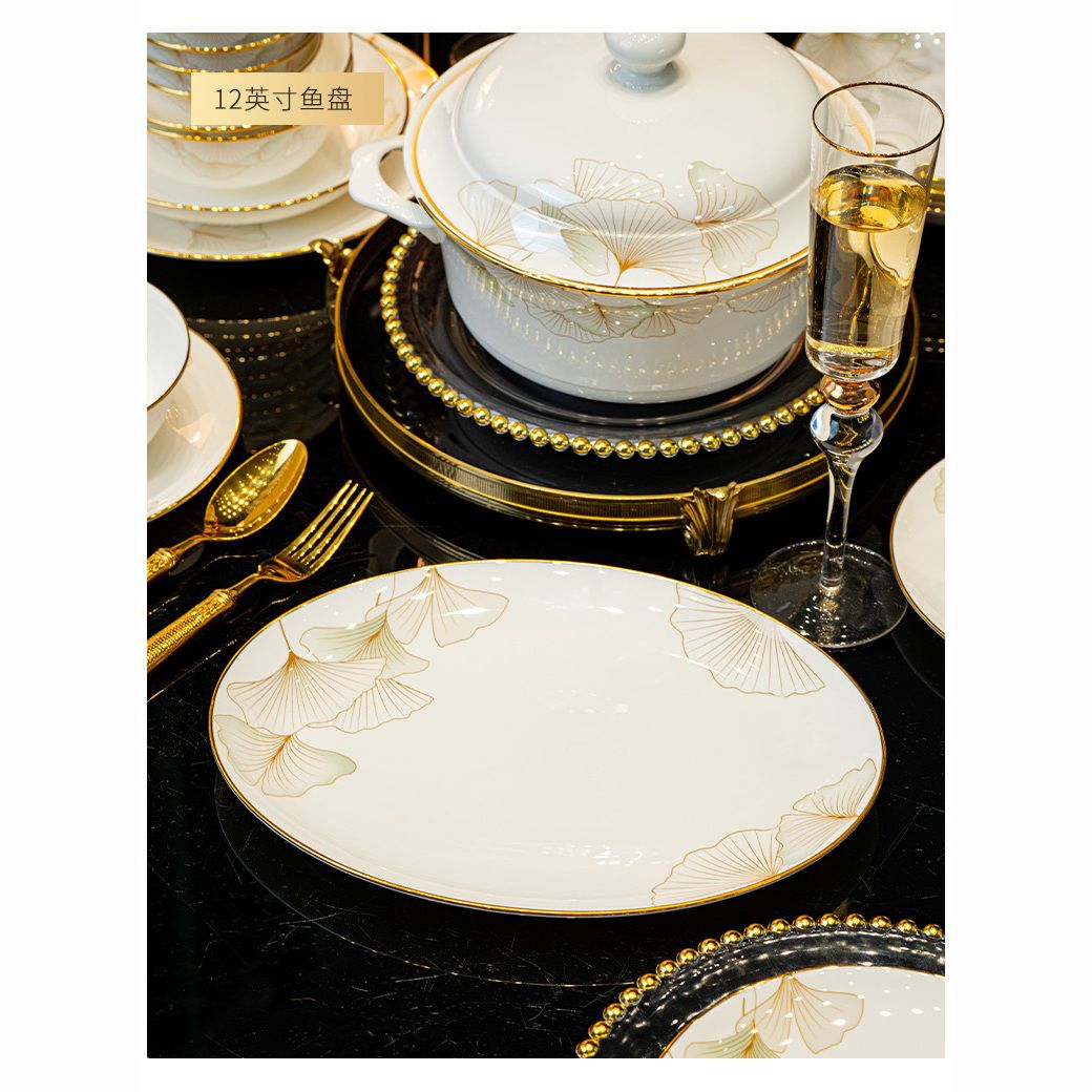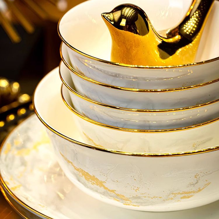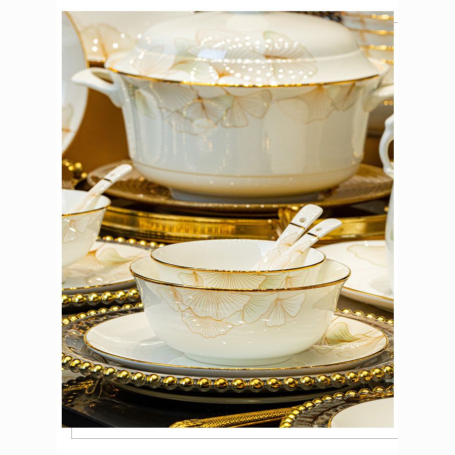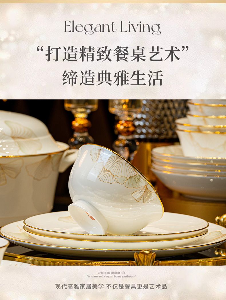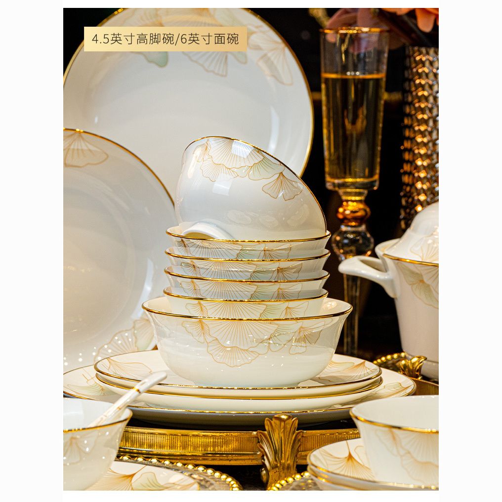2024新款碗碟套装骨瓷家用景德镇轻奢陶瓷碗盘组合乔迁餐具碗盘