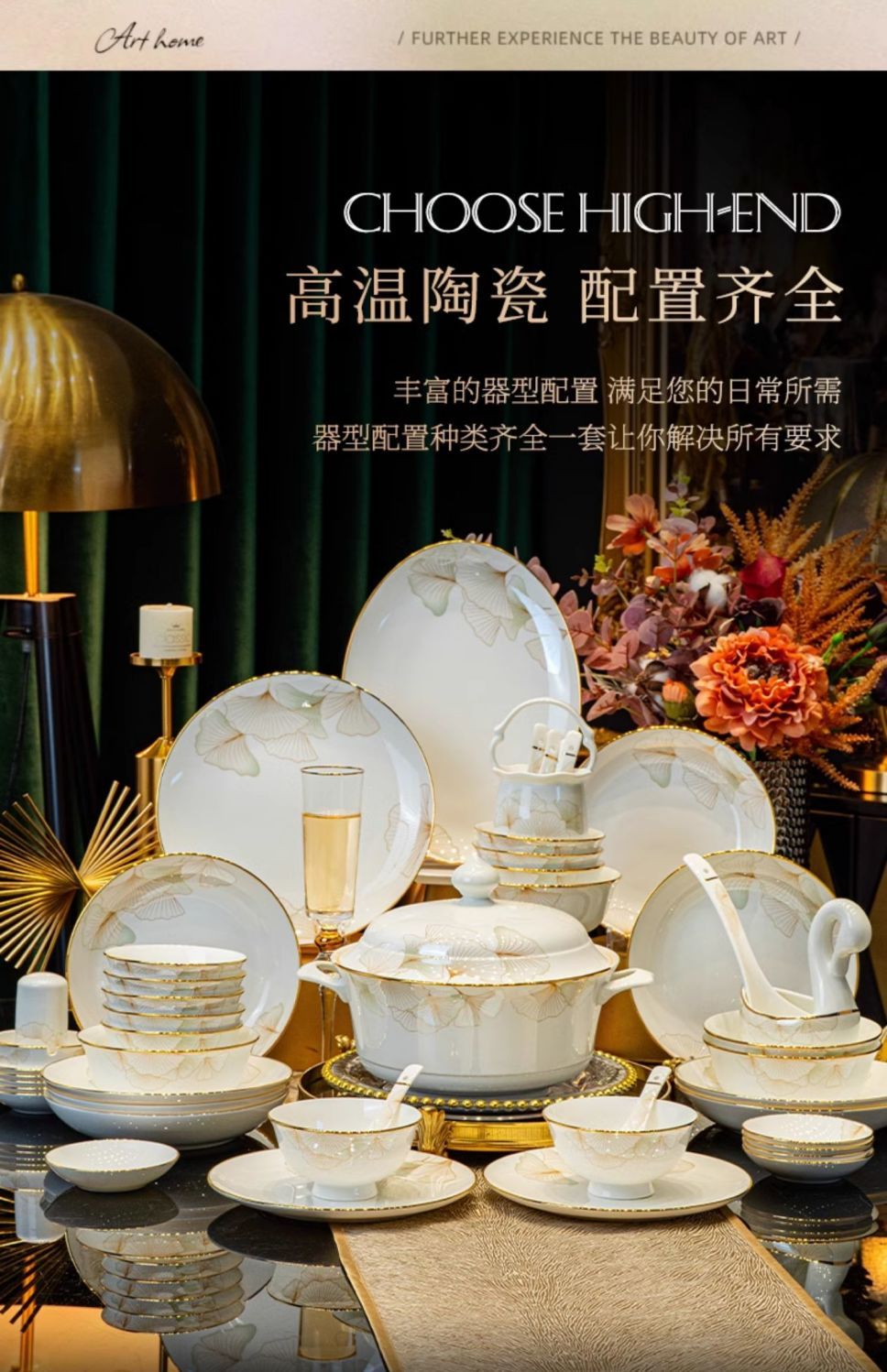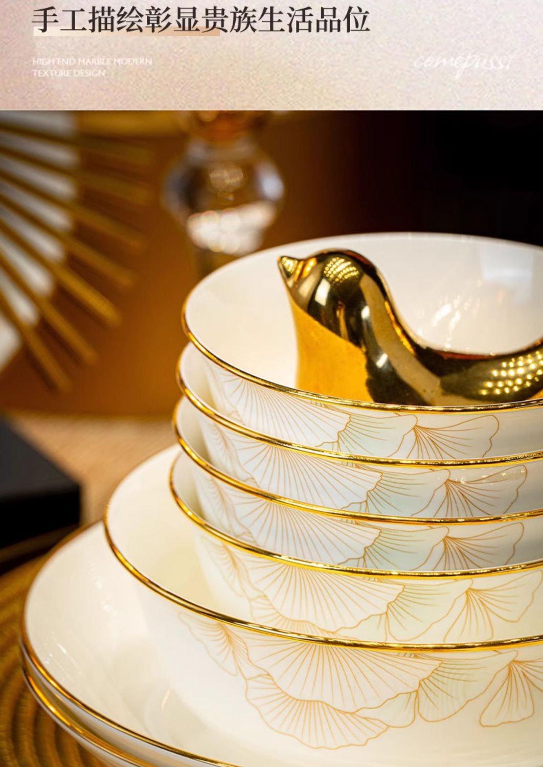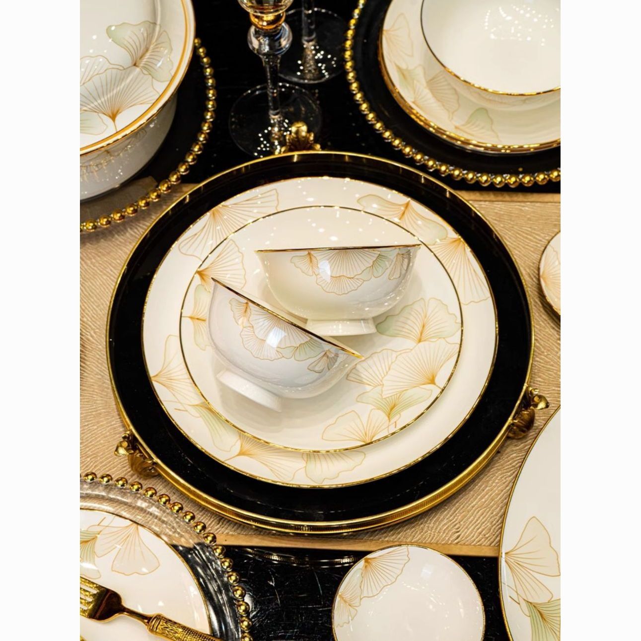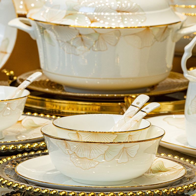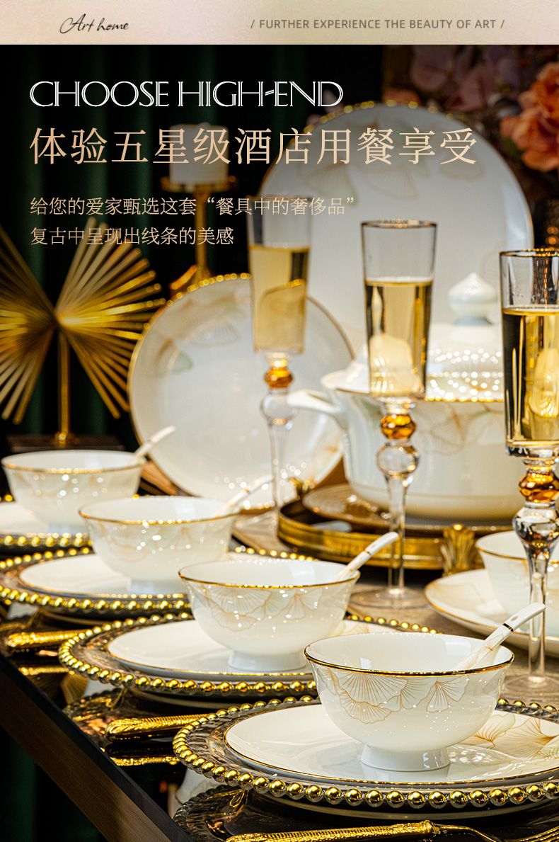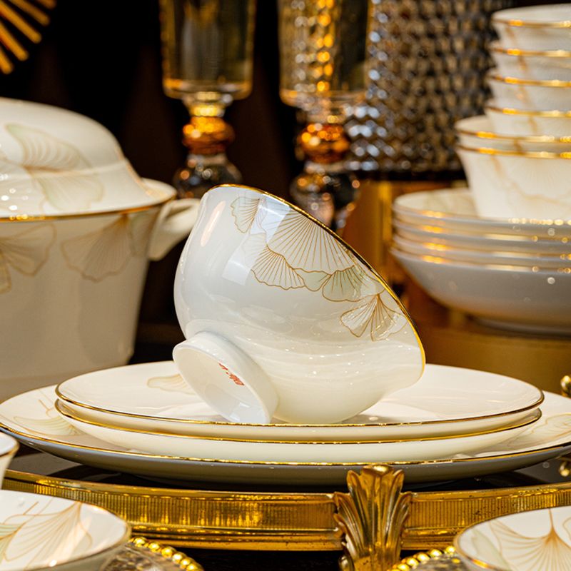 2024新款碗碟套装骨瓷家用景德镇轻奢陶瓷碗盘组合乔迁餐具碗盘