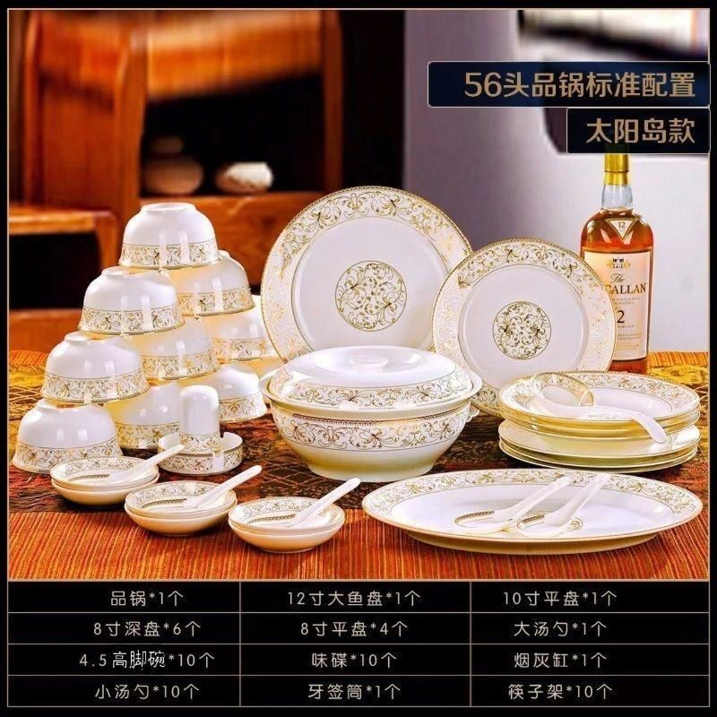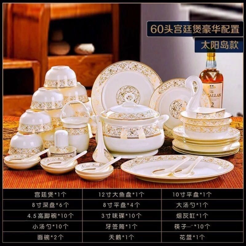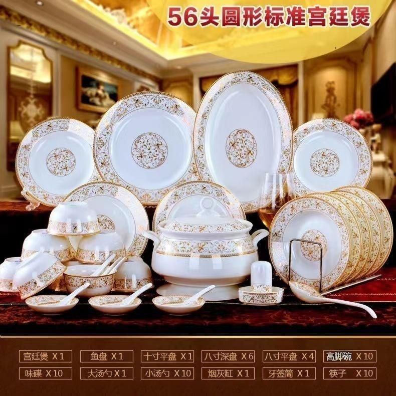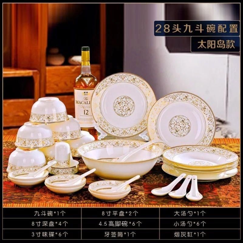 中式陶瓷餐具景德镇套装全套碗家用新款豪华耐高温碗盘碟组合送礼