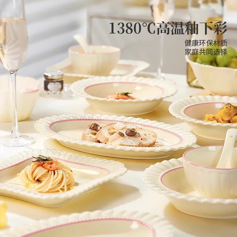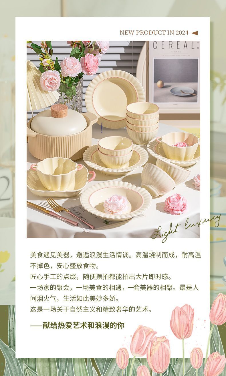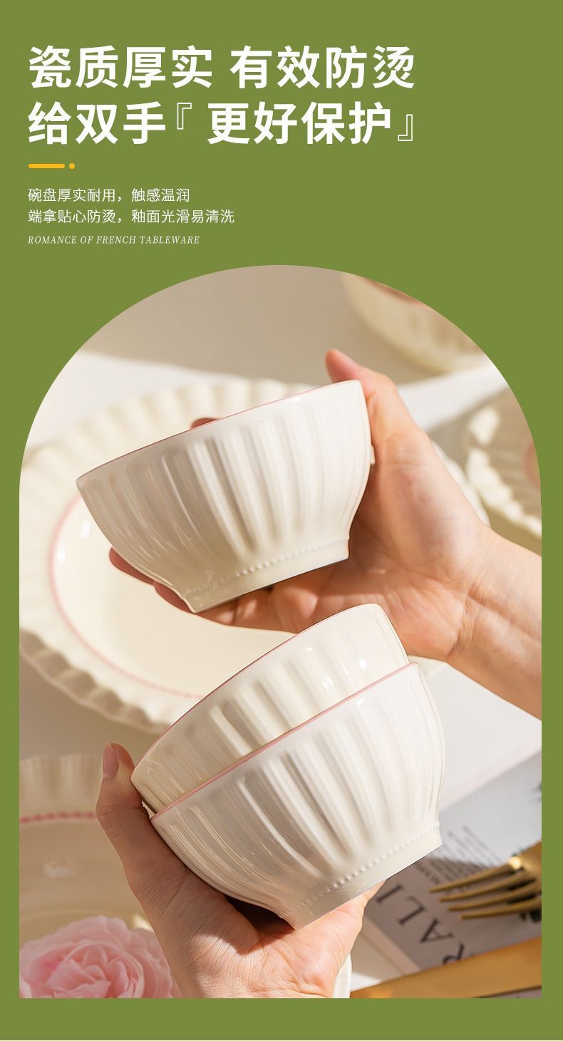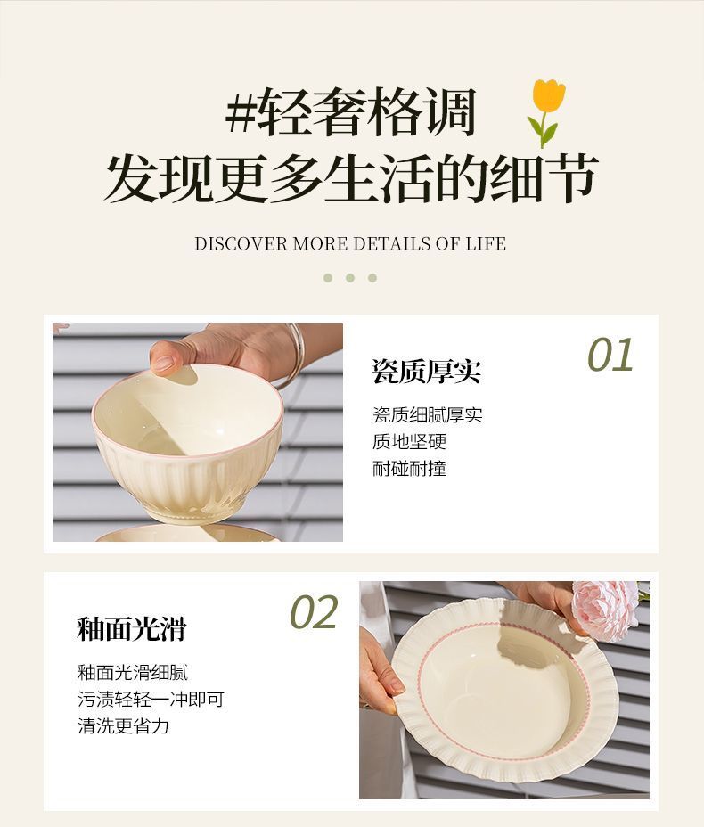 釉下彩奶油风碗碟套装陶瓷饭碗家用高级乔迁学生面碗2024新款餐具