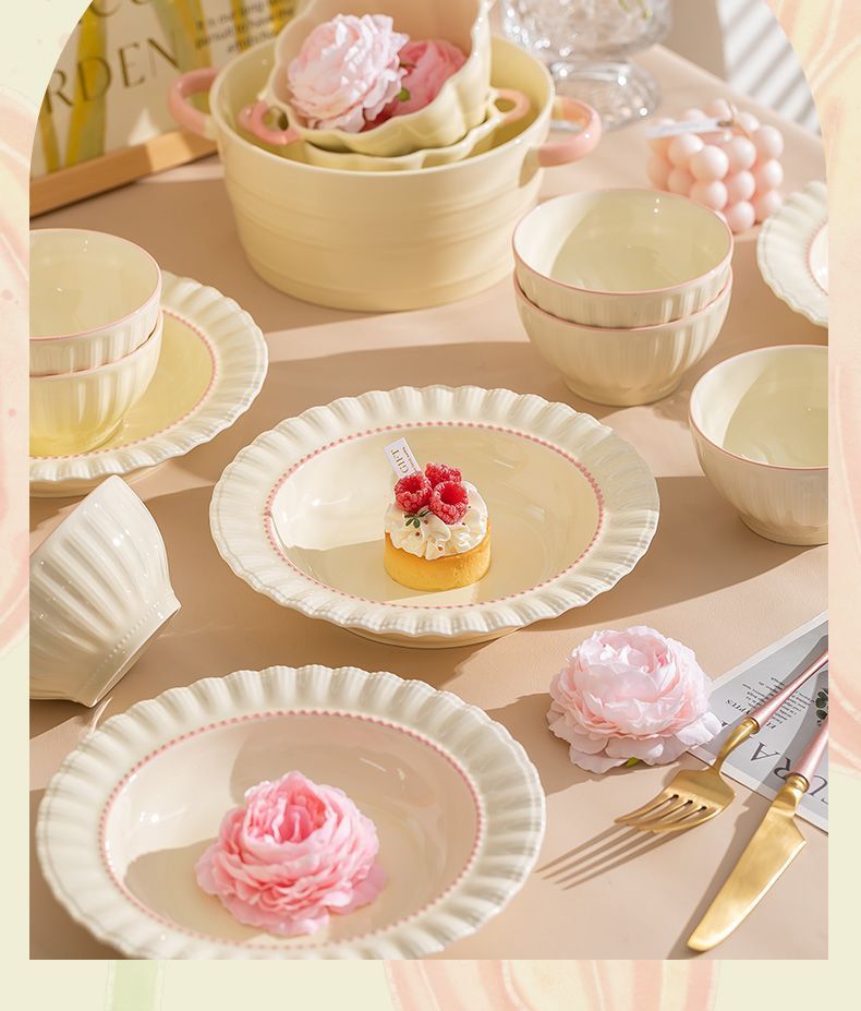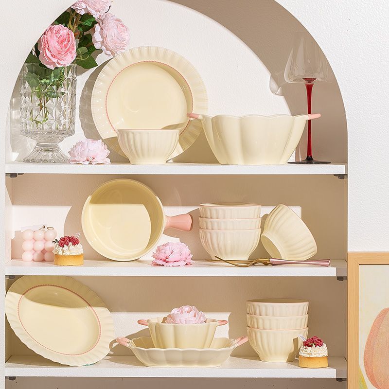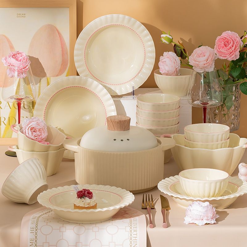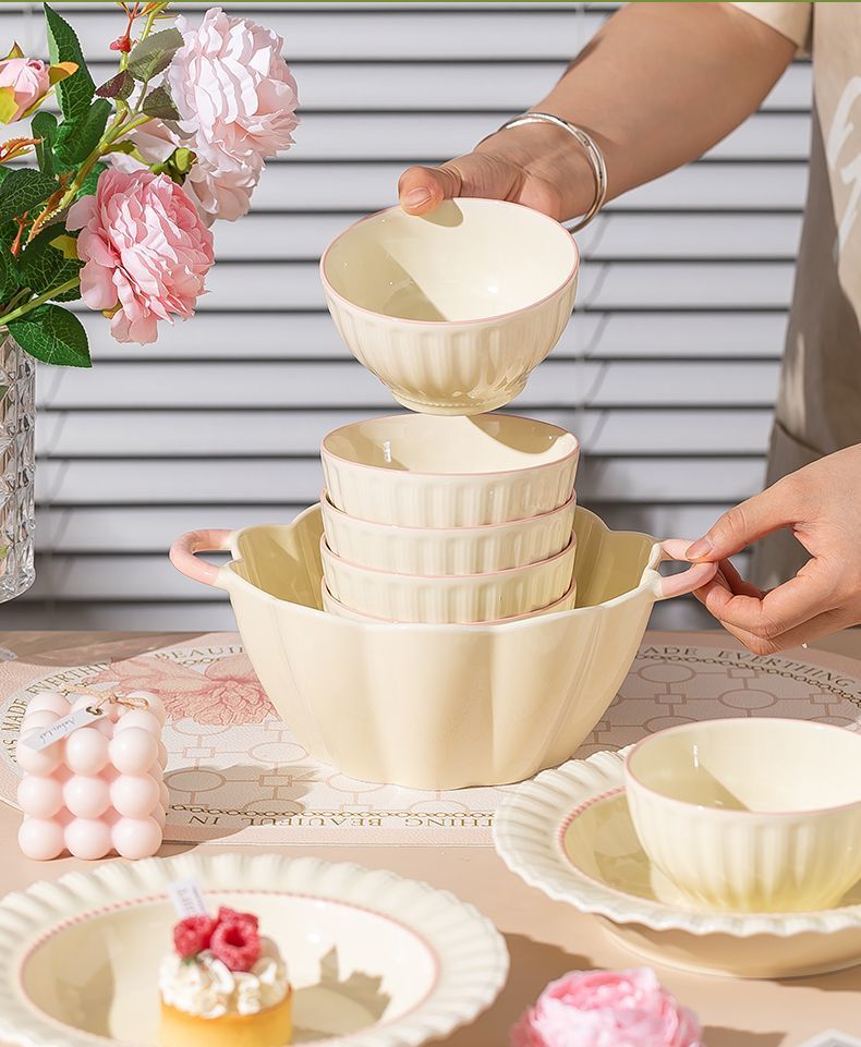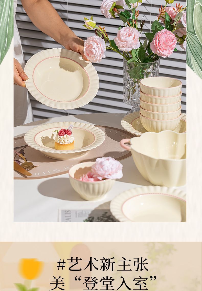 釉下彩奶油风碗碟套装陶瓷饭碗家用高级乔迁学生面碗2024新款餐具
