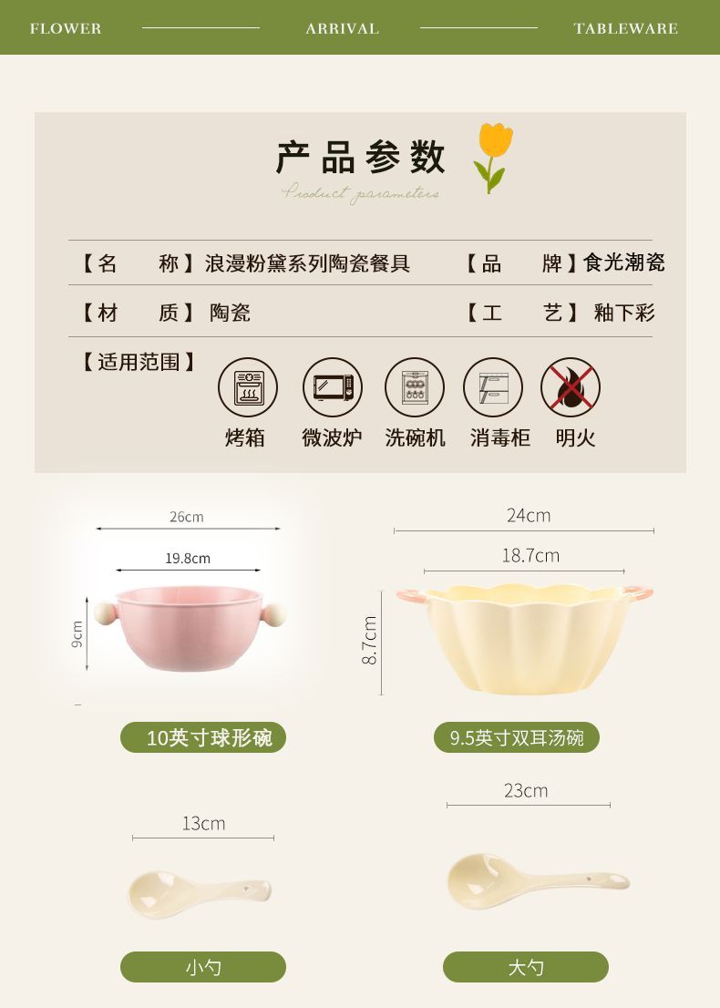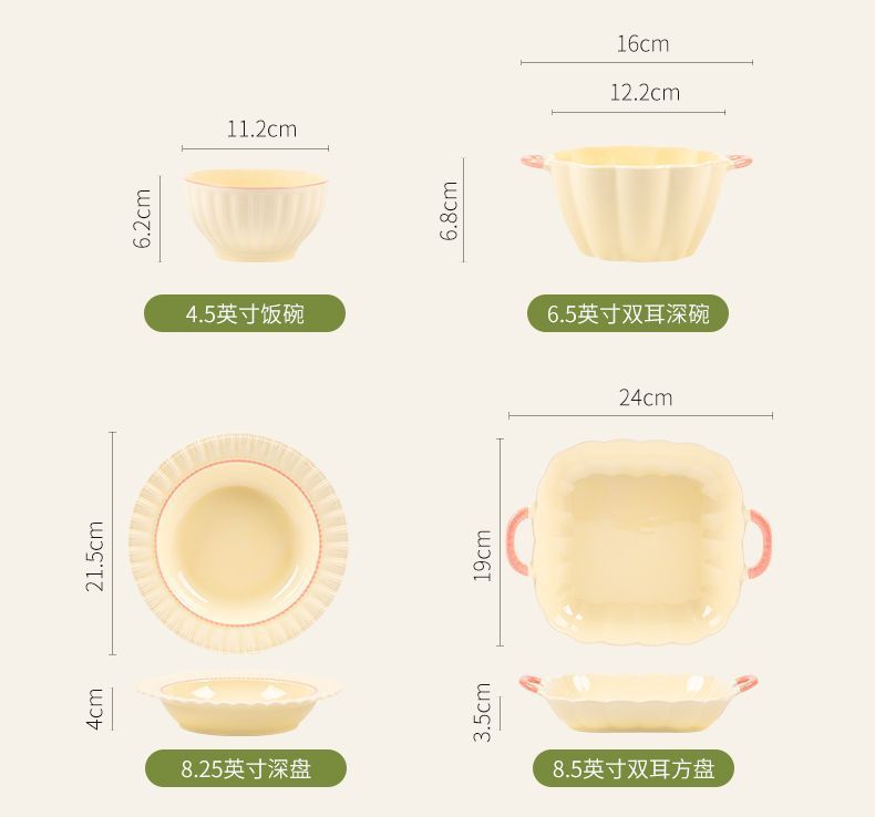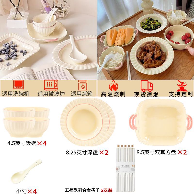 | [2 double-ear bowl 6 bowls and 5 plates] 26 pieces for 6 people(【2双耳碗6碗5盘】26件6人) | USD $55.3 | 999999 piece available |