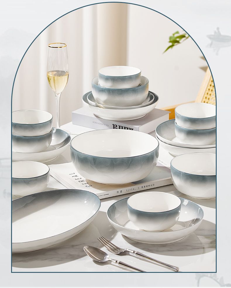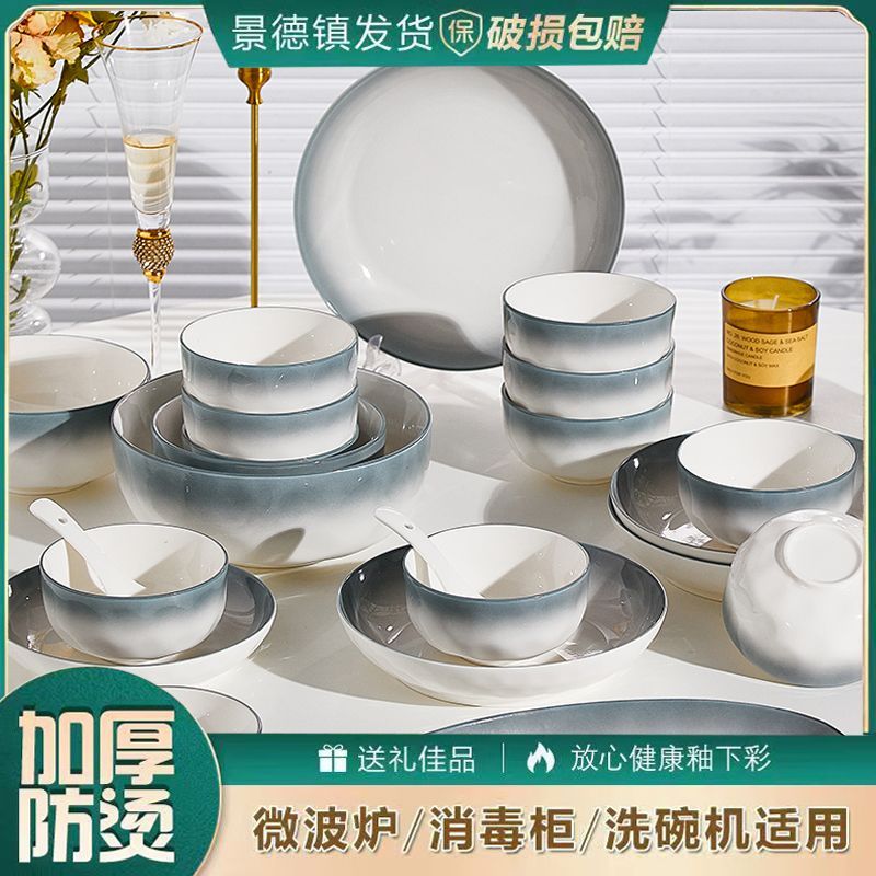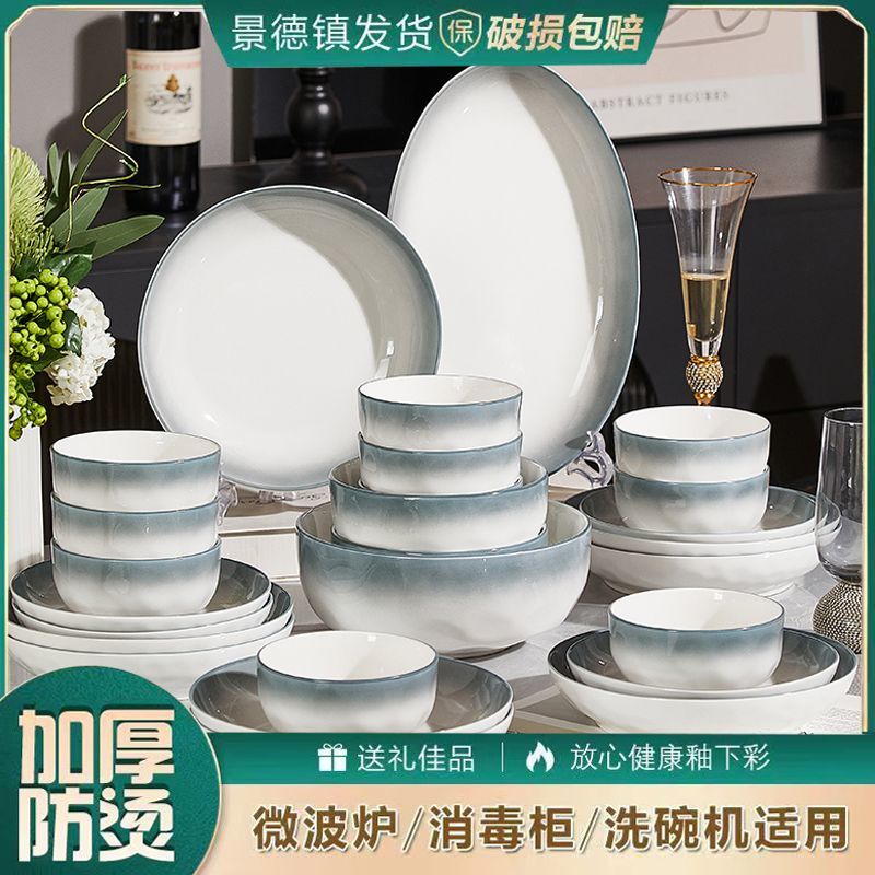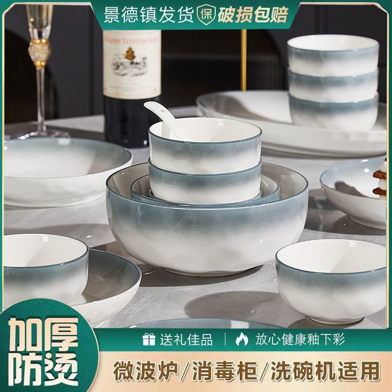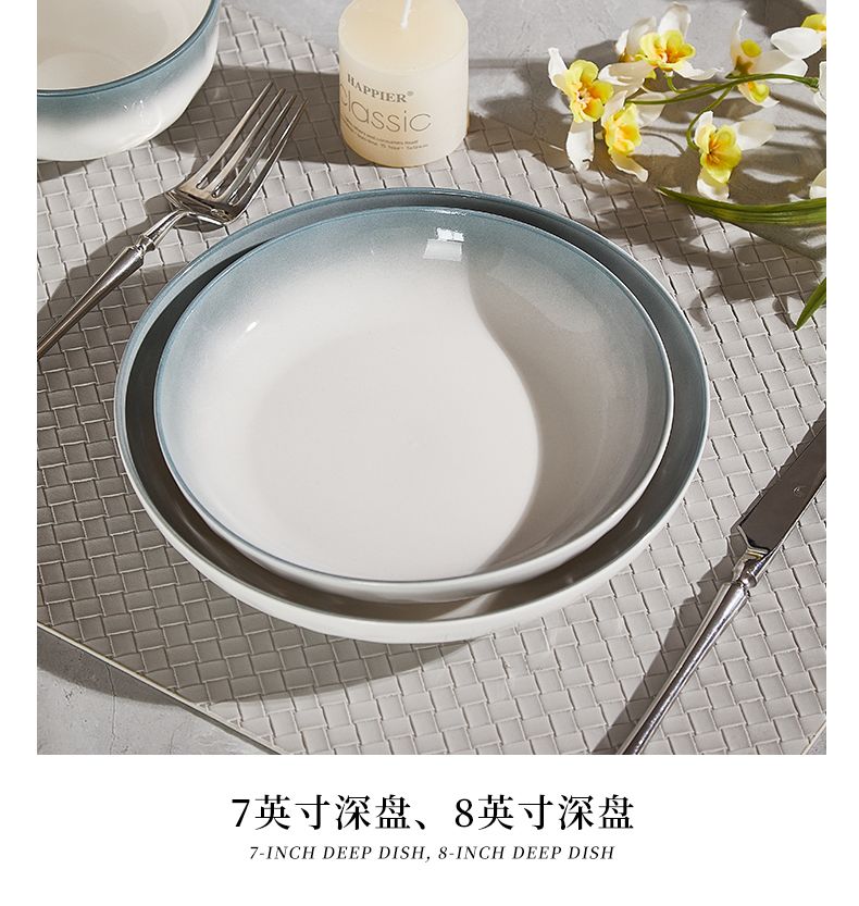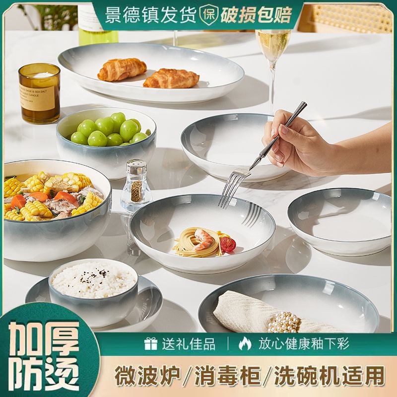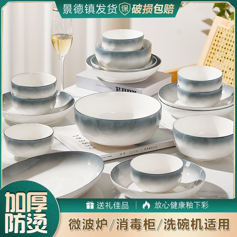 北欧碗碟套装家用高颜值渐变蓝现代碗筷碗盘乔迁新居碗陶瓷餐具