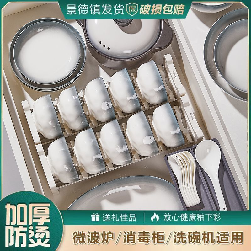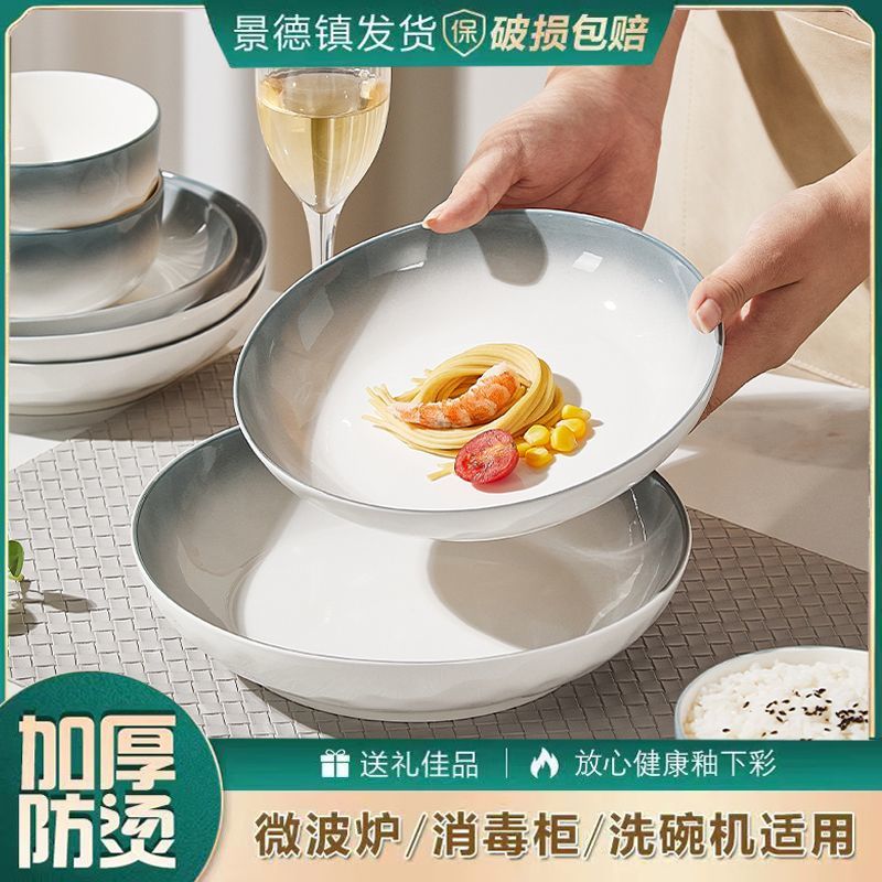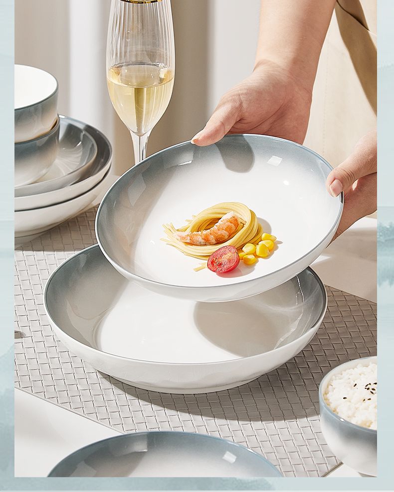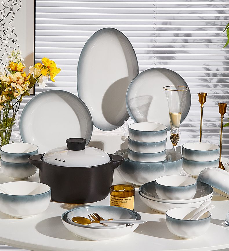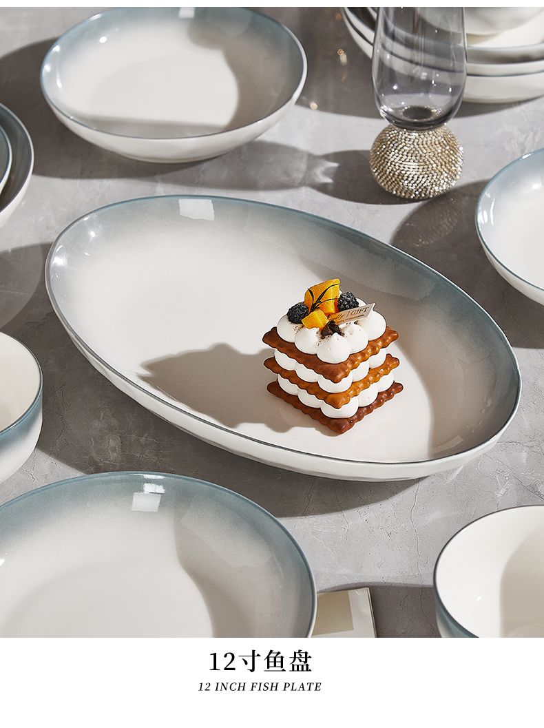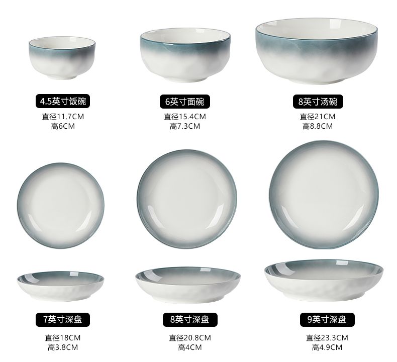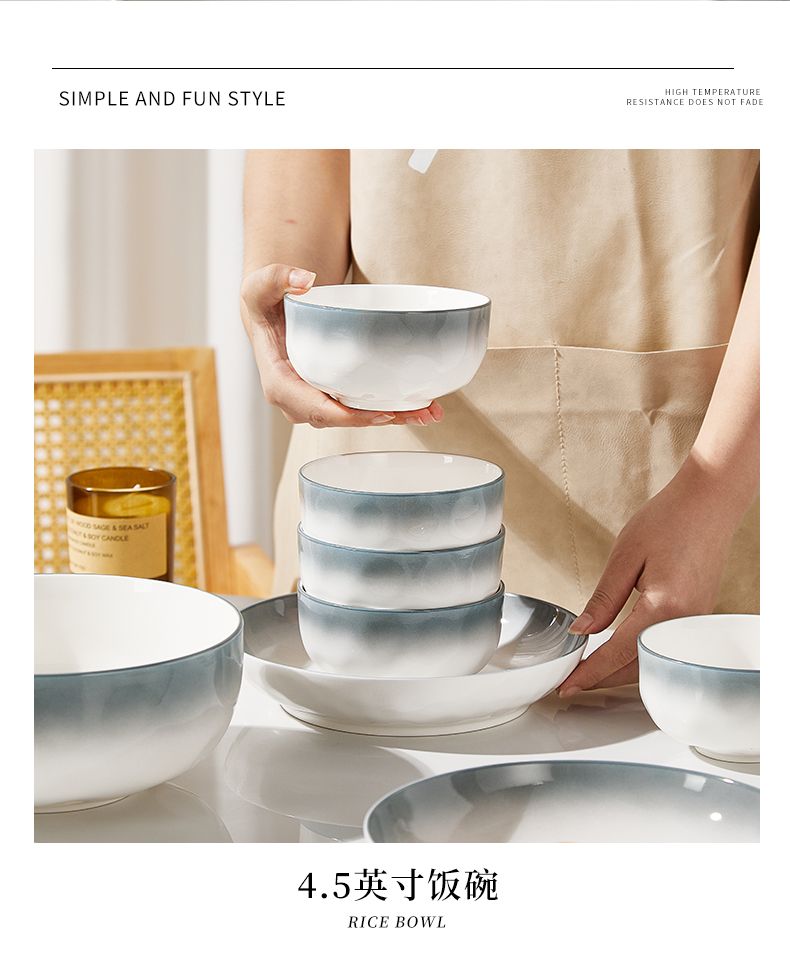 北欧碗碟套装家用高颜值渐变蓝现代碗筷碗盘乔迁新居碗陶瓷餐具