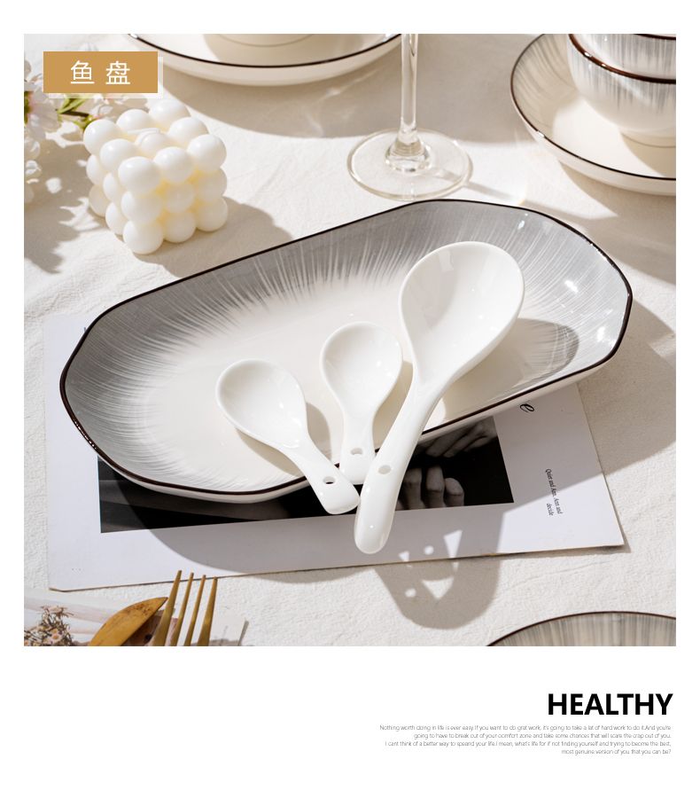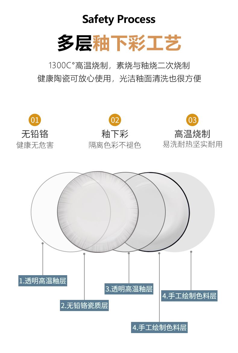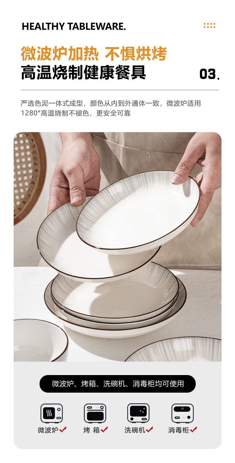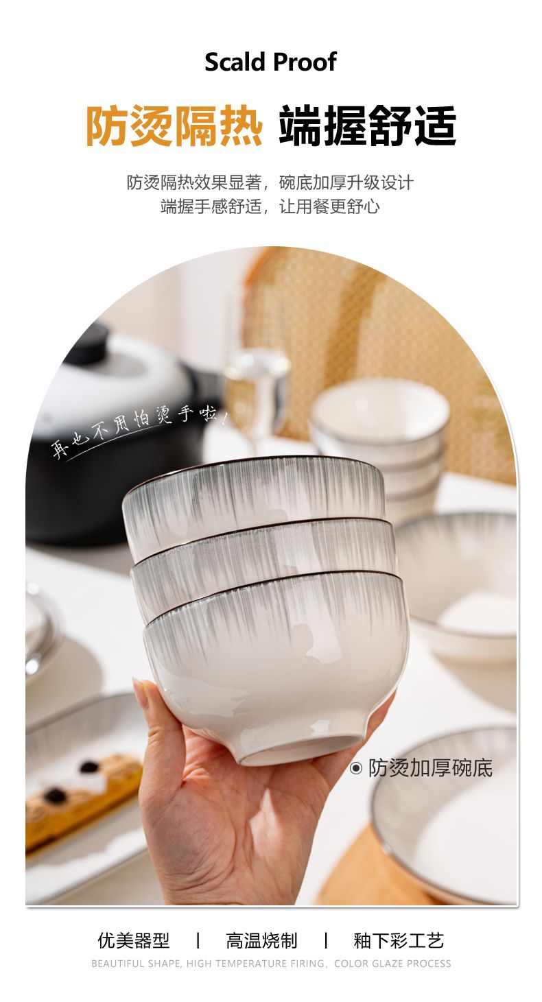 景德镇新款高颜值釉下彩碗碟套装耐高温防烫简约现代家用陶瓷餐具