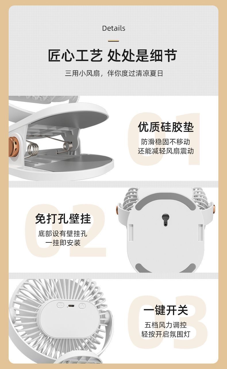夹子风扇宿舍超静音usb充电迷你风扇静音大风力小型台式电风扇