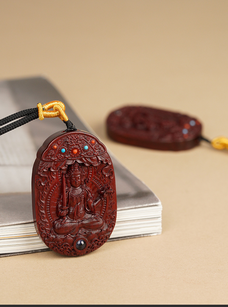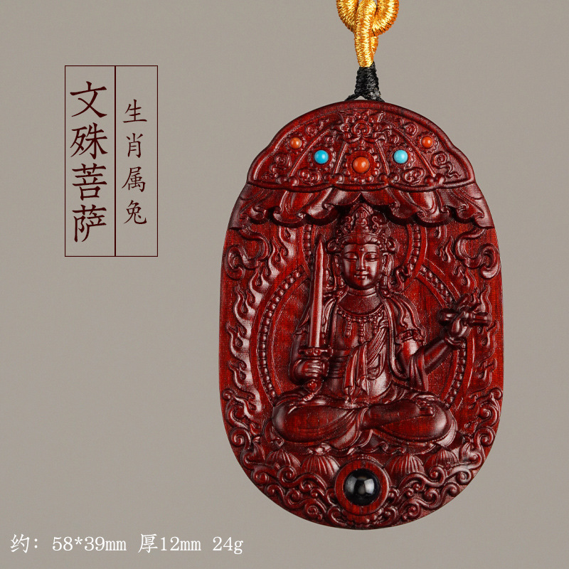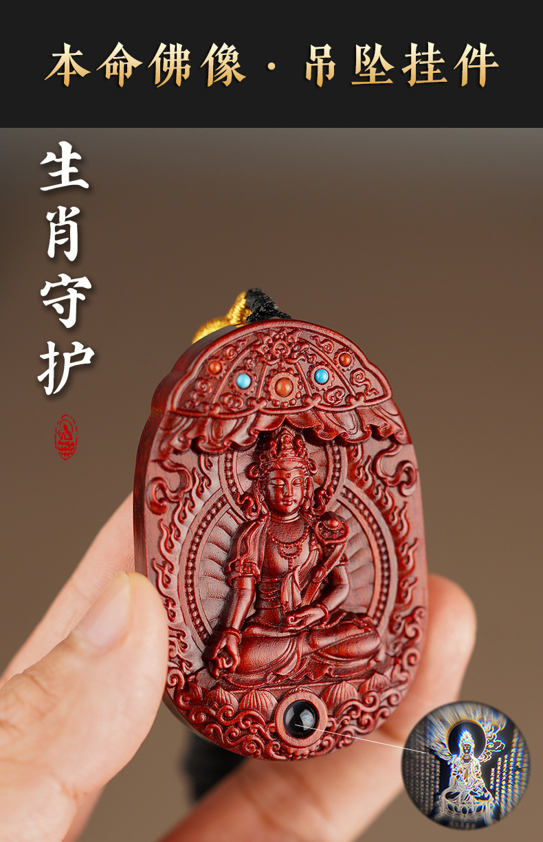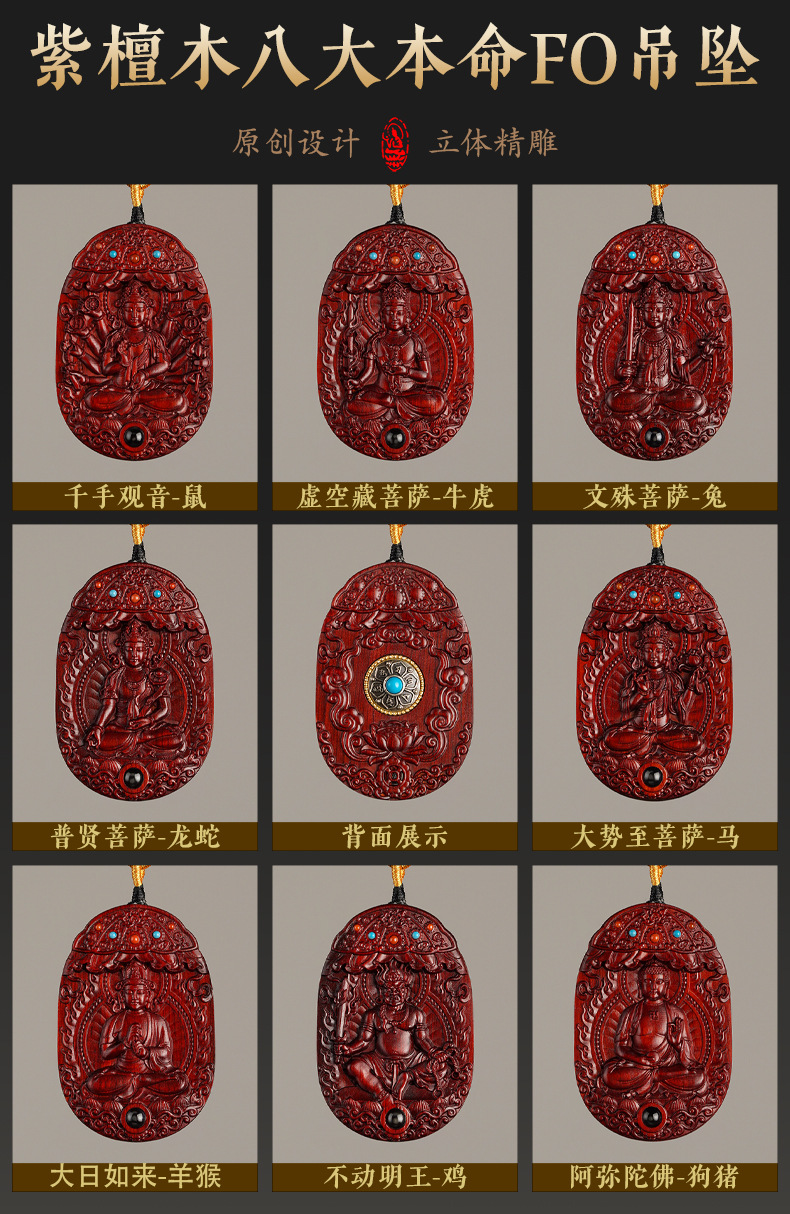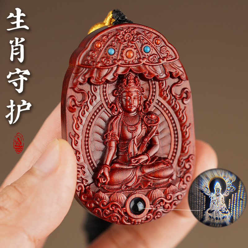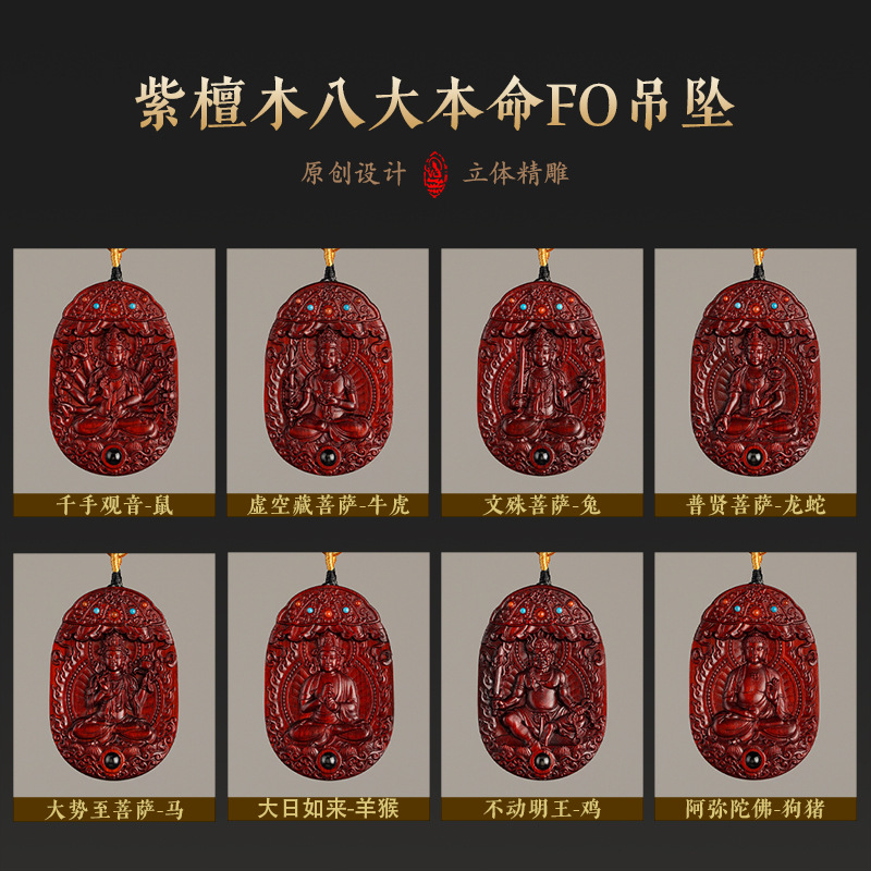 紫檀木佛牌八大守护神普贤菩萨龙蛇十二生肖吊坠本命佛原创雕刻
